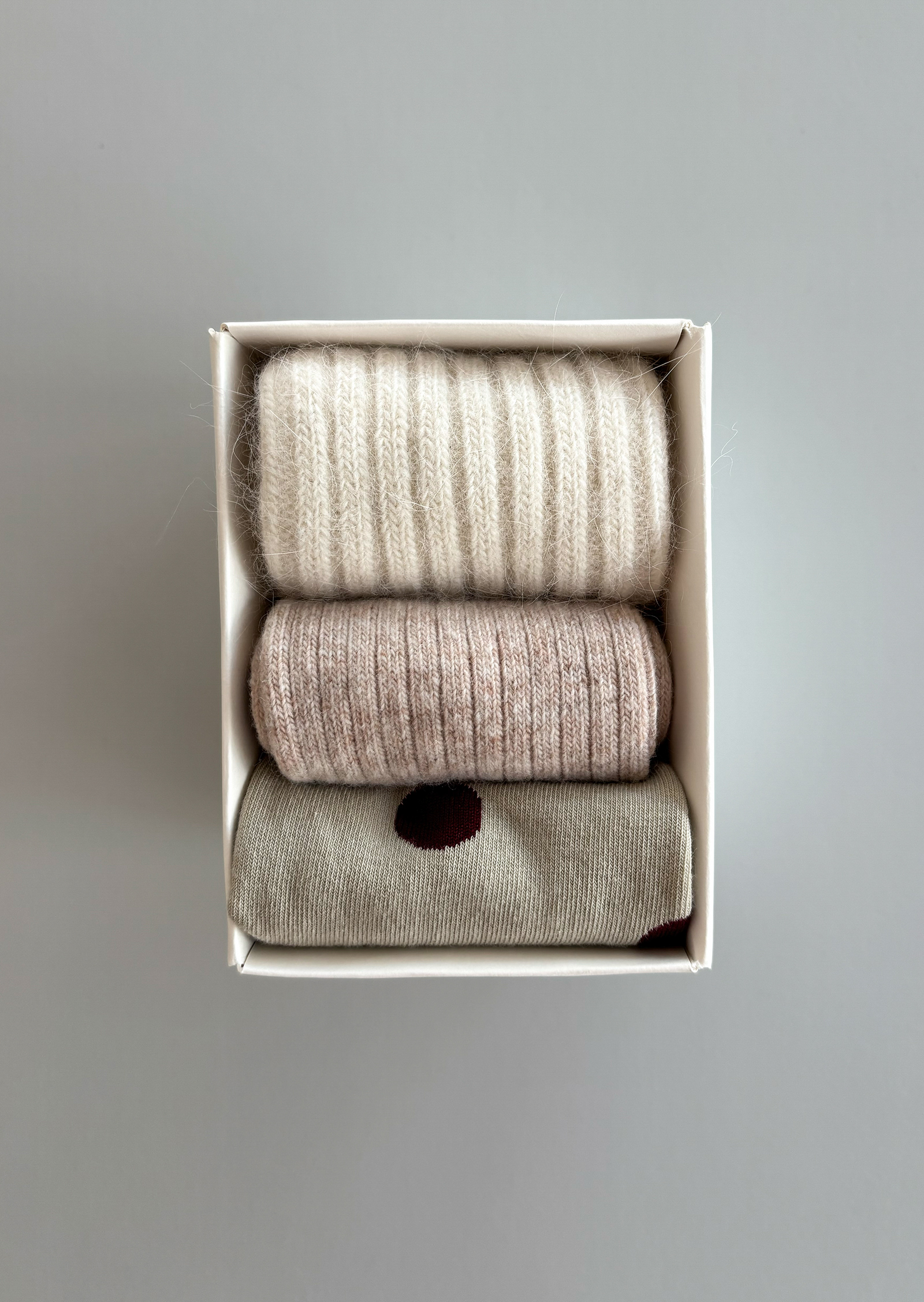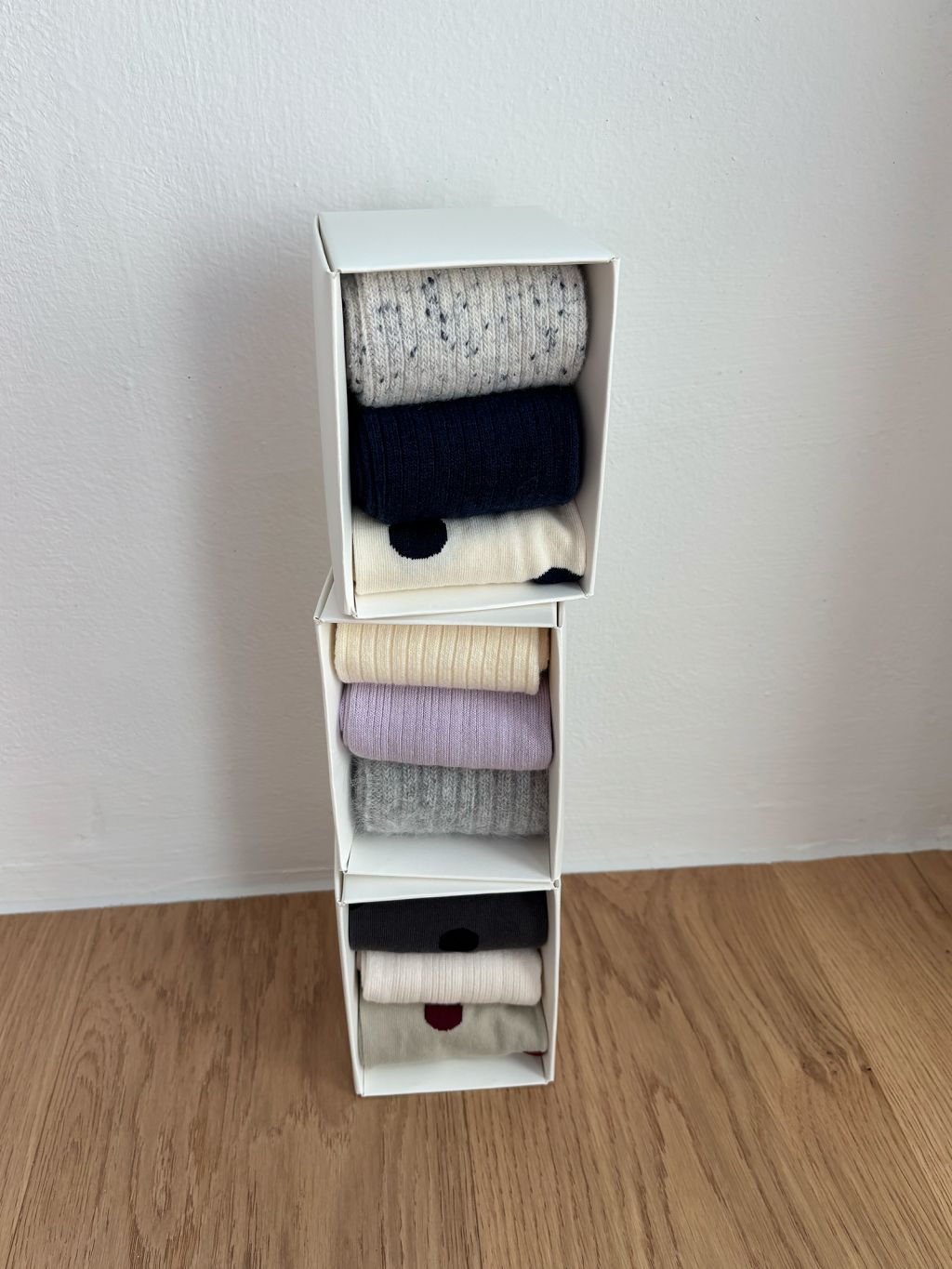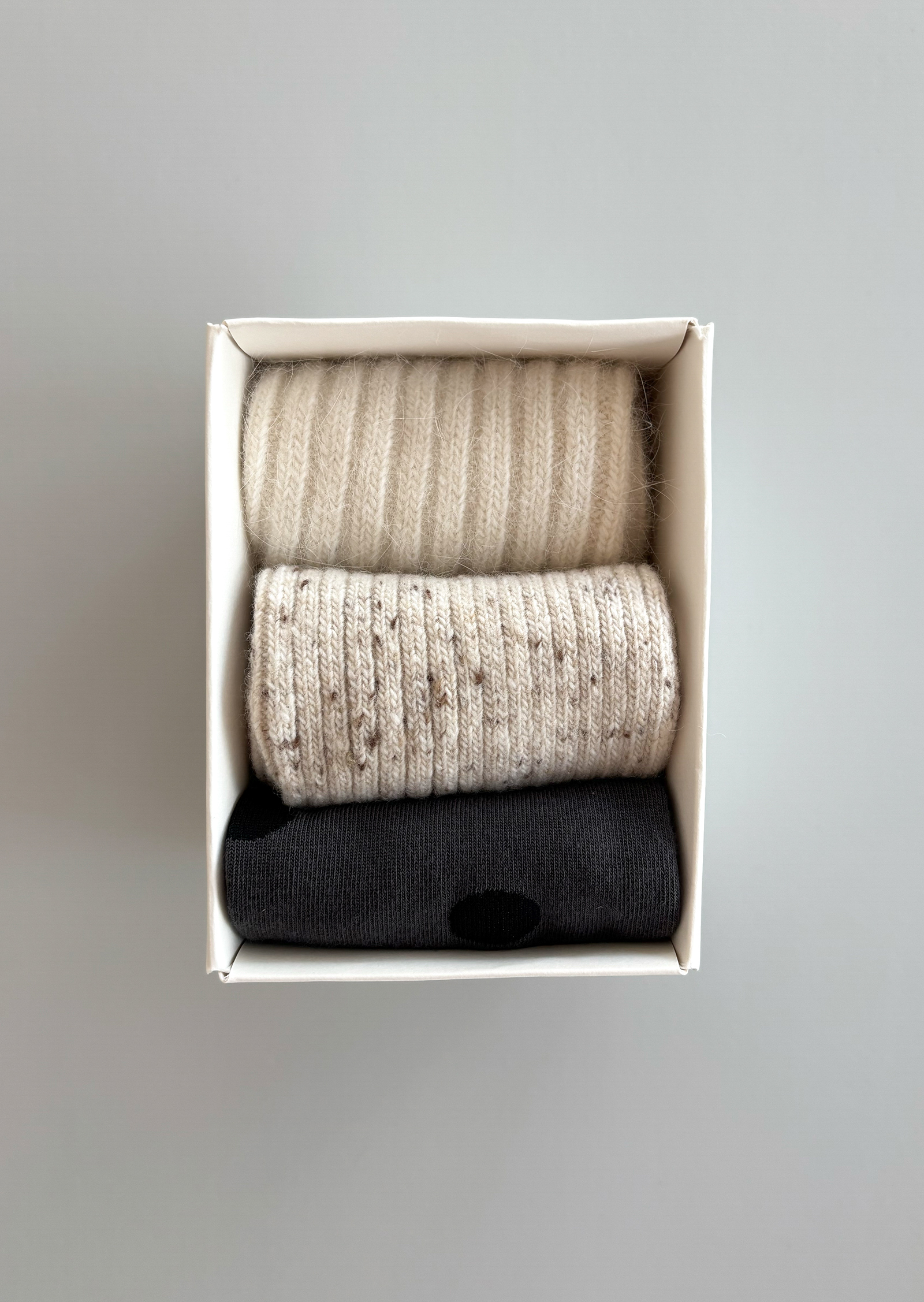 각각의 양말들은 헤어리하고 부드러운 텍스처로 제작되어 포근하게 발을 감싸줍니다. 불편함 없는 적당한 두께감으로, 걸음 걸음 편안한 착용감을 느낄 수 있어요.