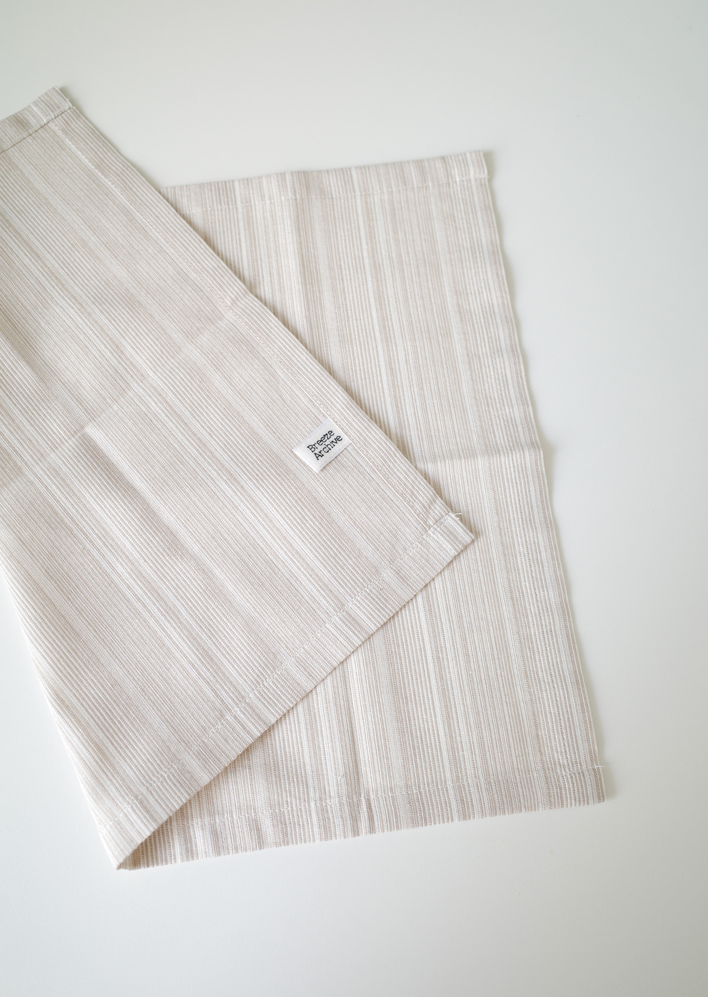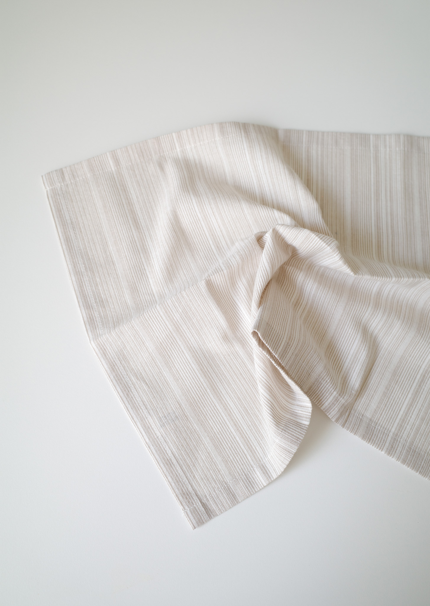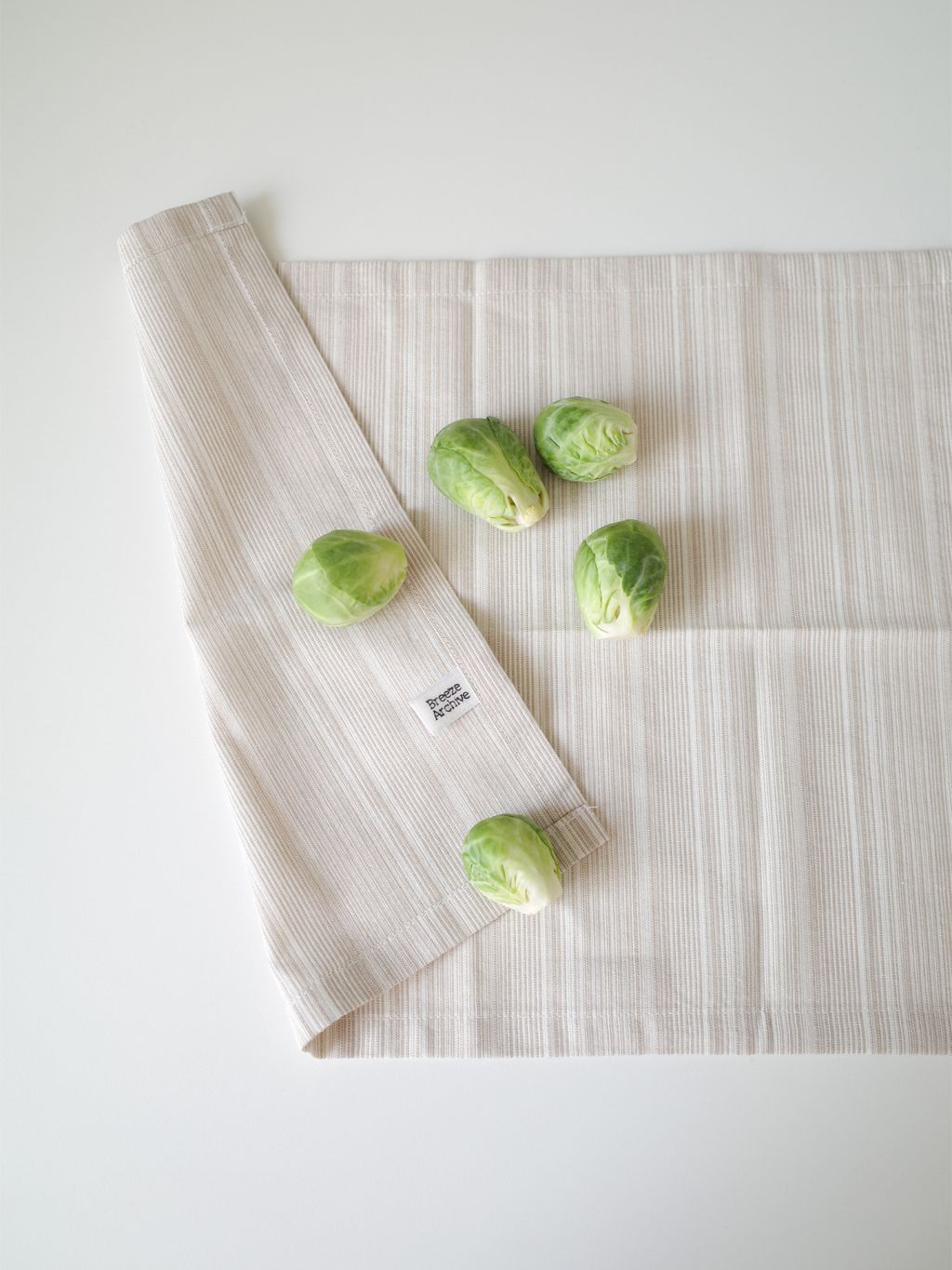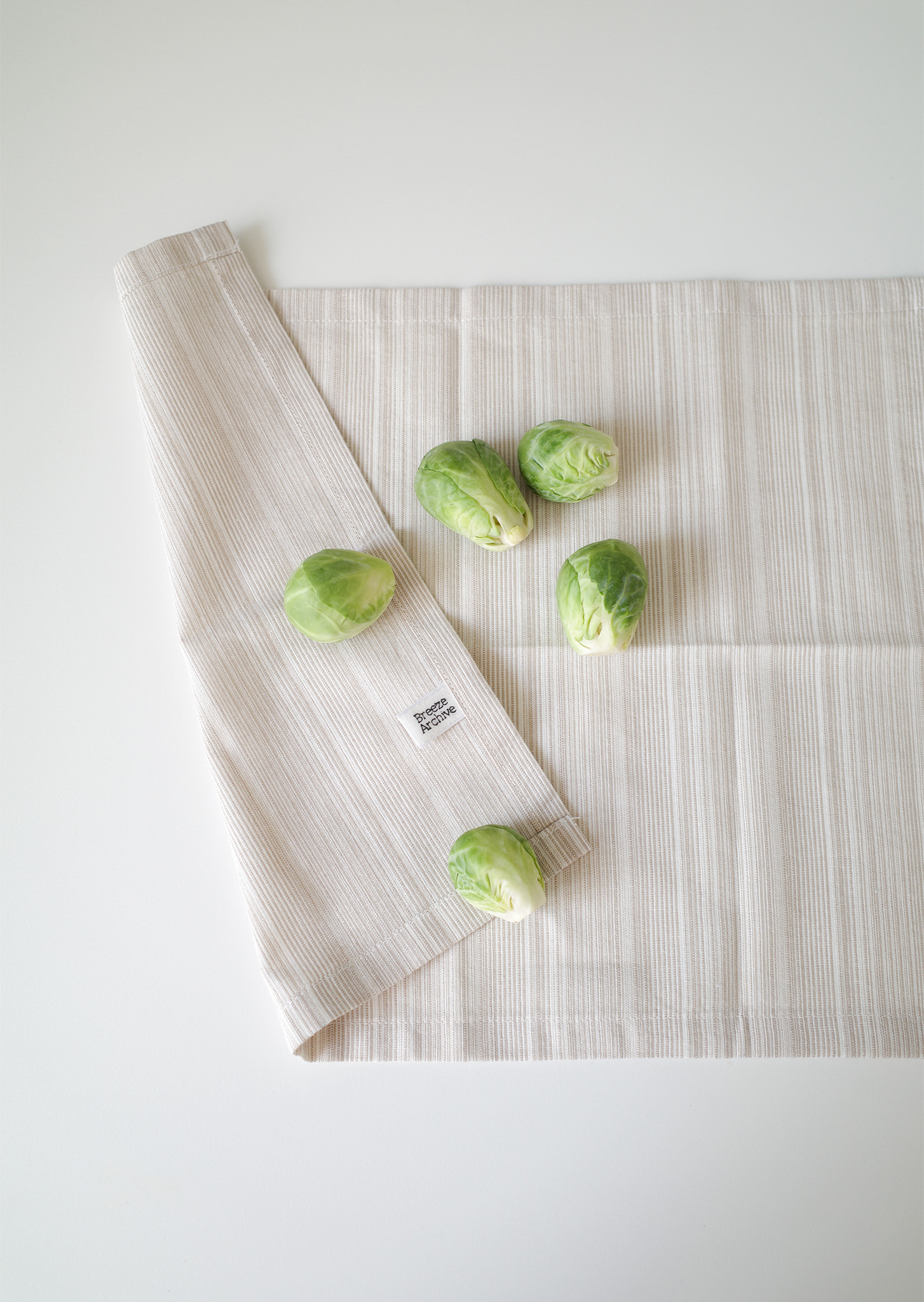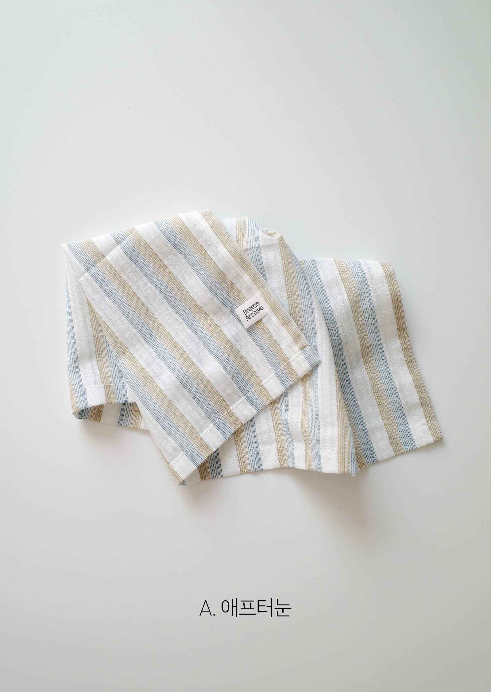 물을 잘 흡수하며 건조가 빨라 주방에 적합한 소재로, 원단을 빨래하고 삶고 말리고 테스트하며 제작했어요.