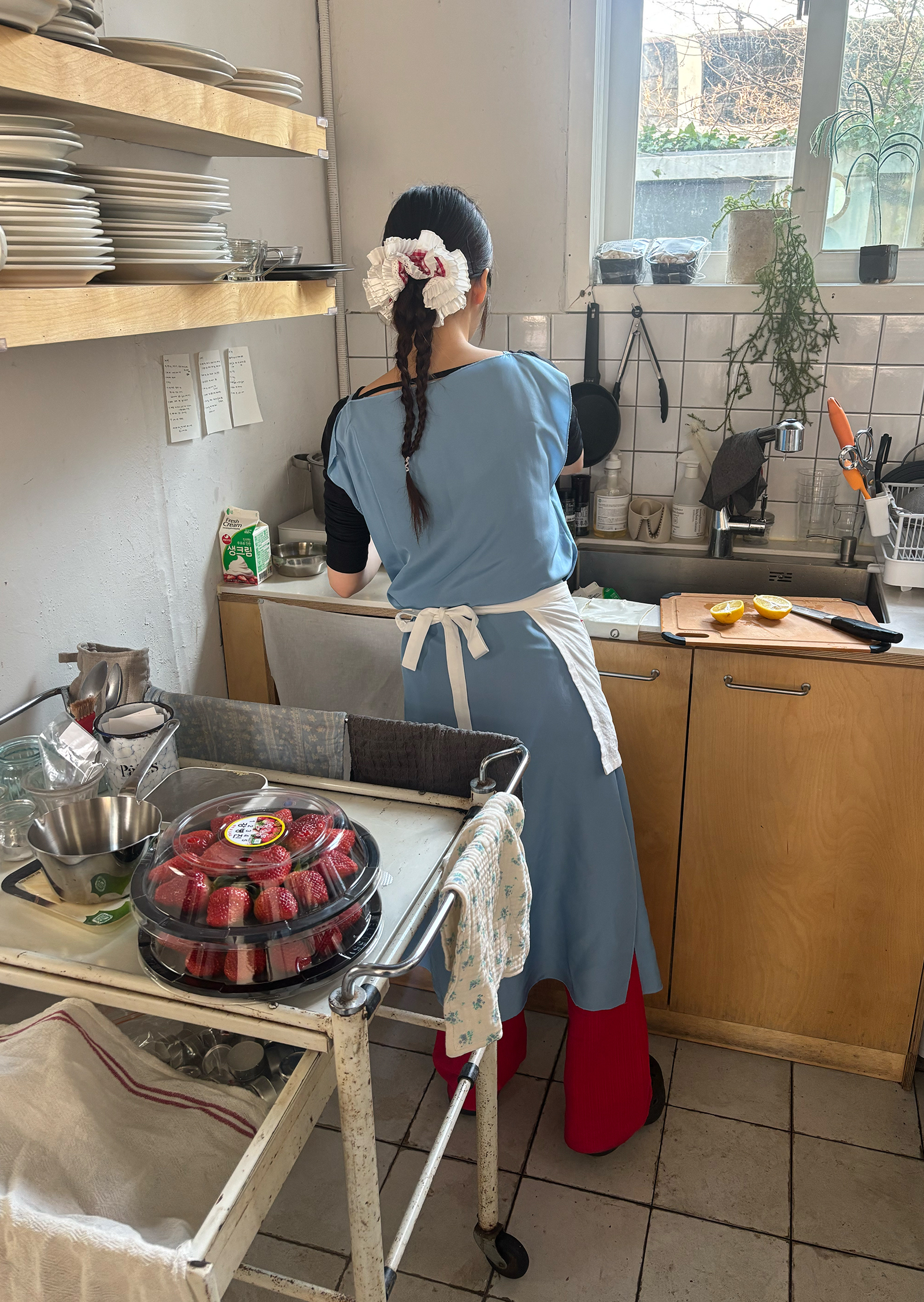 묶었을 때 레이스를 더한 겹겹의 주름 디테일이 풍-성하게 유지되도록 했어요.