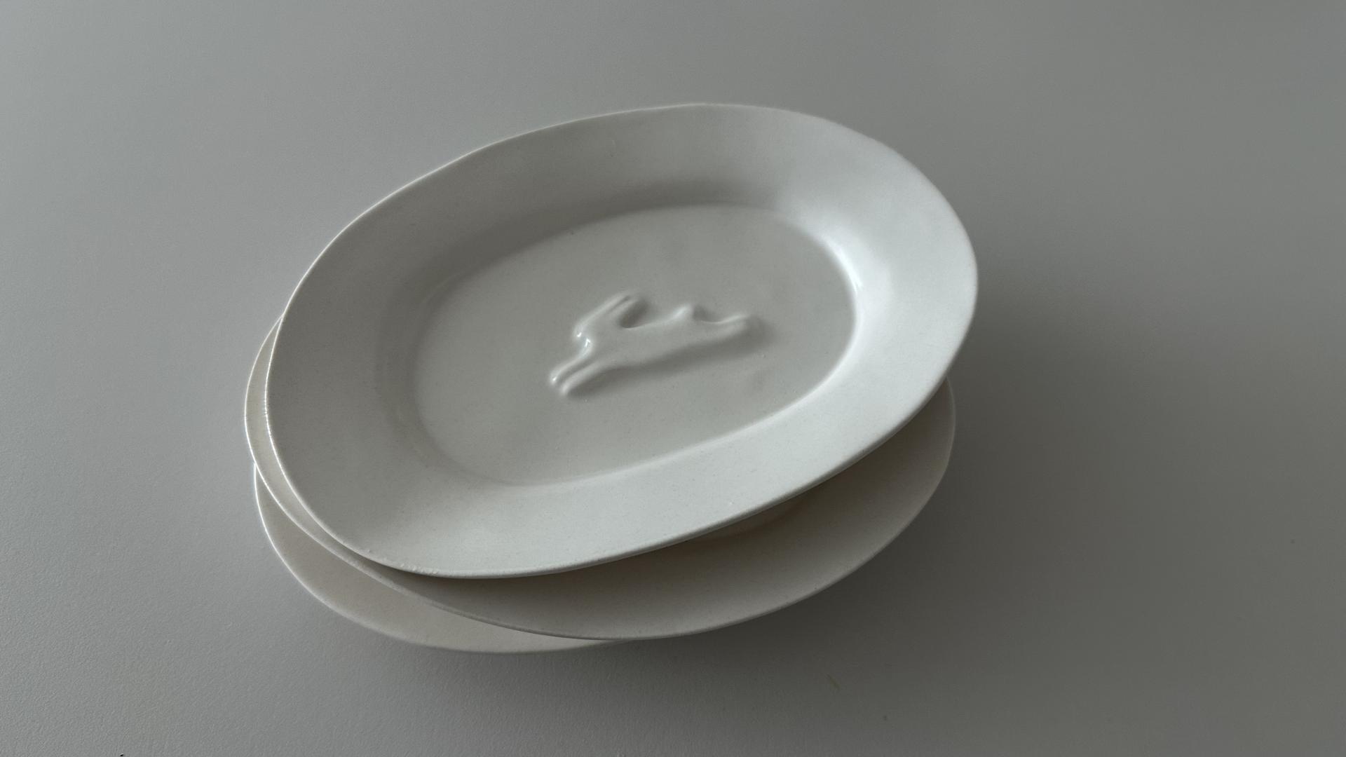 새하얀 흙을 사용한 타원 플레이트입니다.