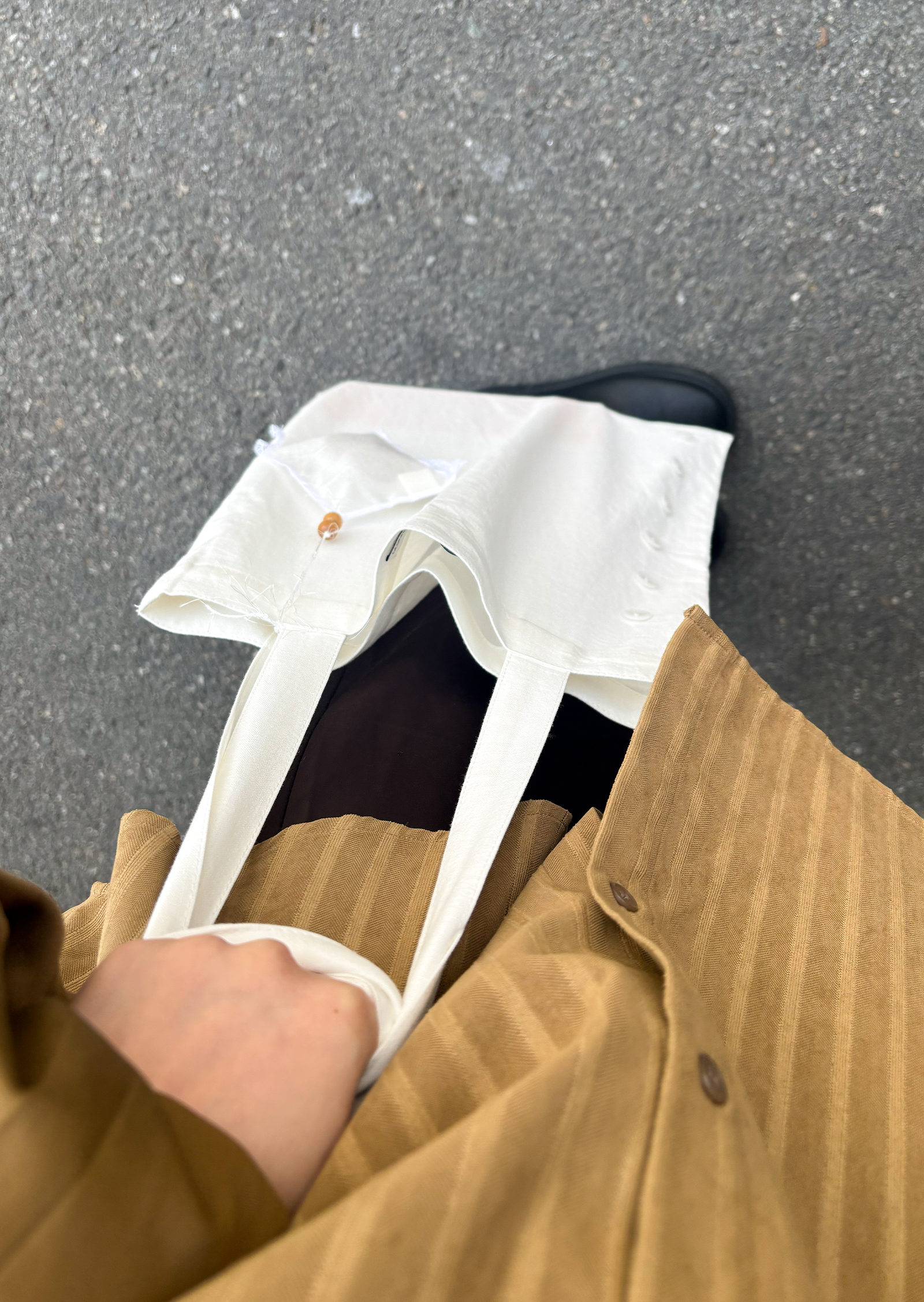 패턴이 드러나는 원단에 우드 볼 디테일이 더해져 있습니다.
