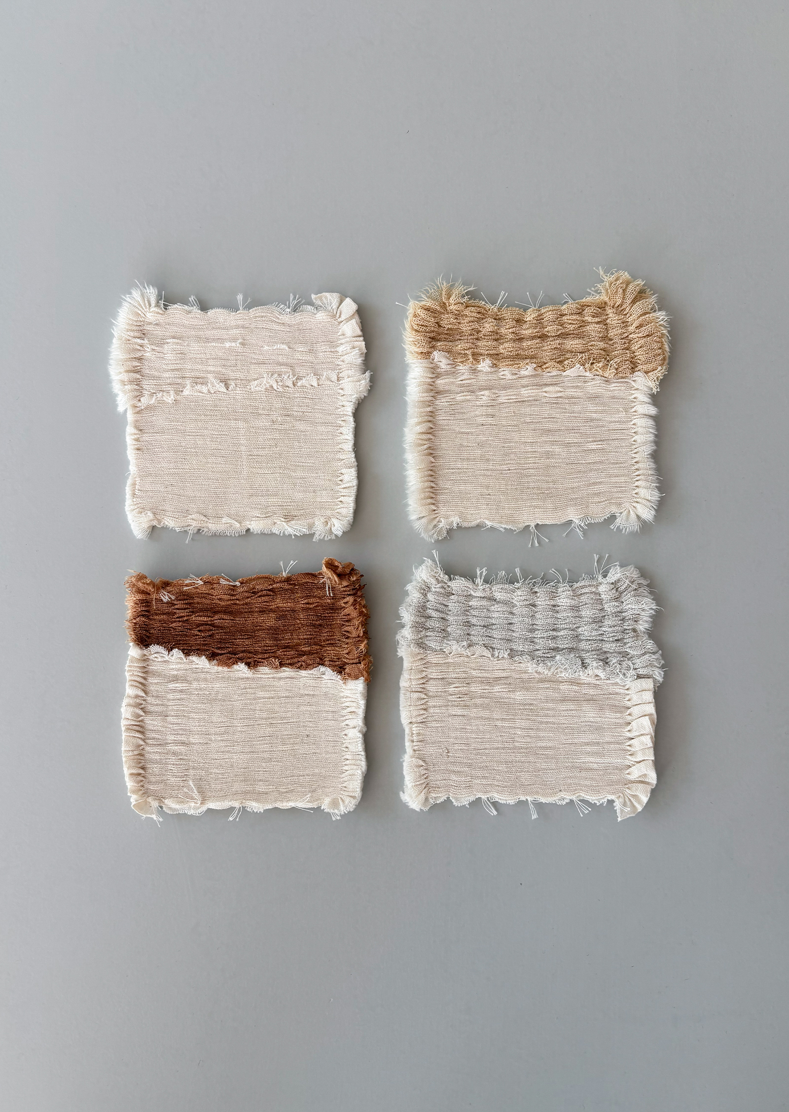 강화 소창과 면 소재의 코스터로 천연 염색 후 주름을 잡은 제품입니다.