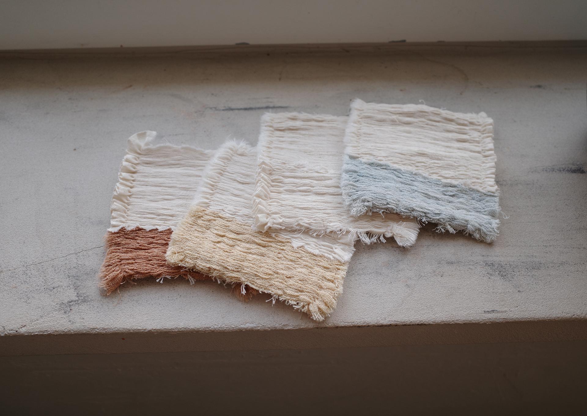 강화 소창과 면 소재의 코스터로 천연 염색 후 주름을 잡은 제품입니다.