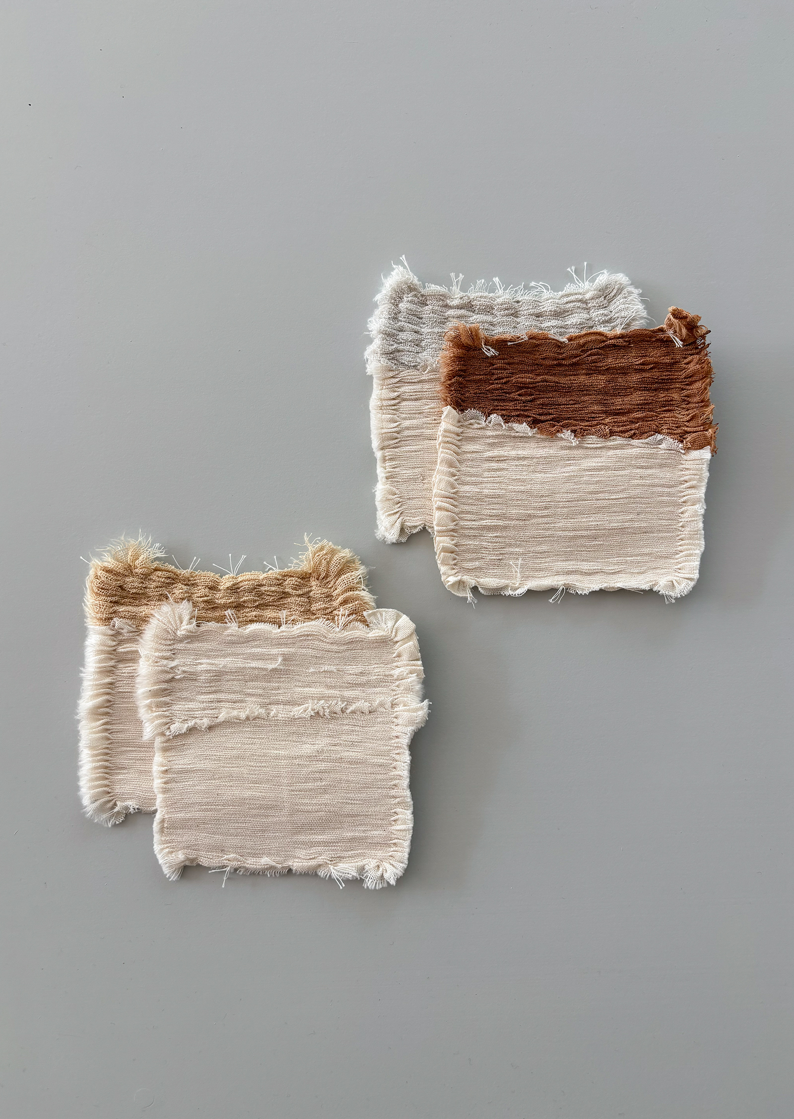 강화 소창과 면 소재의 코스터로 천연 염색 후 주름을 잡은 제품입니다.