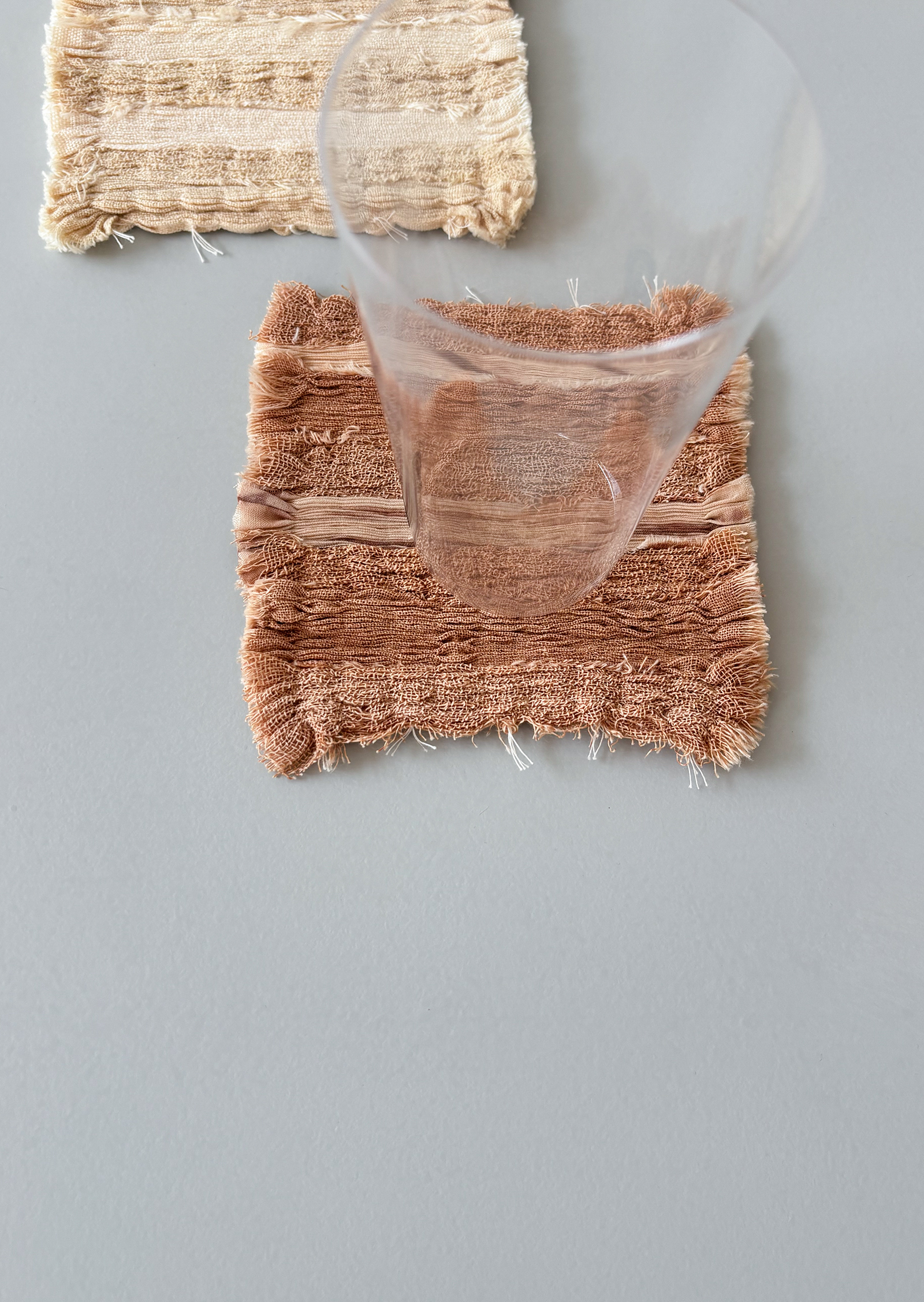 천연 염색 후 다시 주름을 잡아 만들어진 코스터입니다.