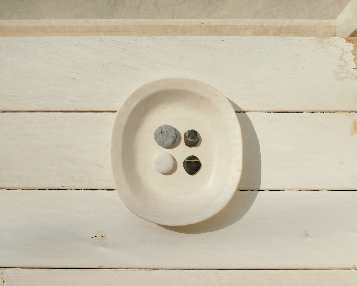 한낮의 그림자가 짧아지는 시간의 따뜻한 해변을 떠올리게 하는 접시입니다.