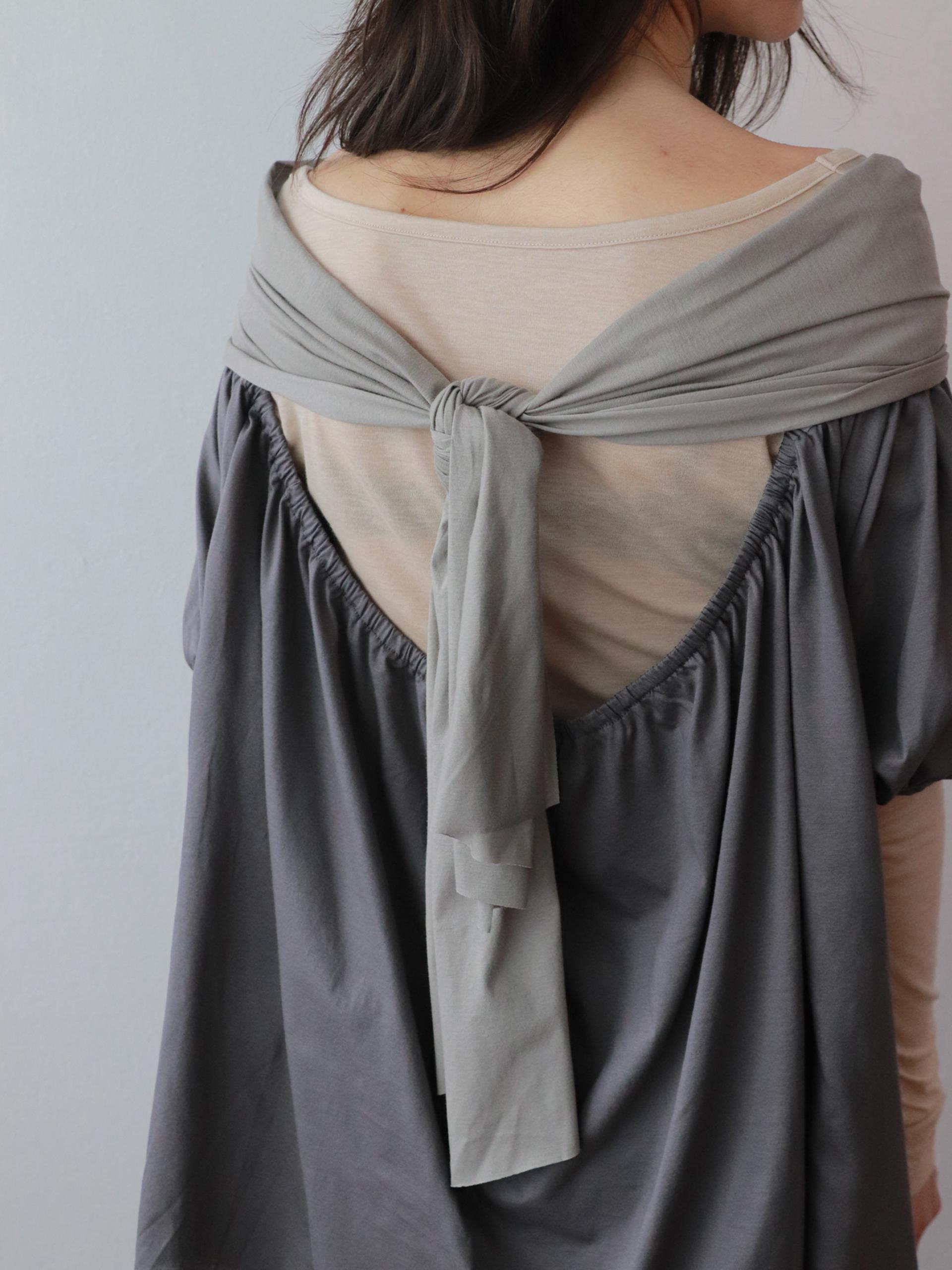 리본을 등 뒤로 가볍게 묶어 연출합니다.