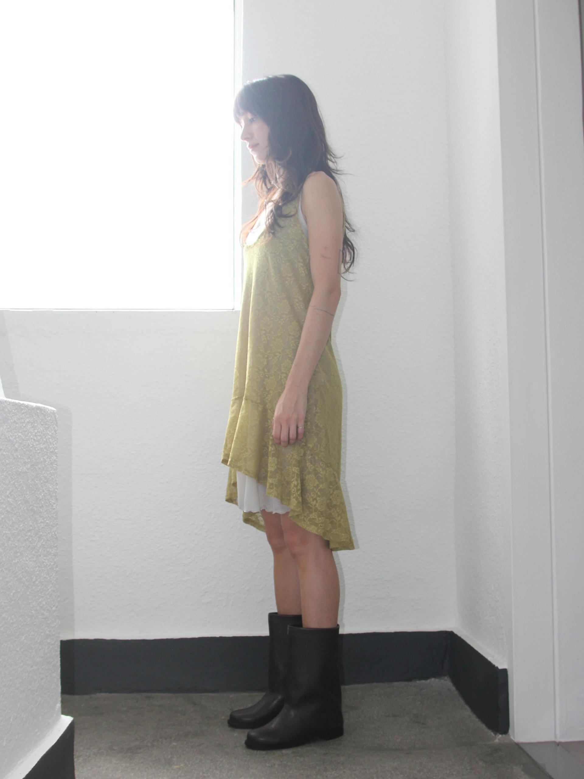 깊은 올리브 색상의 나시 드레스입니다.