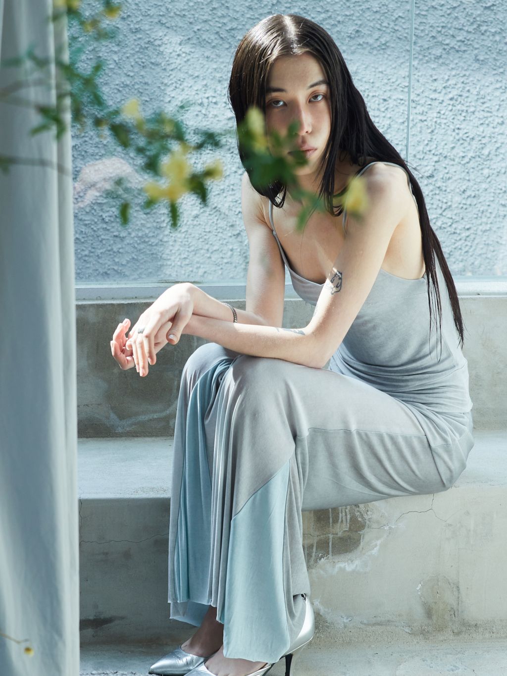 특수 워싱 처리된 원단 ‘모던실크’ 시리즈의 긴 치마