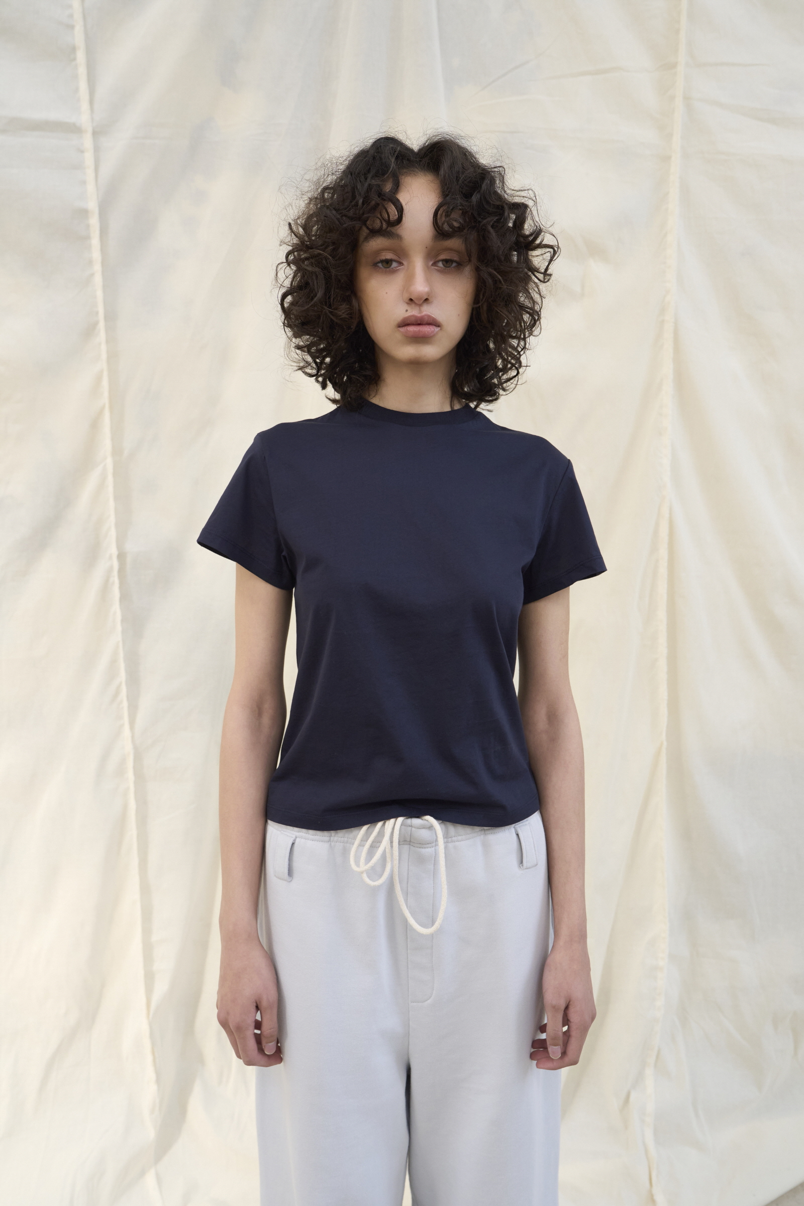 부드러운 코튼 소재의 크루넥 티셔츠입니다.