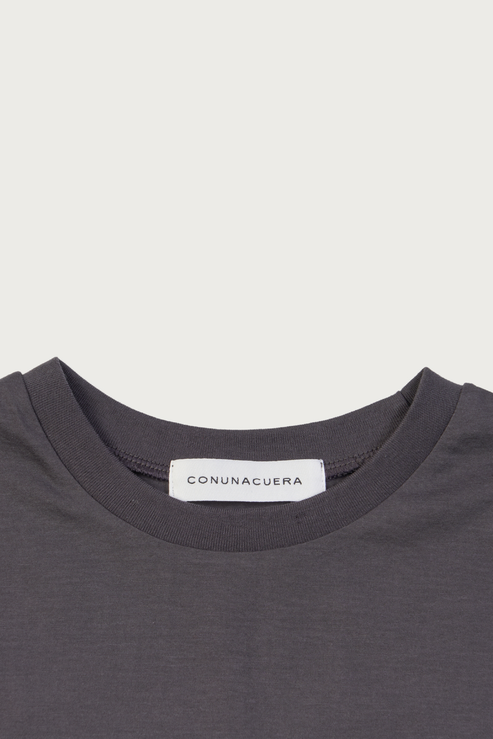 같은 소재의 크루넥 티셔츠와 레이어드하여 스타일링할 수 있습니다.