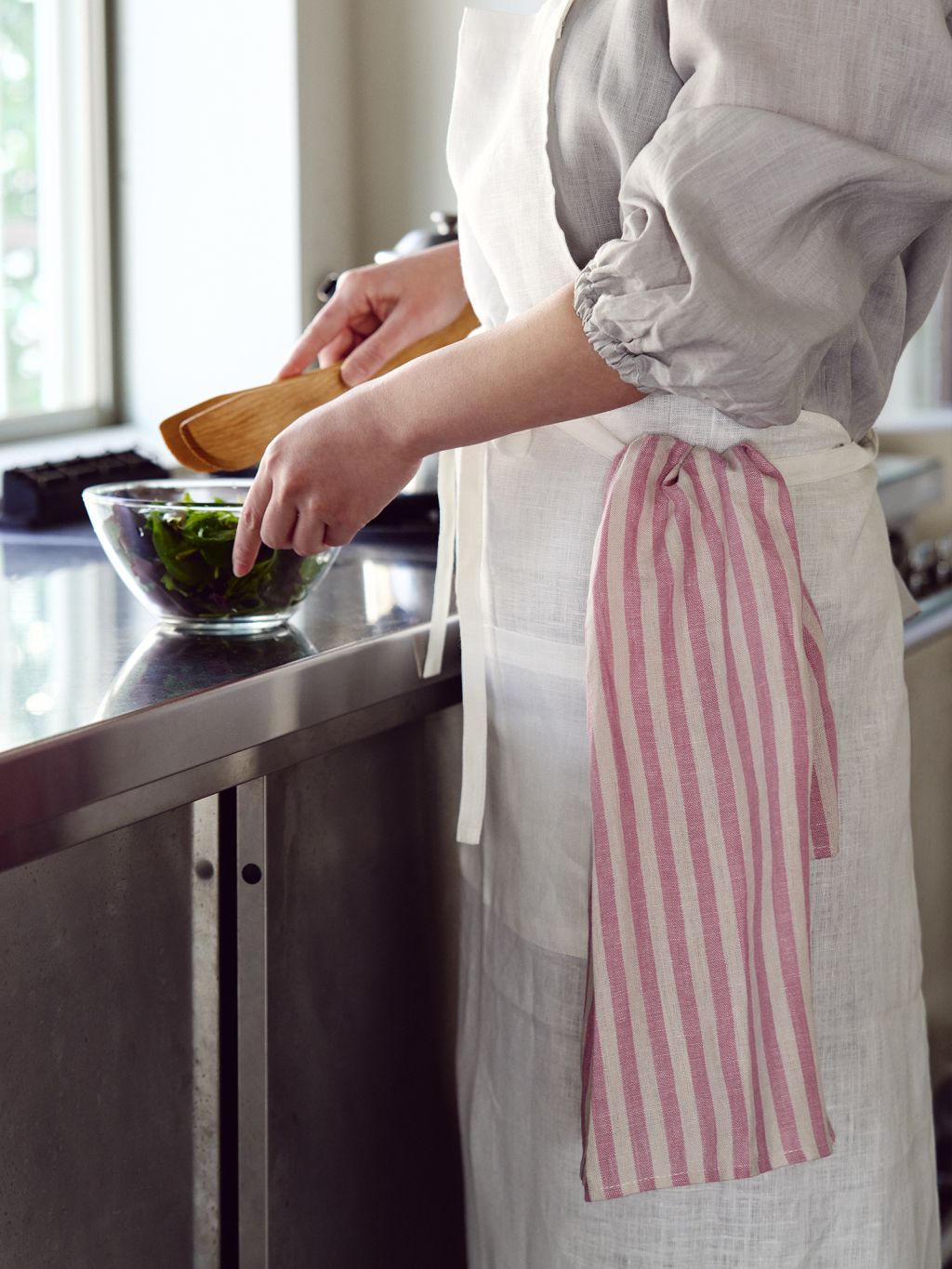 핸드 타월로서 손을 닦아도 좋고 잎 야채의 물기를 닦아주어도 좋습니다. 저는 샌드위치를 만들 때 옆에 두고 루꼴라의 물기를 닦을 때 사용하고 픕니다.
