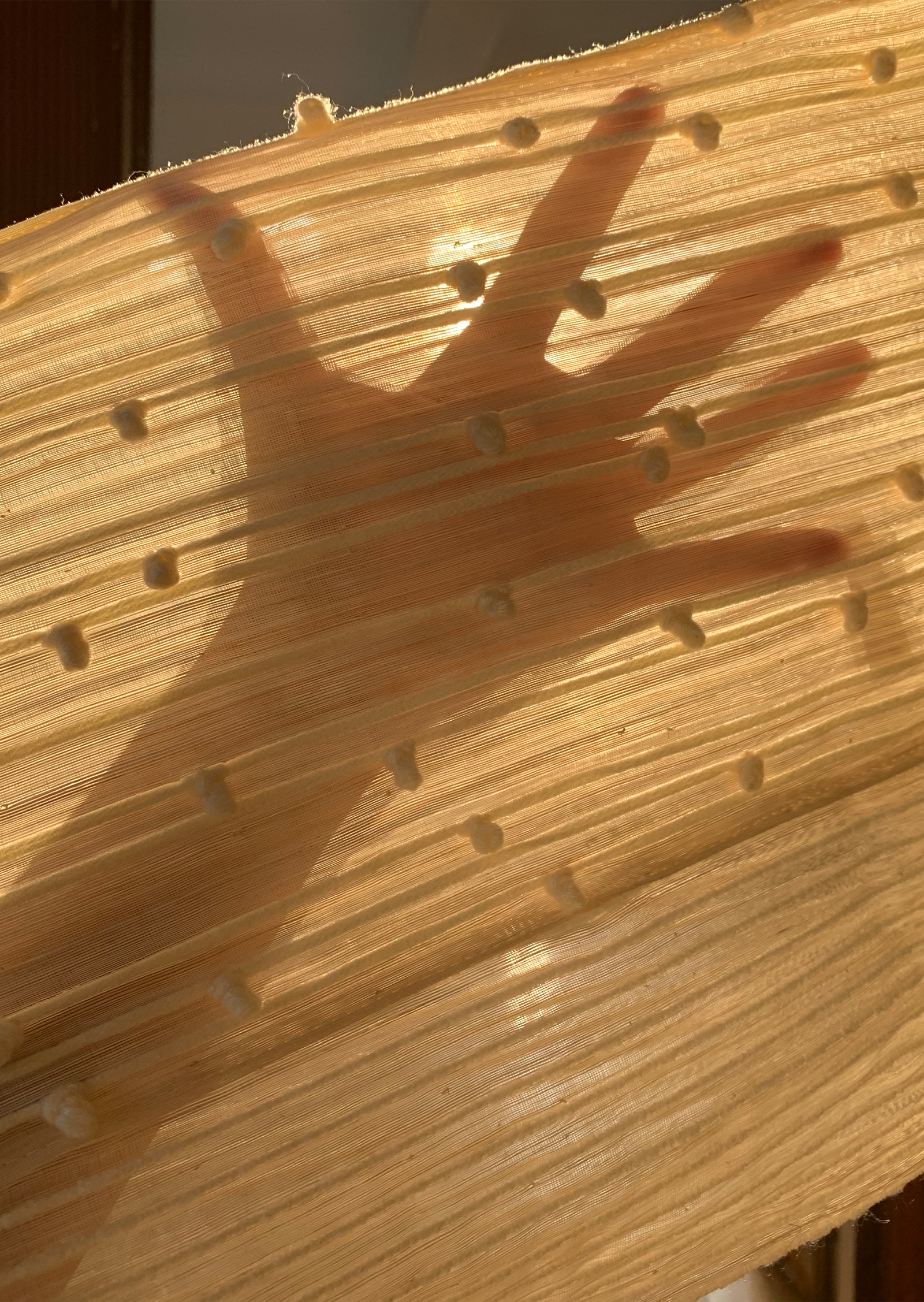그런 아바카 식물의 줄기를 썰고 긁어내어 햇볕에 말린 후 가장 가는 섬유를 분리하여 천으로 엮어 만들어집니다.