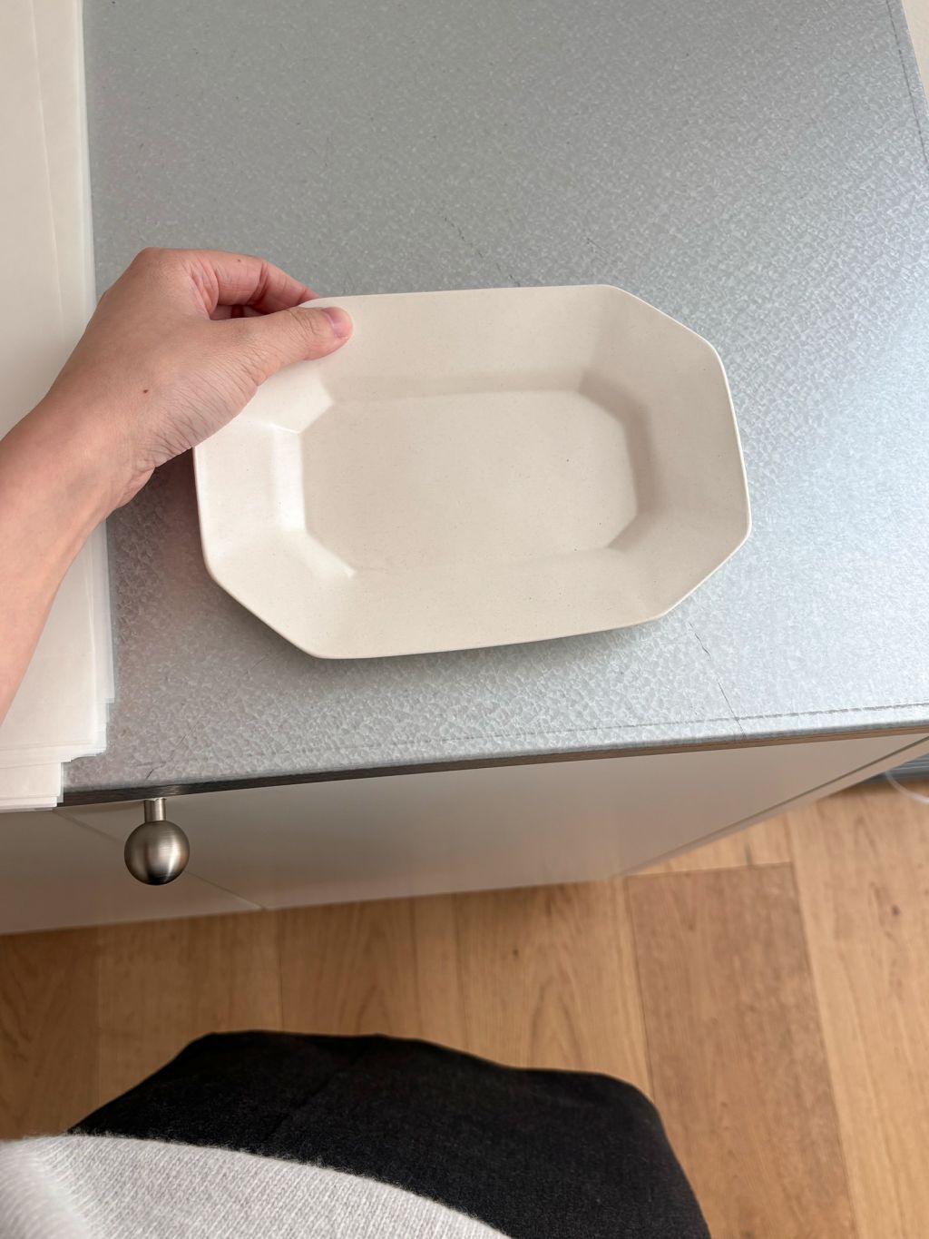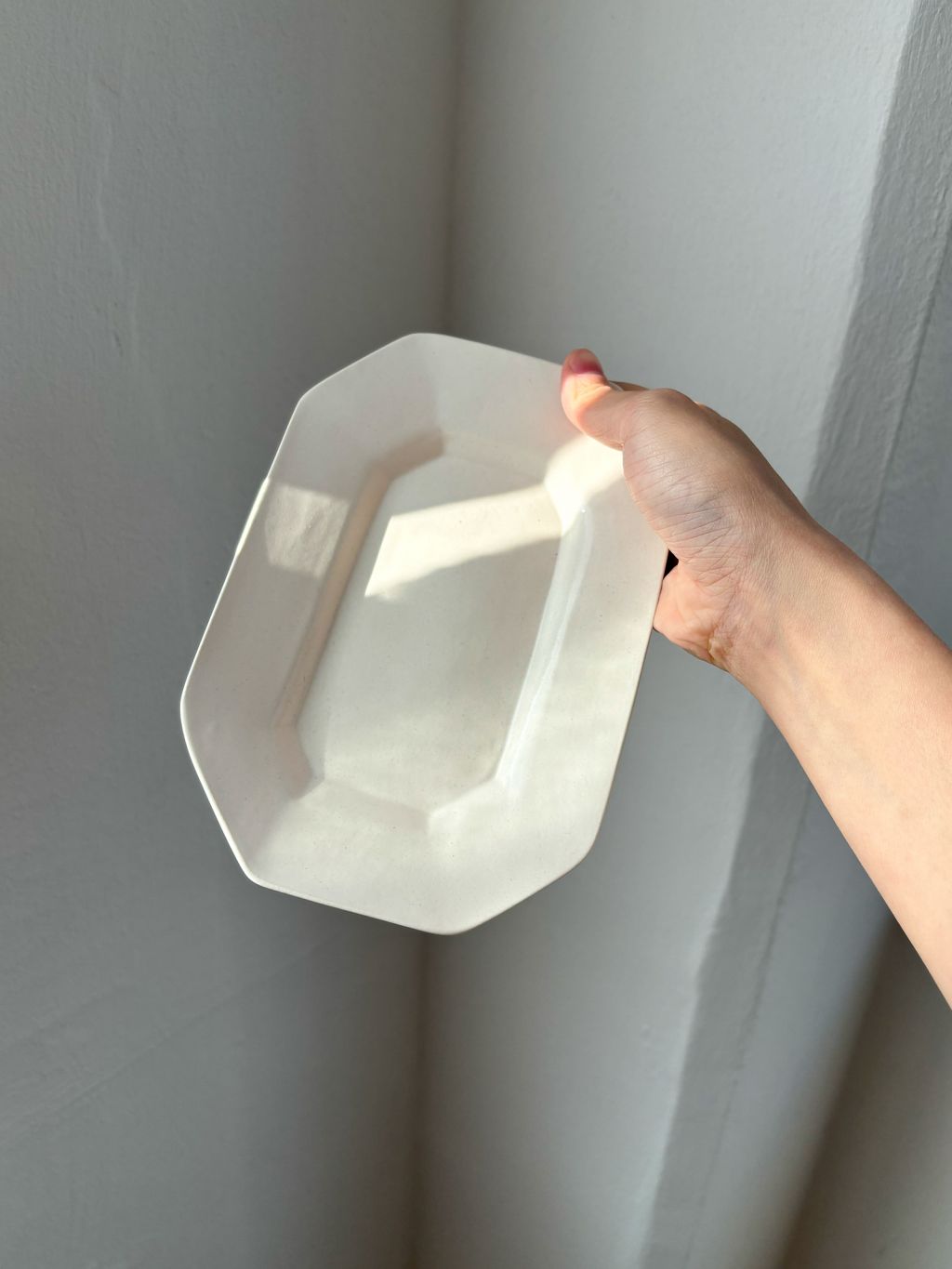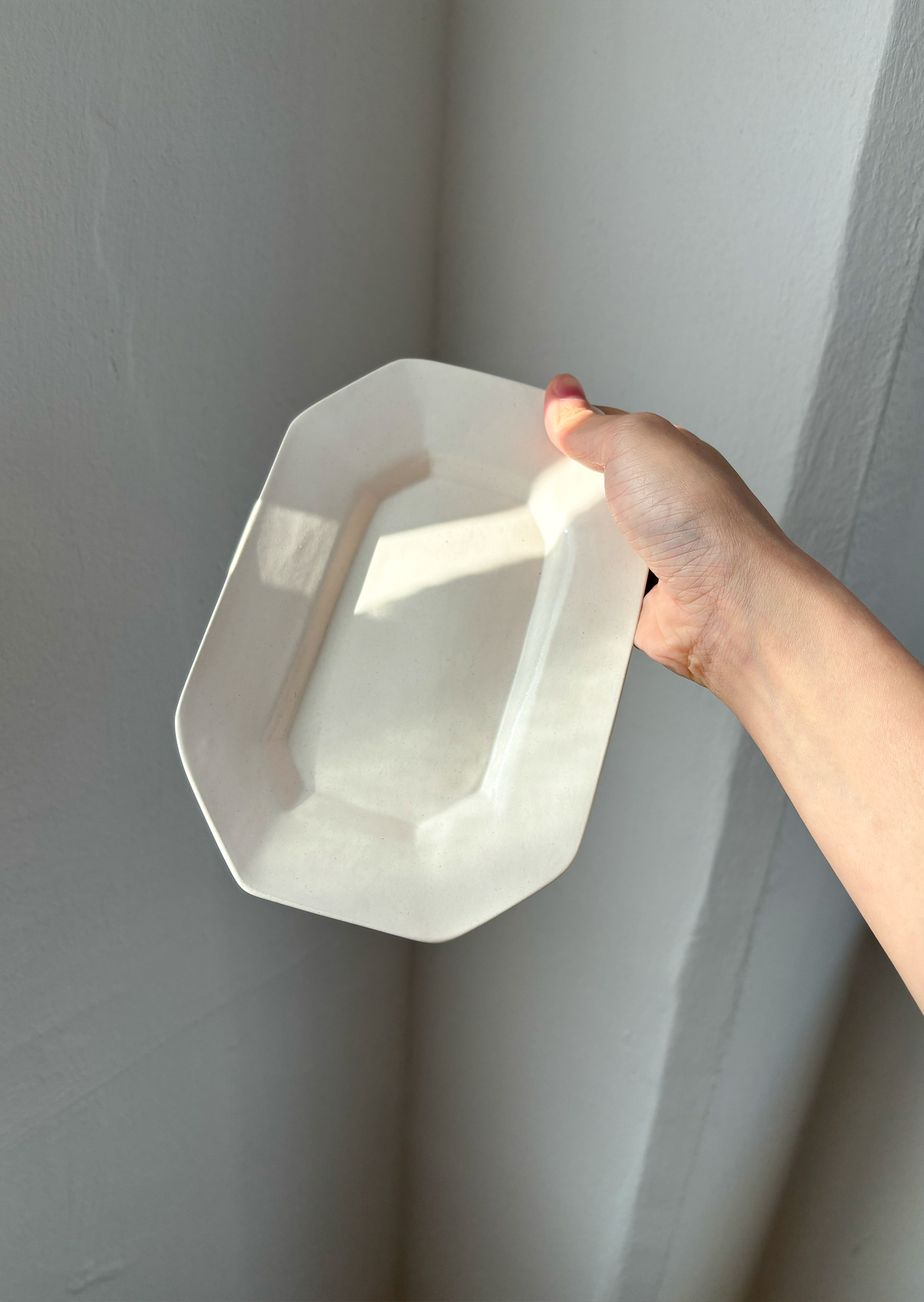 아이보리 톤의 새하얀 흙을 사용해 만든 팔각 플레이트입니다.