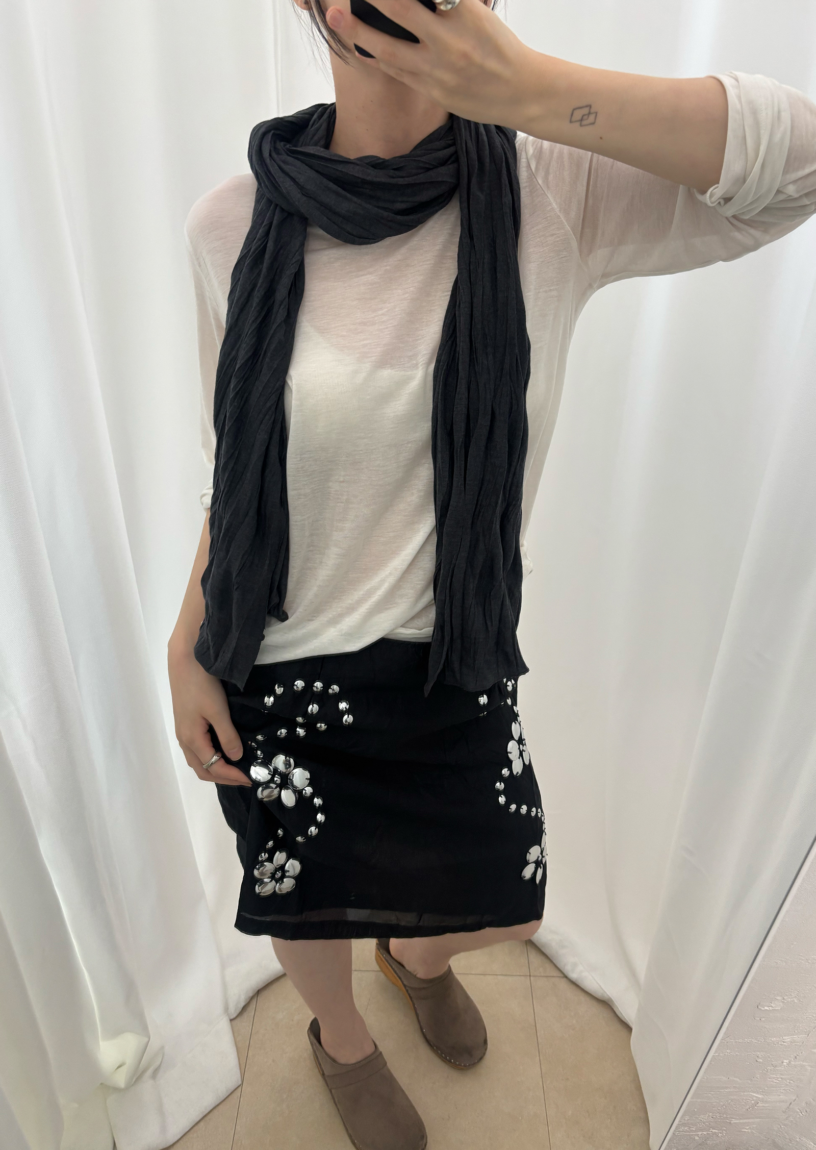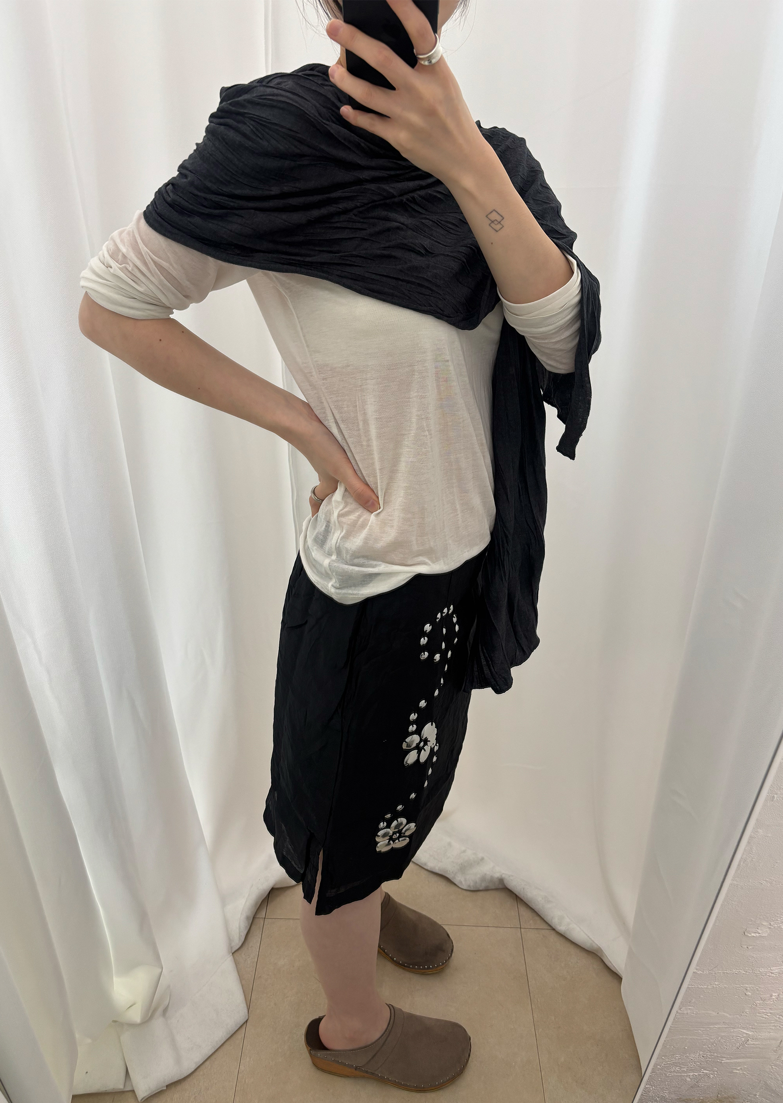 목에 둘러 착용할 땐 한번 두를지 두 번 두를지, 펼쳐서 두를지 접어서 두를지 여러 방법이 제안됩니다.