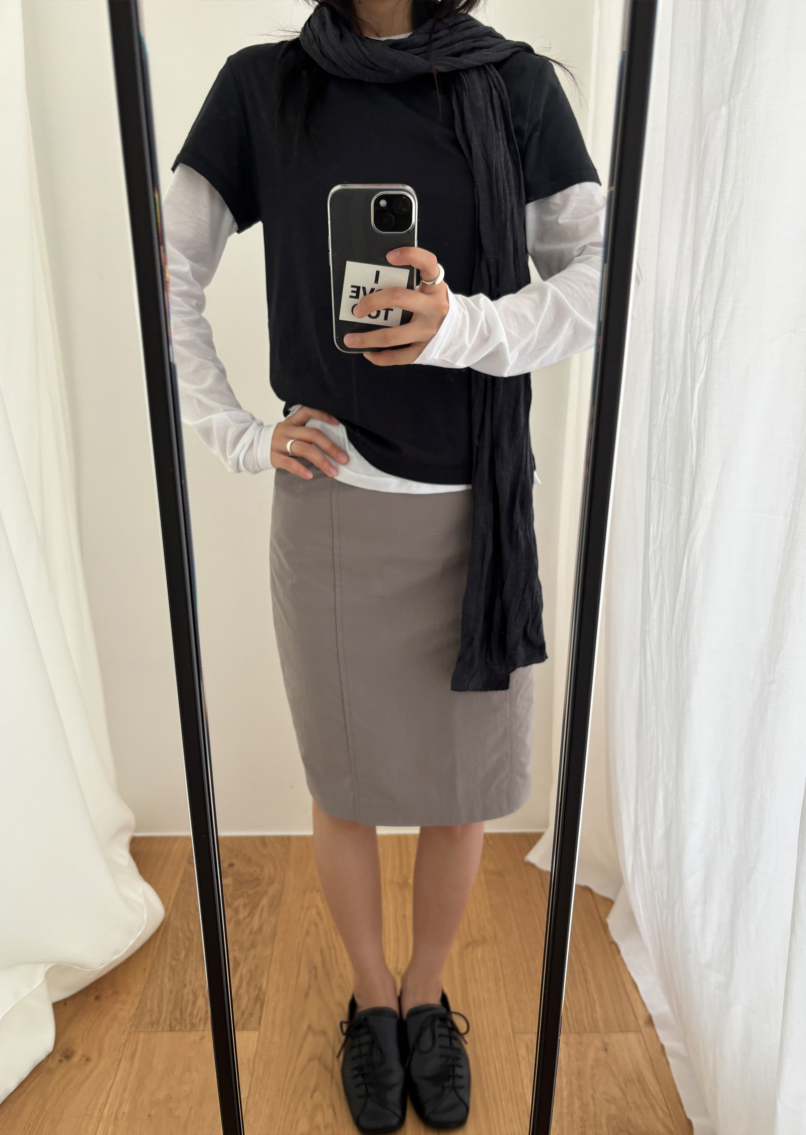 깔끔한 형태를 바탕으로 하고, 부족한 디테일은 자연스레 잡은 주름으로 채워줘요.