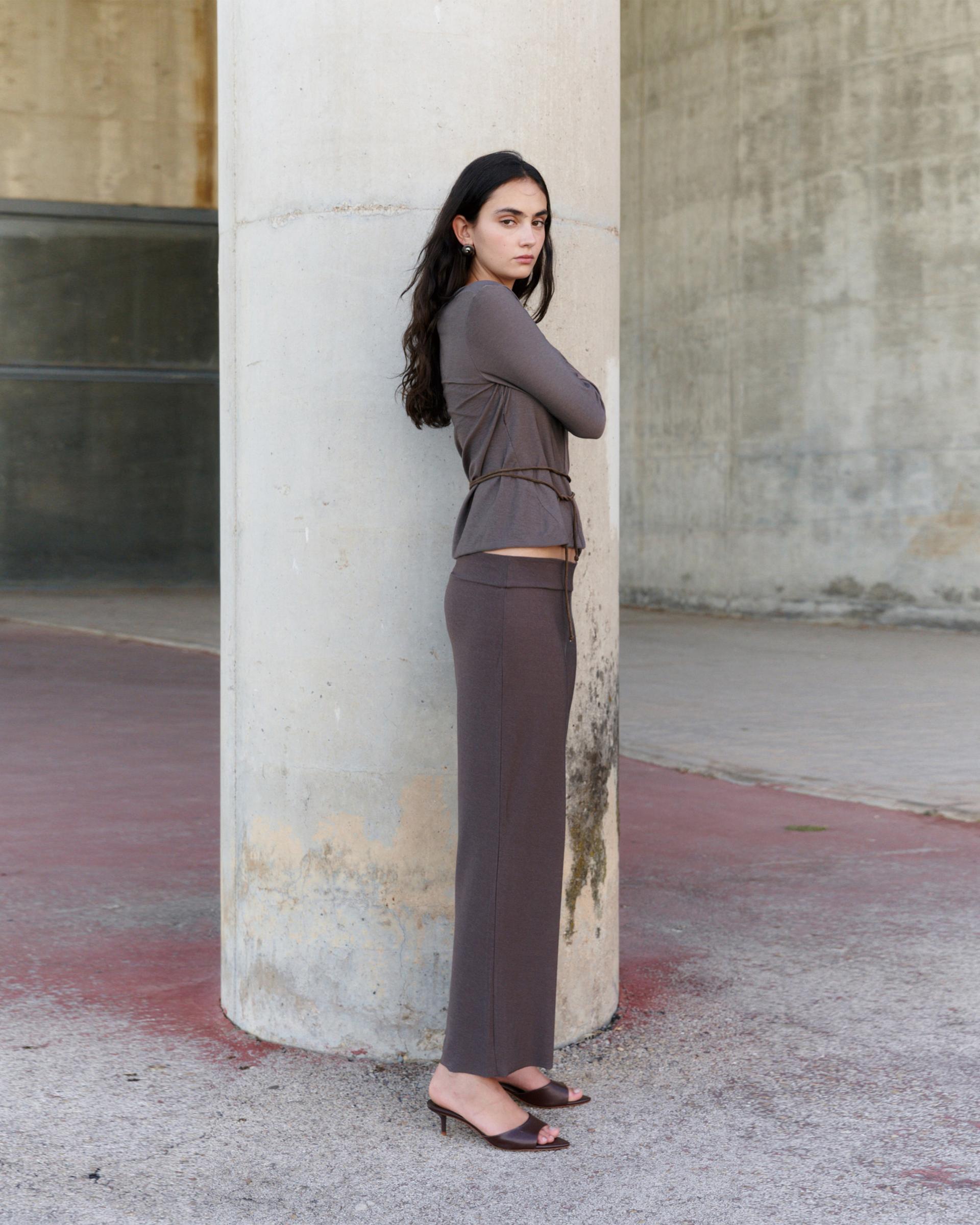 탈부착 가능한 같은 톤의 Modern Silk 원단으로 제작된 원통형 끈