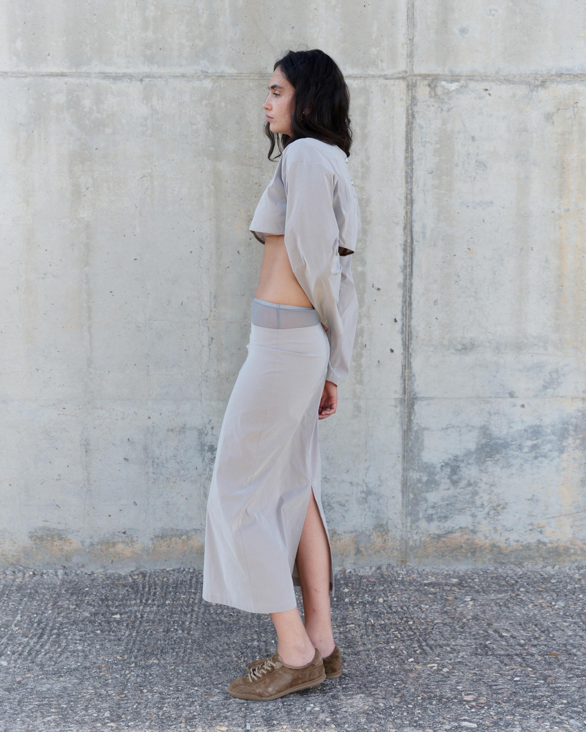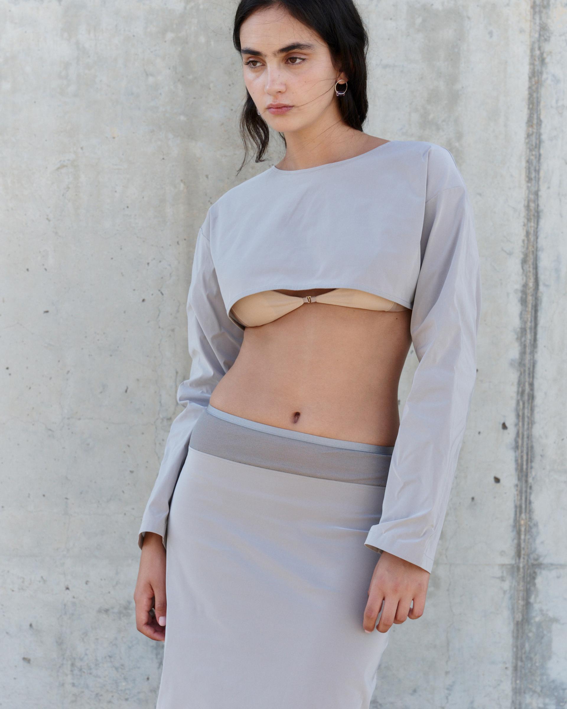 오버숄더핏의 크롭 기장의 긴팔 탑