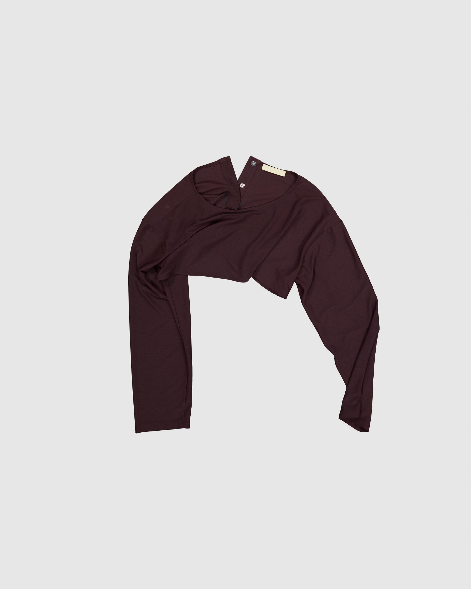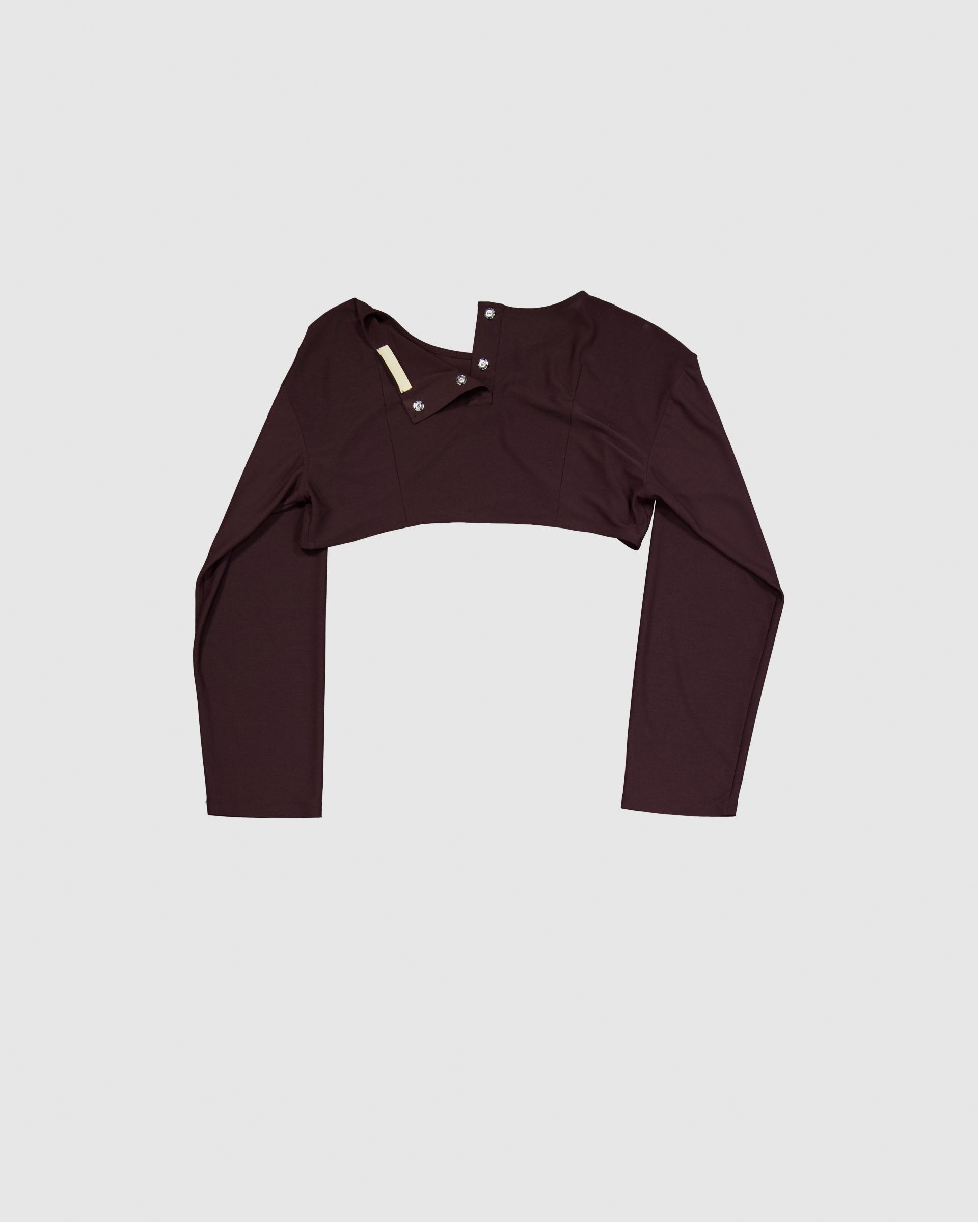 오버숄더핏의 크롭 기장의 긴팔탑