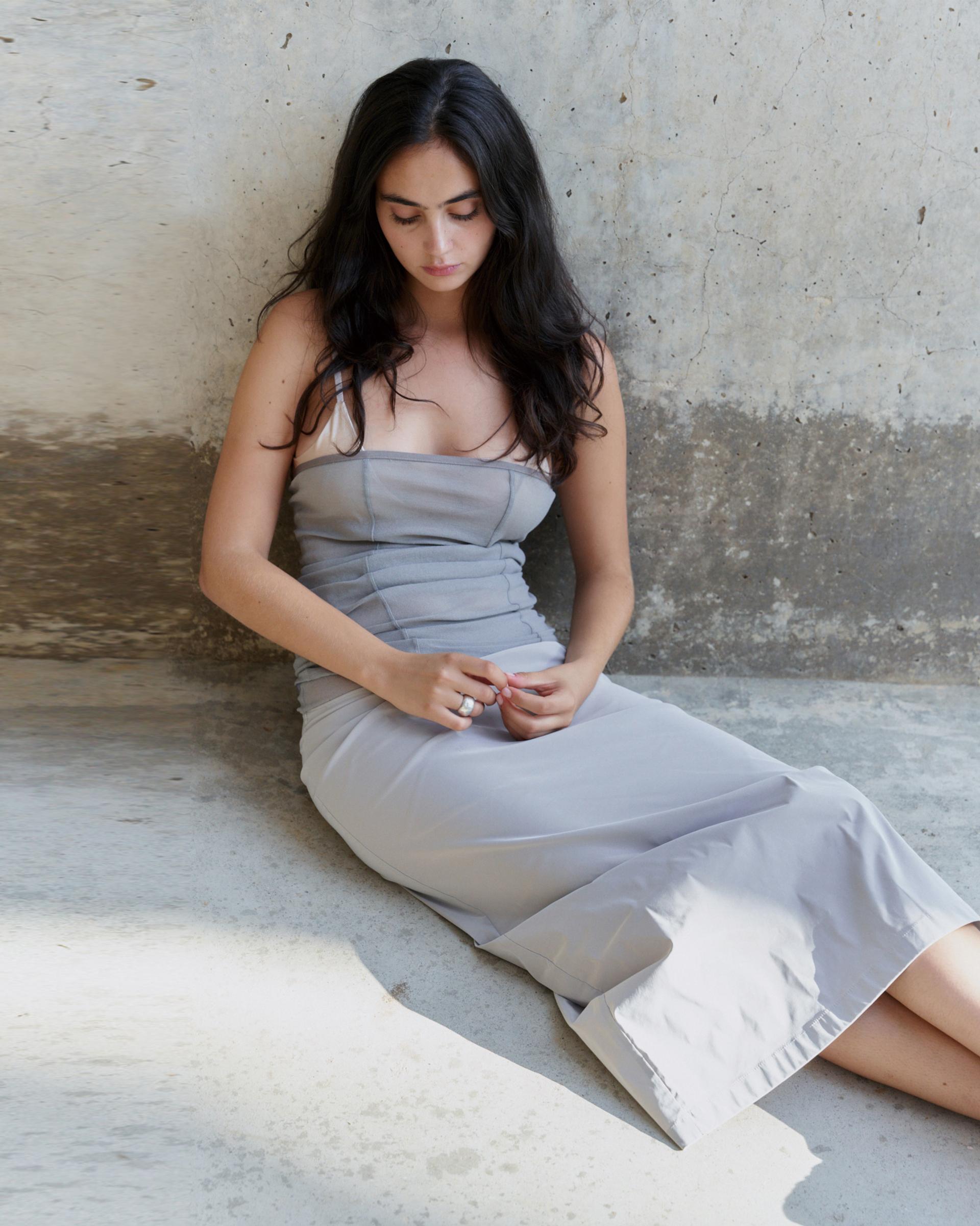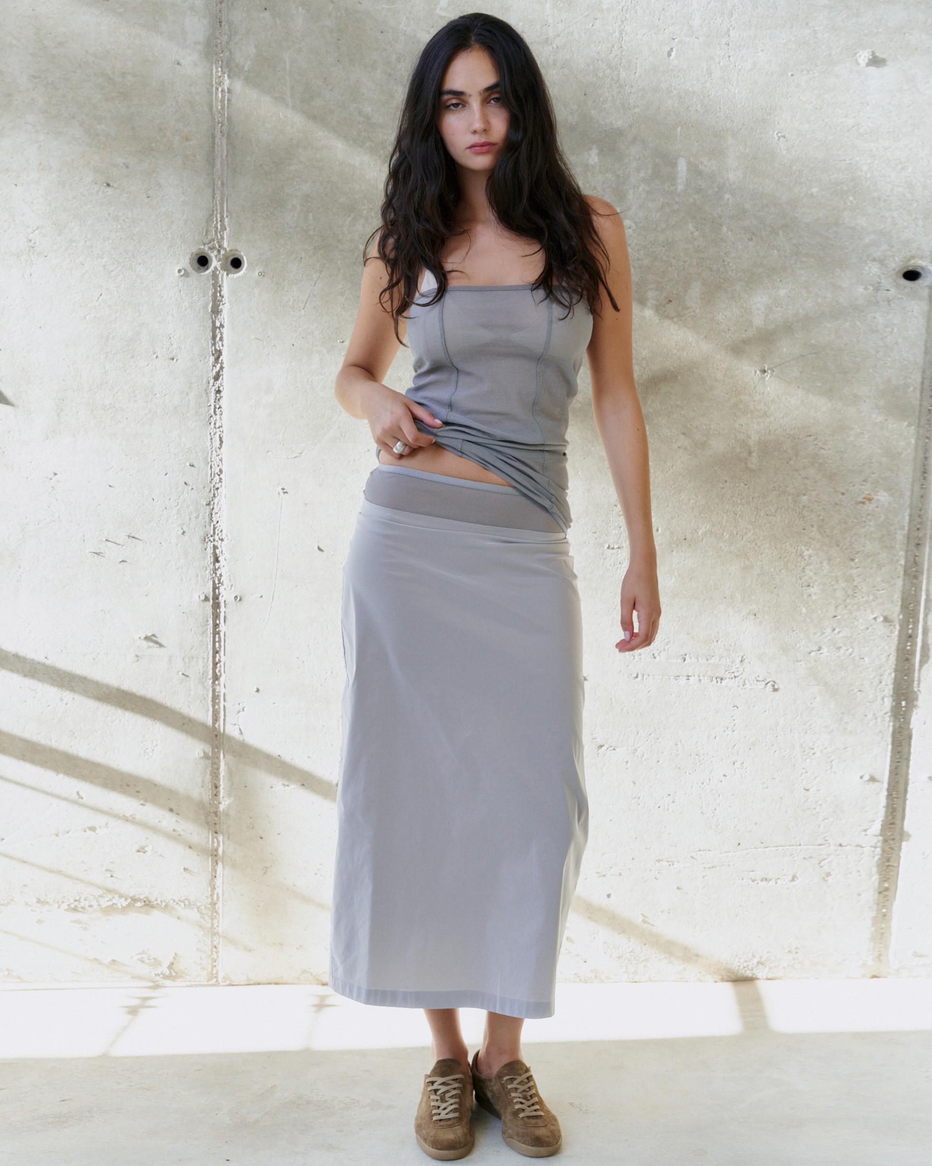 몸판 절개 패널과 이중 스티치의 코르셋 효과