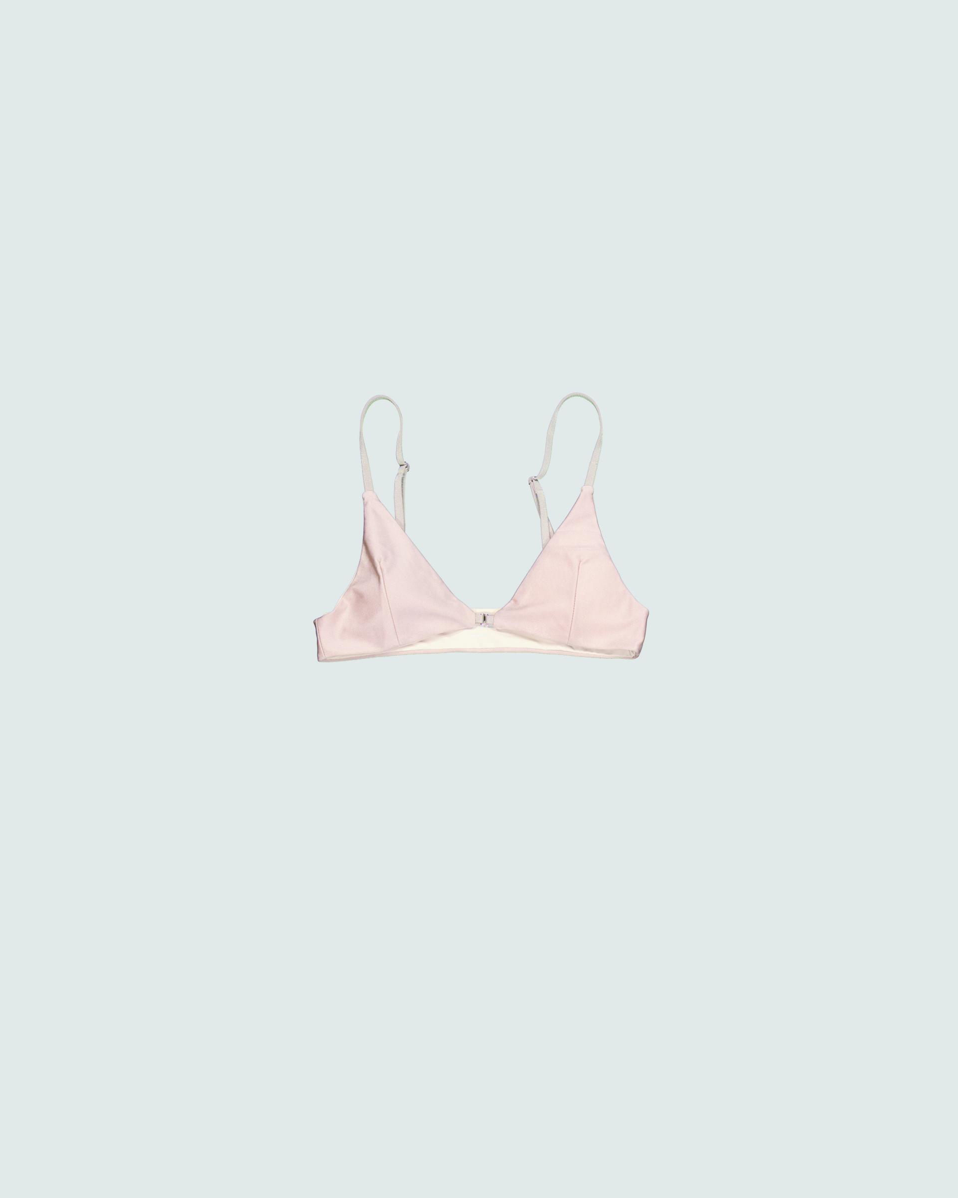 광택감이 도는 나일론 저지 원단으로 제작된 브라탑