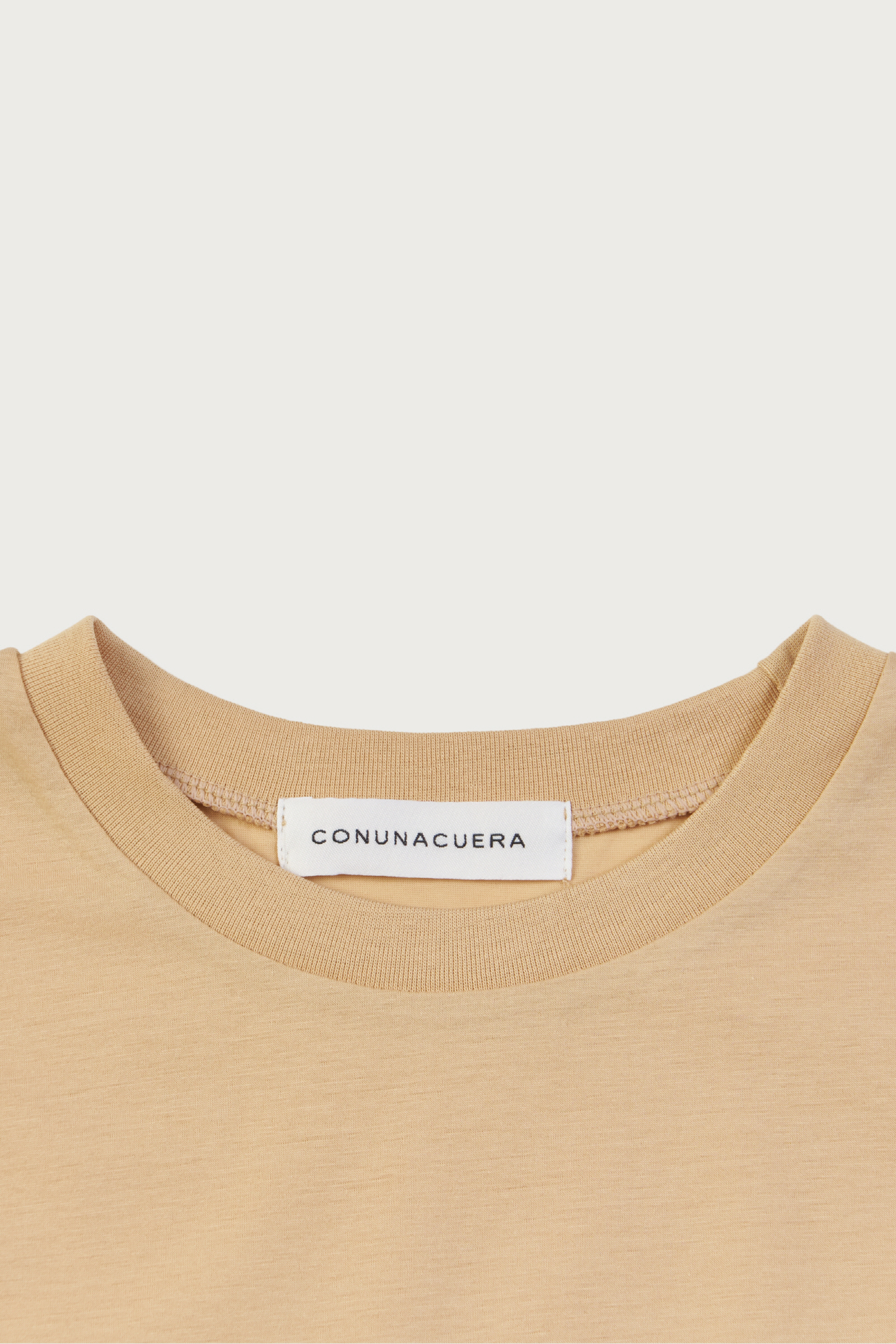 같은 소재의 크루넥 티셔츠와 레이어드하여 스타일링할 수 있습니다.