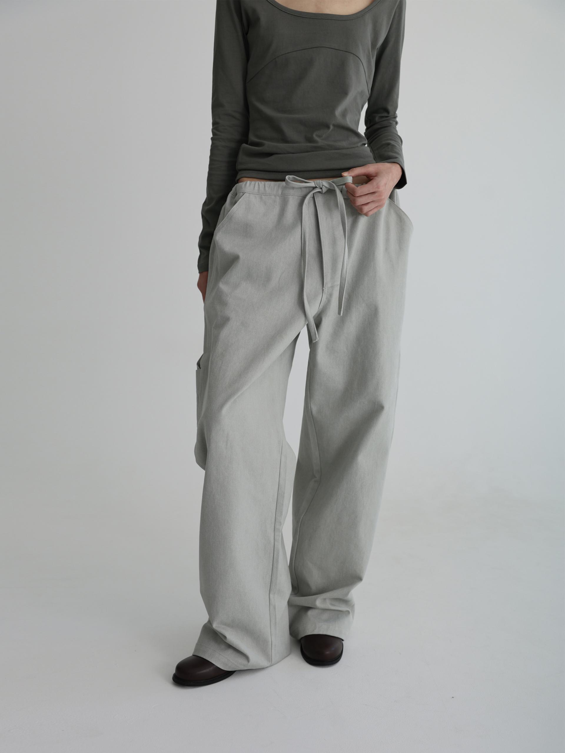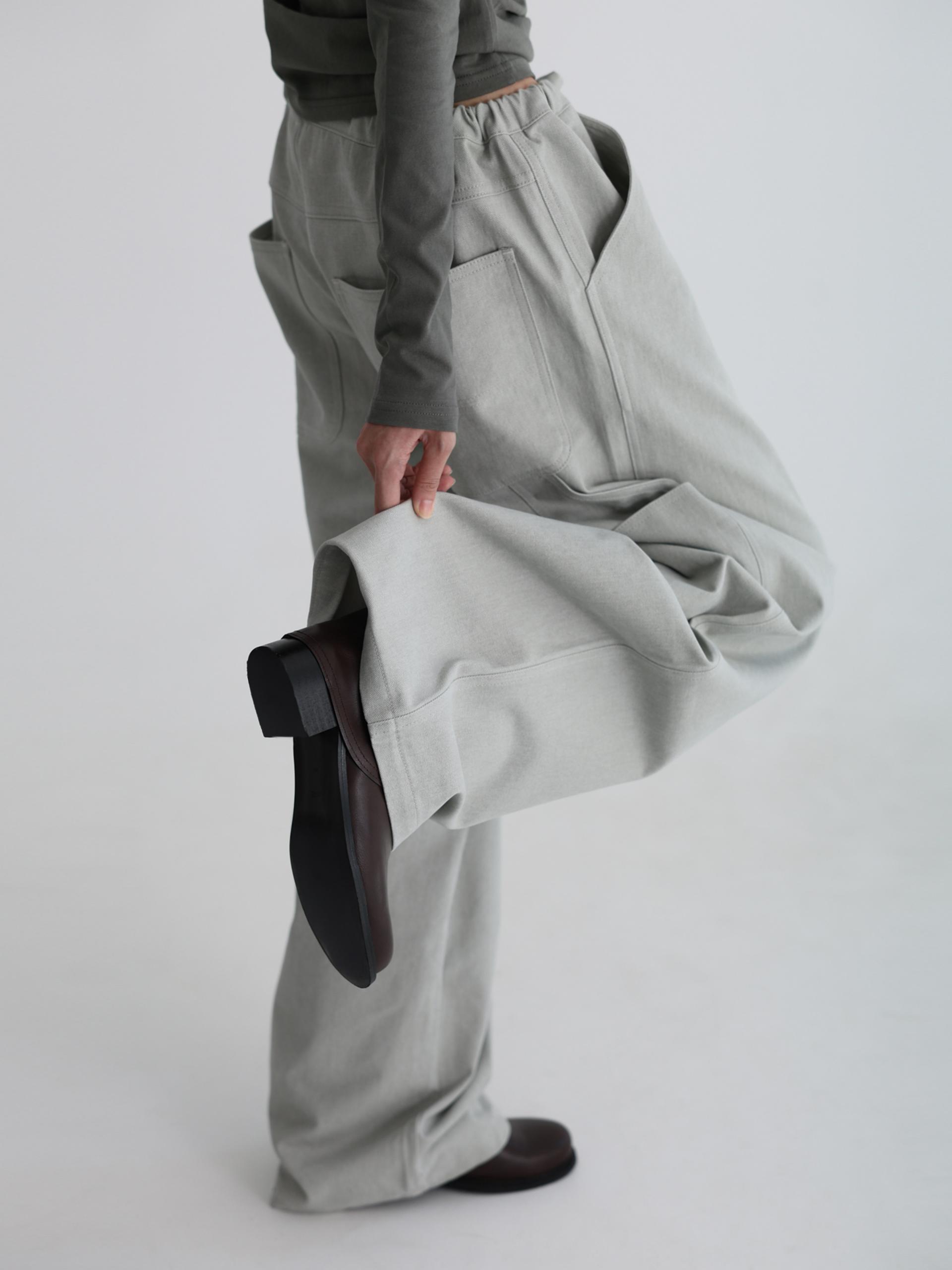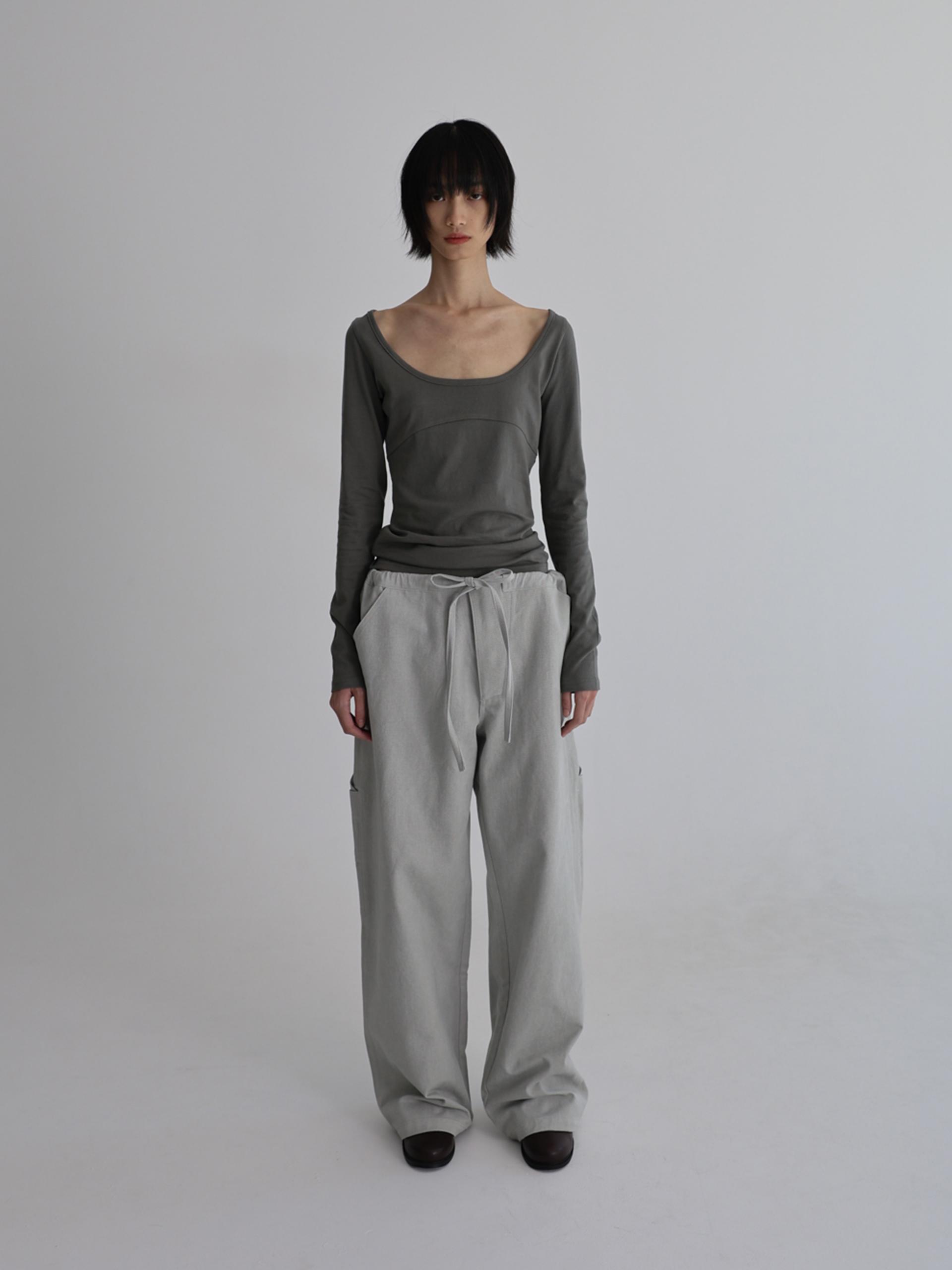 스트링으로 허리를 조여 착용자의 체형에 맞게 착용합니다. 조인 허리는 바깥으로 한 번 접어 자연스럽게 생기는 셔링 볼륨의 실루엣으로도 착용할 수 있습니다.