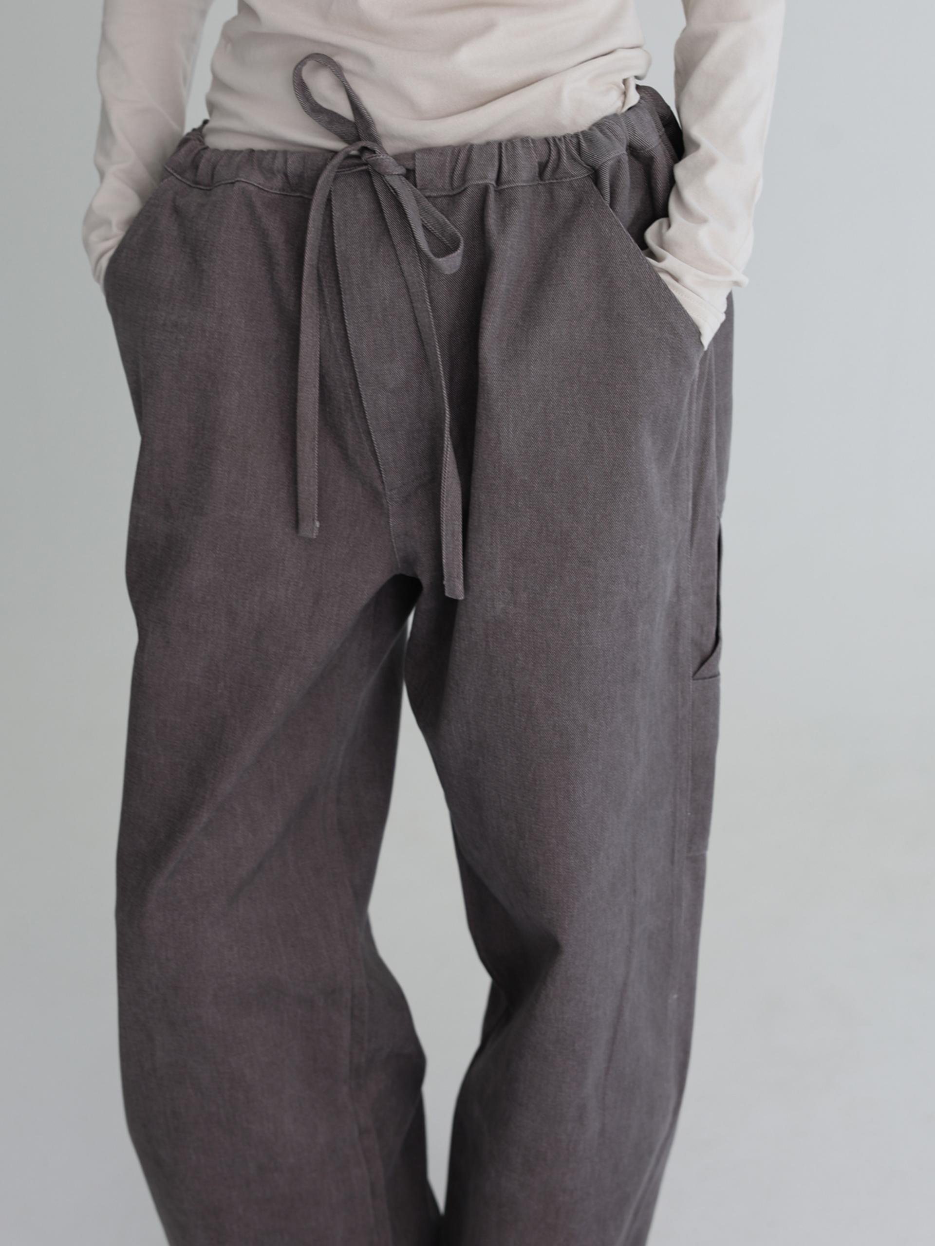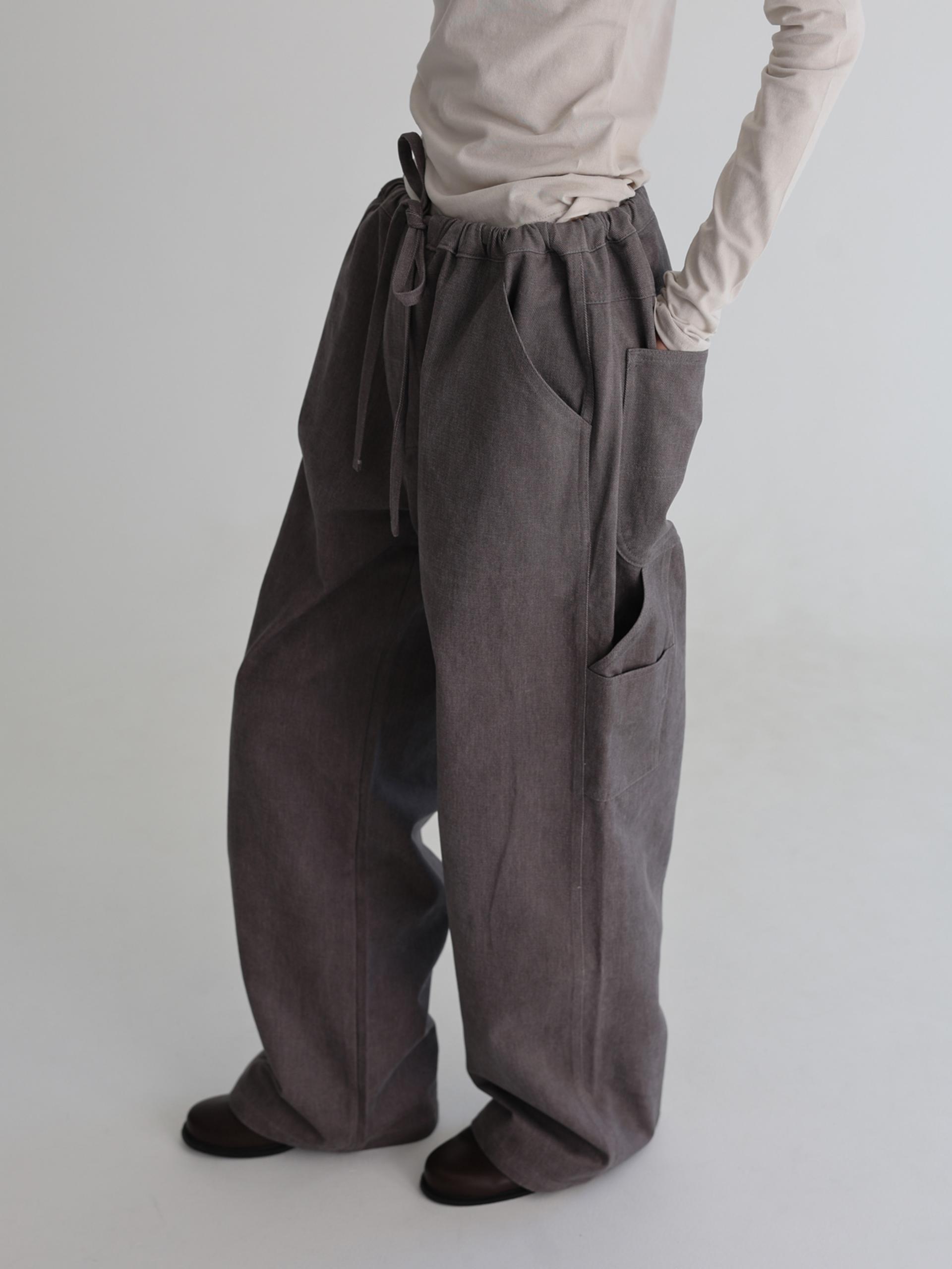 간절기와 초겨울까지 착용하기 좋은 릴렉스한 핏의 팬츠입니다. 보온을 위해 적당한 두께감의 묵직한 코튼 원단을 사용했습니다.