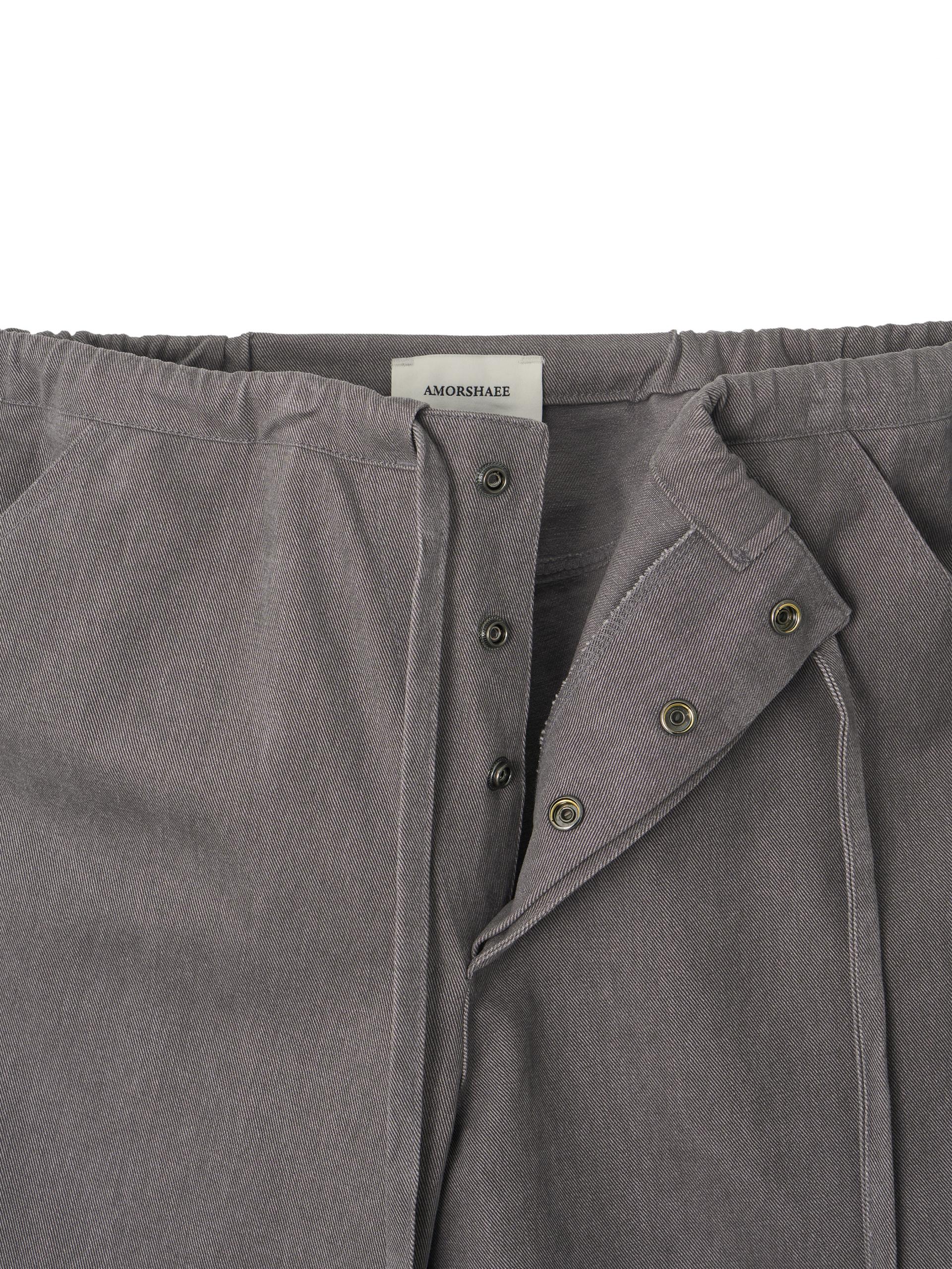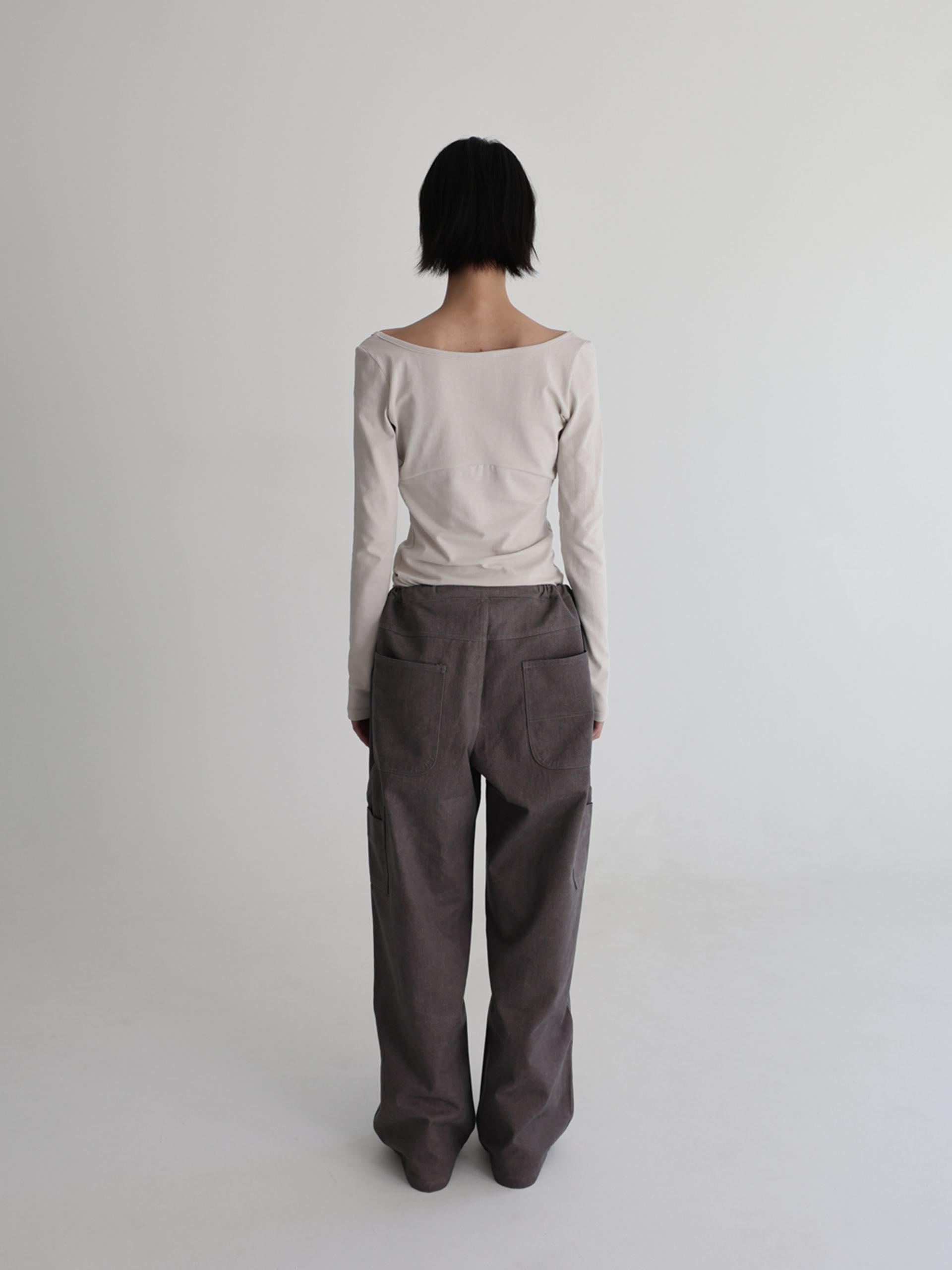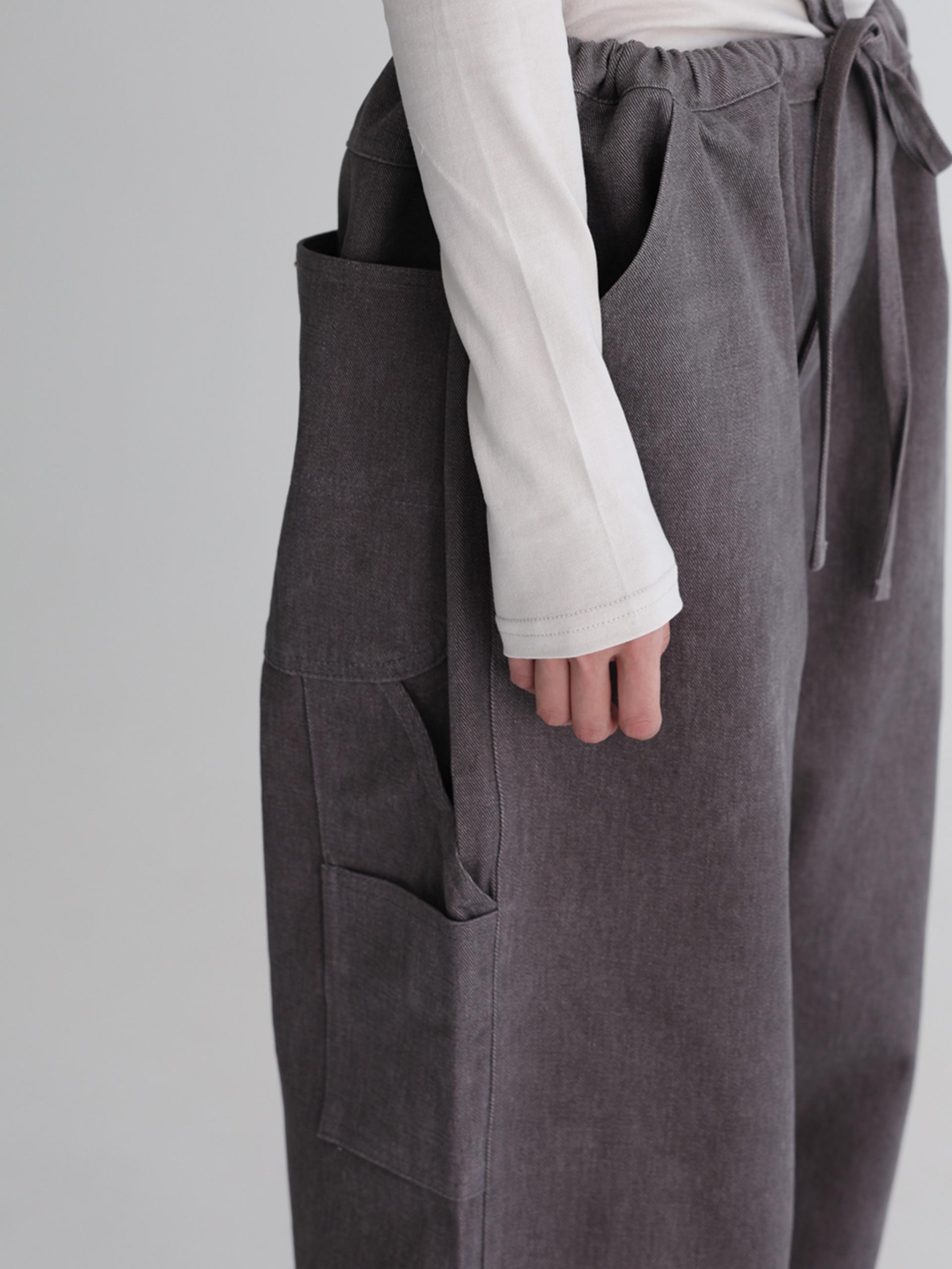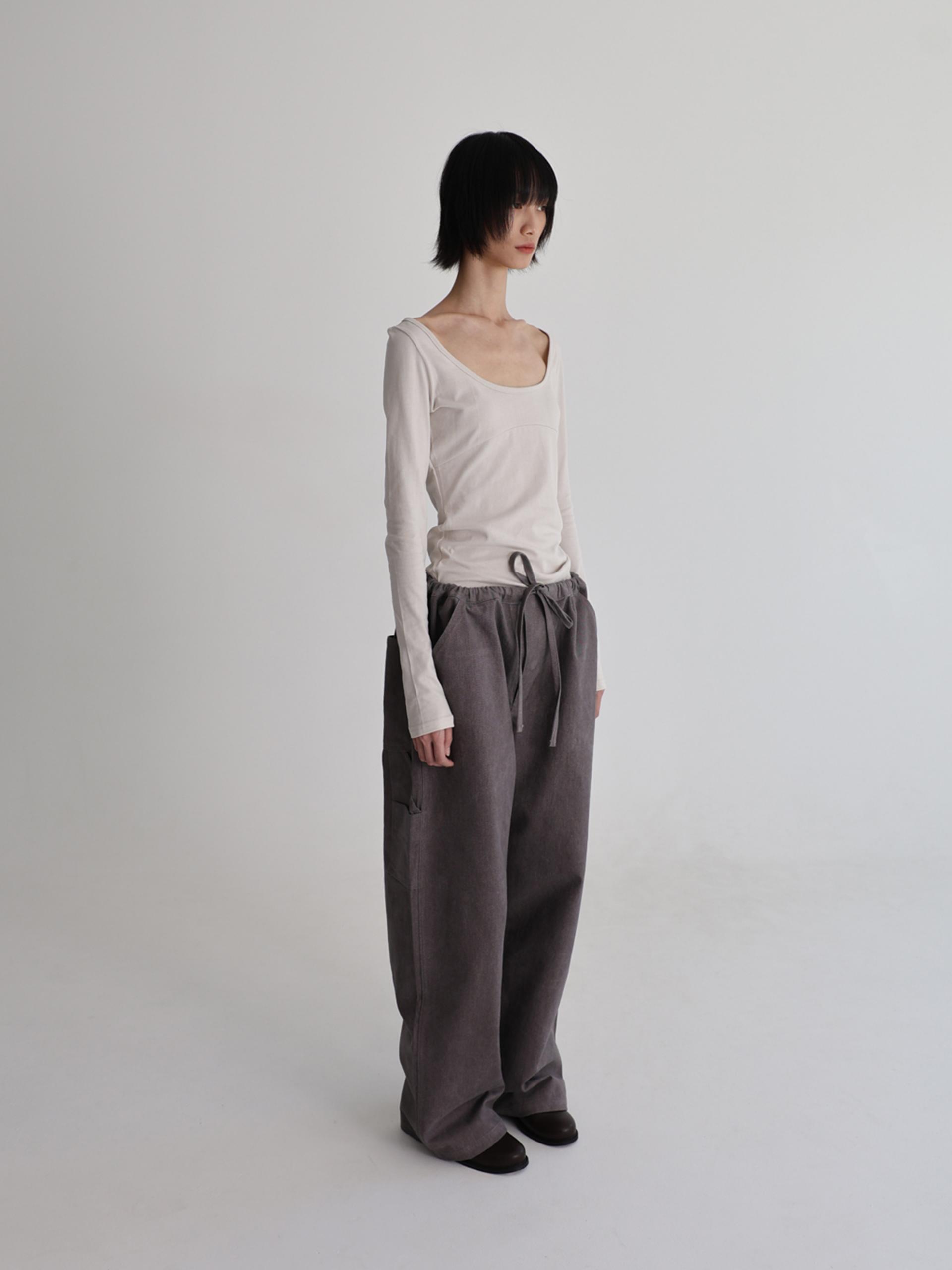 스트링으로 허리를 조여 착용자의 체형에 맞게 착용합니다. 조인 허리는 바깥으로 한 번 접어 자연스럽게 생기는 셔링 볼륨의 실루엣으로도 착용할 수 있습니다.