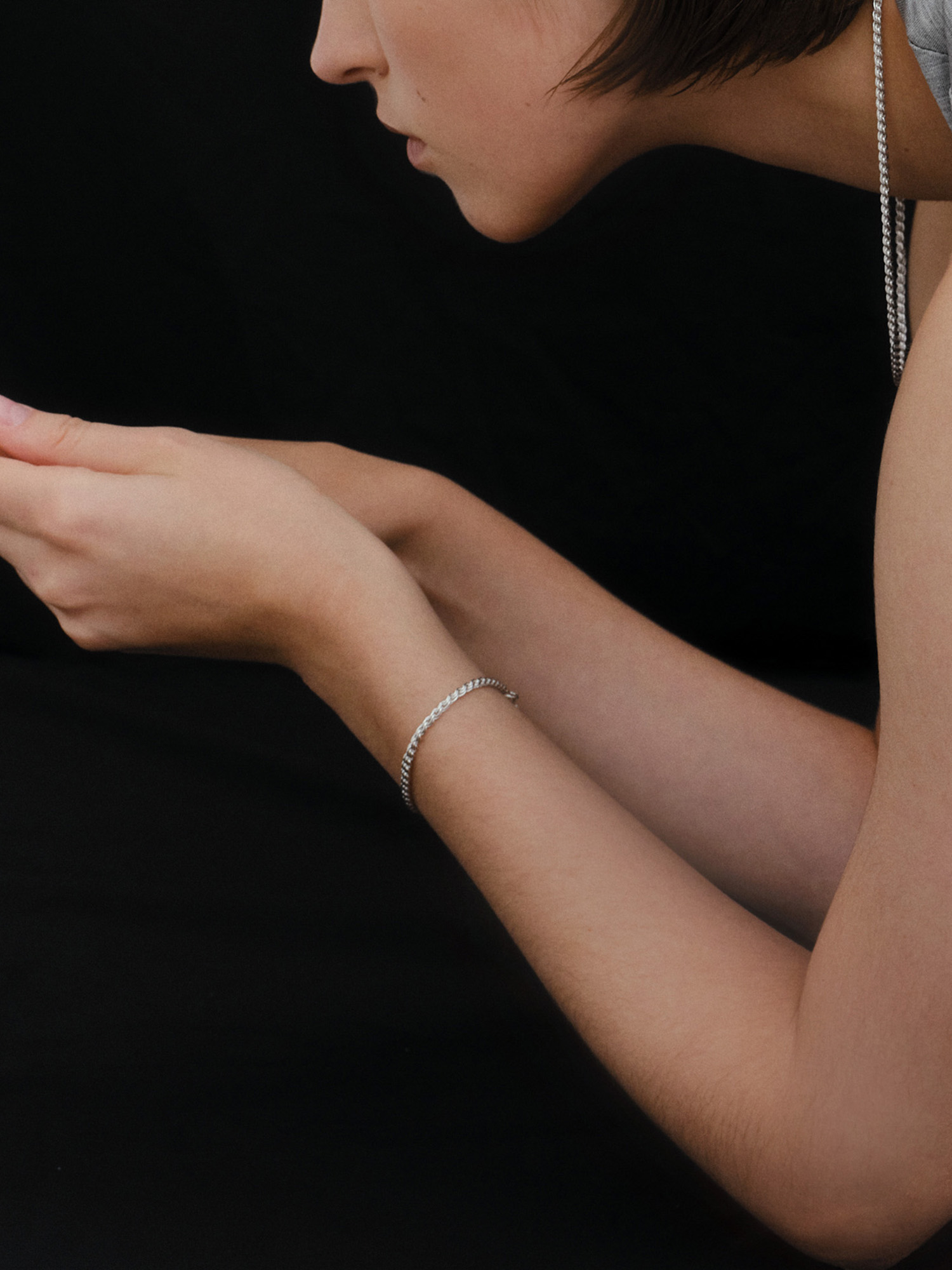 굵은 선들이 견고하고 멋스럽게 짜여있는 로프 브레이슬릿입니다.