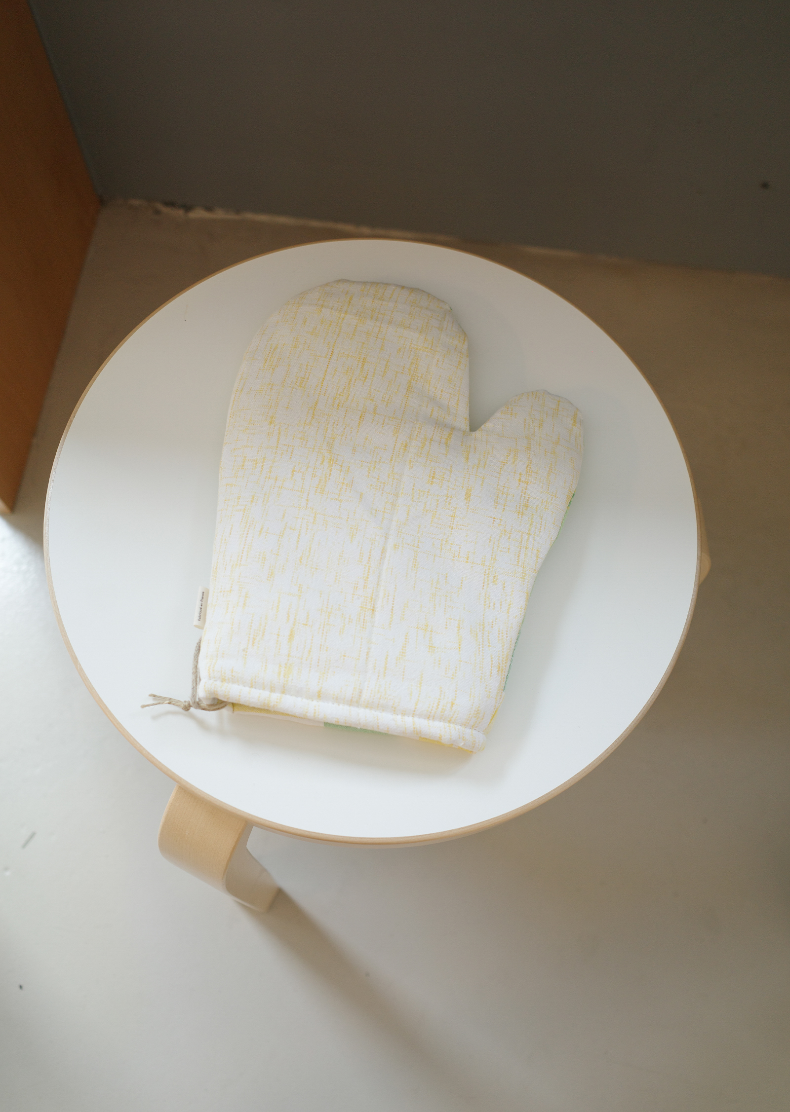 내열 기능이 있는 오븐 장갑이라 실용성은 덤이에요. 앞과 뒤, 각기 다른 패브릭으로 만들어져 바꿔가며 사용하는 재미가 있답니다.