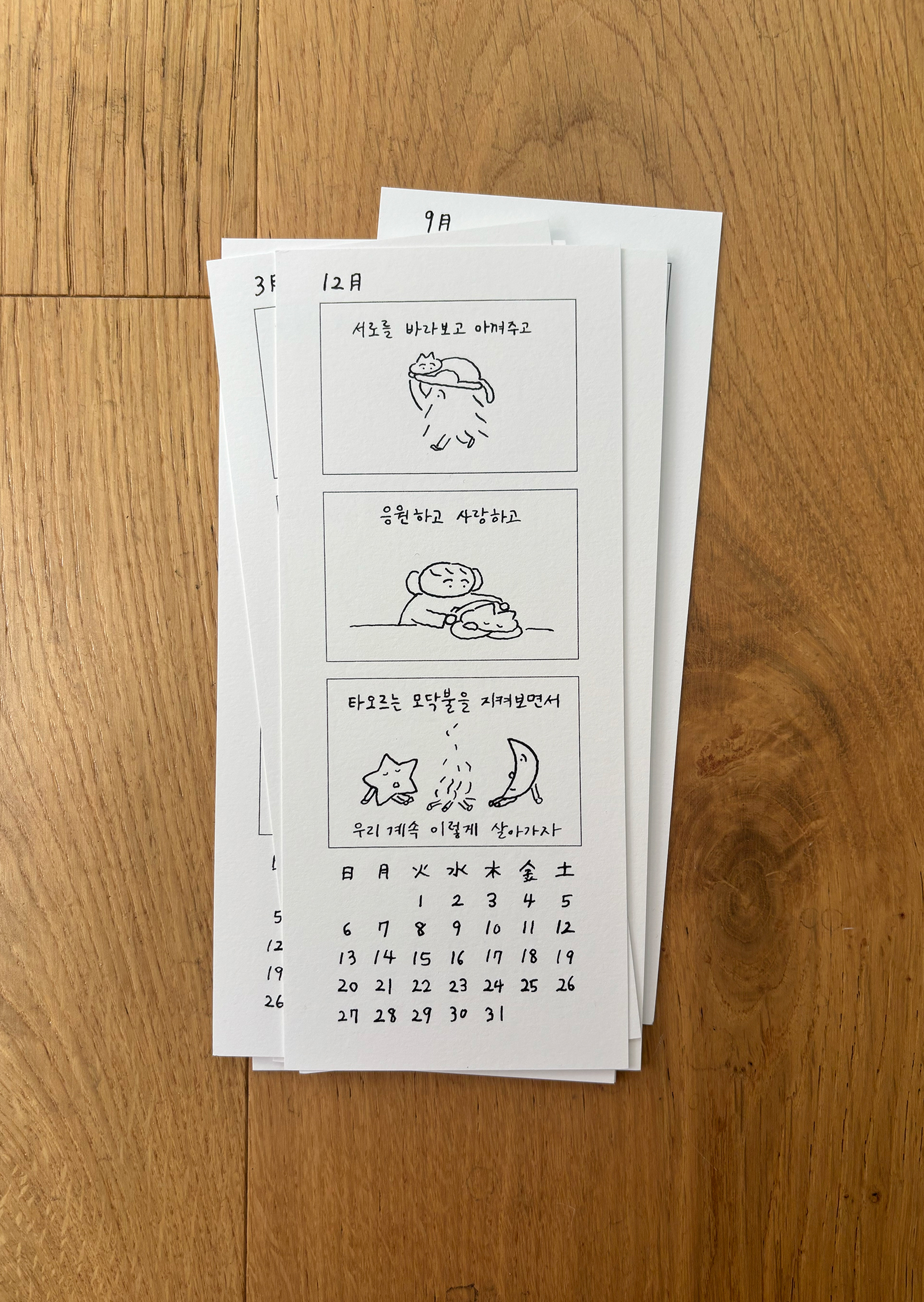 한 해를 보내며 만난 감정들을 내년을 위해 새겨둔 달력입니다.
