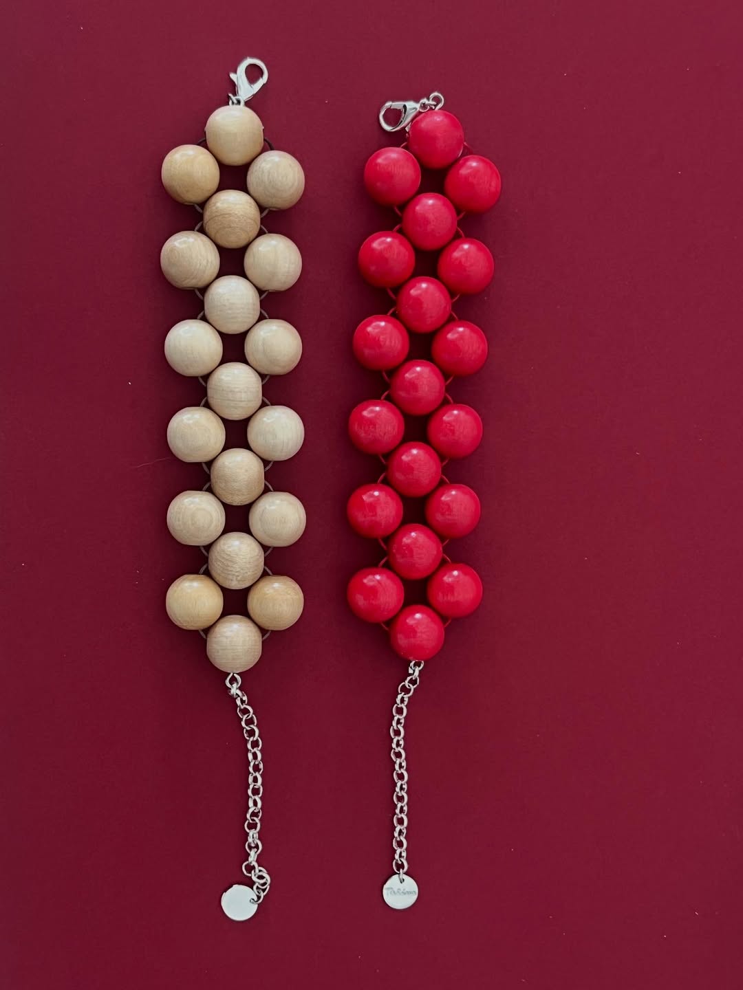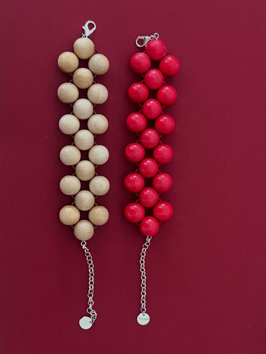 나무 구슬로 이루어져 있으며 스털링 실버925로 마무리되었습니다.