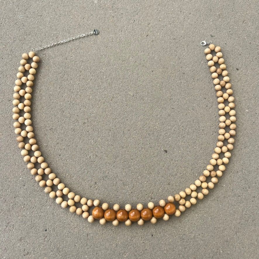 나무 구슬로 이루어져 있으며 스털링 실버925로 마무리되었습니다.