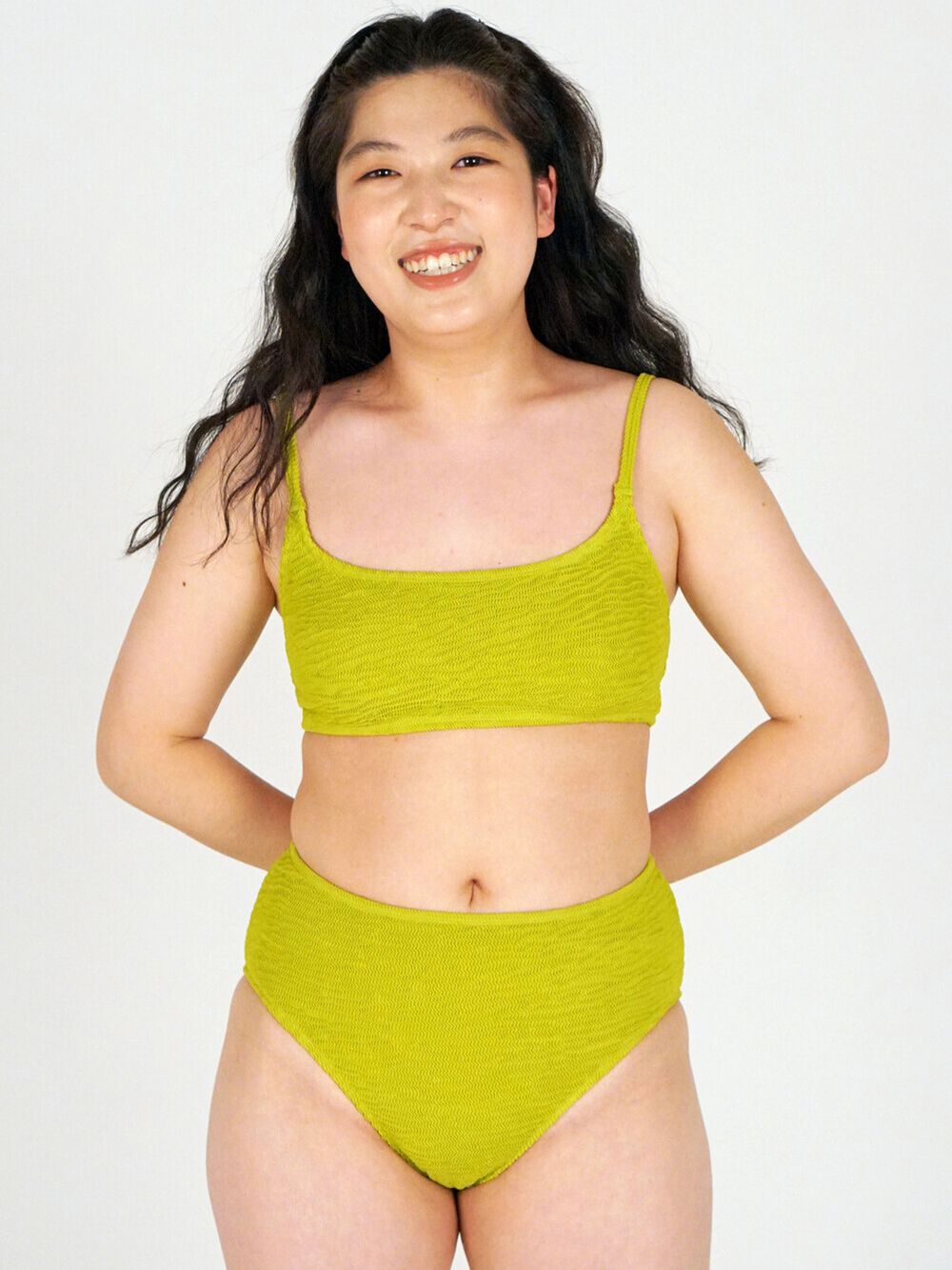 부담스럽지 않은 자연스러운 곡선과 러브핸들을 덮어주는 기장감으로 편안함과 자신감을 느끼실 수 있습니다.