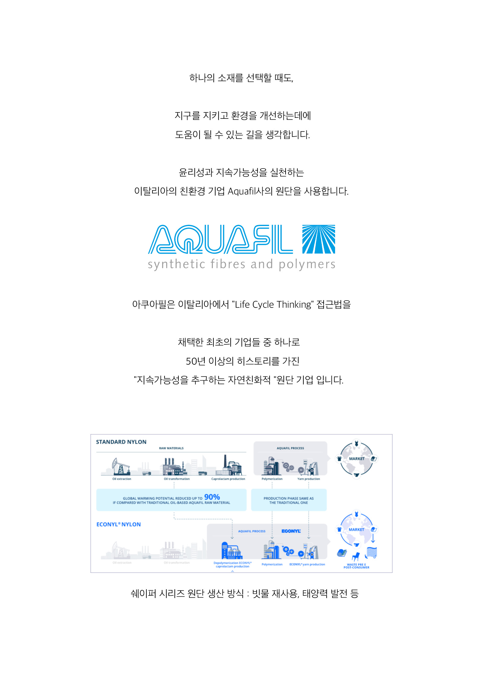 얇고 신축 좋은 기능성 쿨링 안감을 사용하였으며, 윤리성과 지속가능성을 실천하는 이탈리아의 Aquafil에서 개발된 겉감을 사용하였습니다.