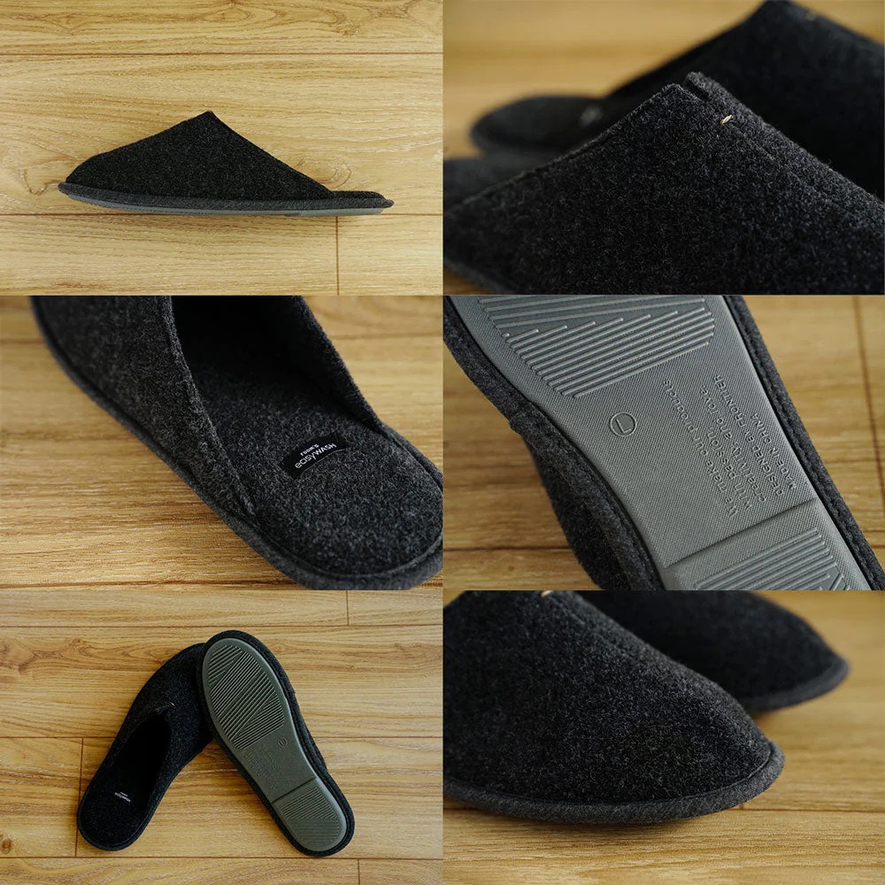 재질에 인하여 오염에 대한 걱정이 될 수 있지만 시중의 룸 슈즈들과 달리 아웃솔 부분이 물이 물들지 않는 소재로 이루어져 부엌이나 화장실에 거리낌 없이 드나들 수 있어요.