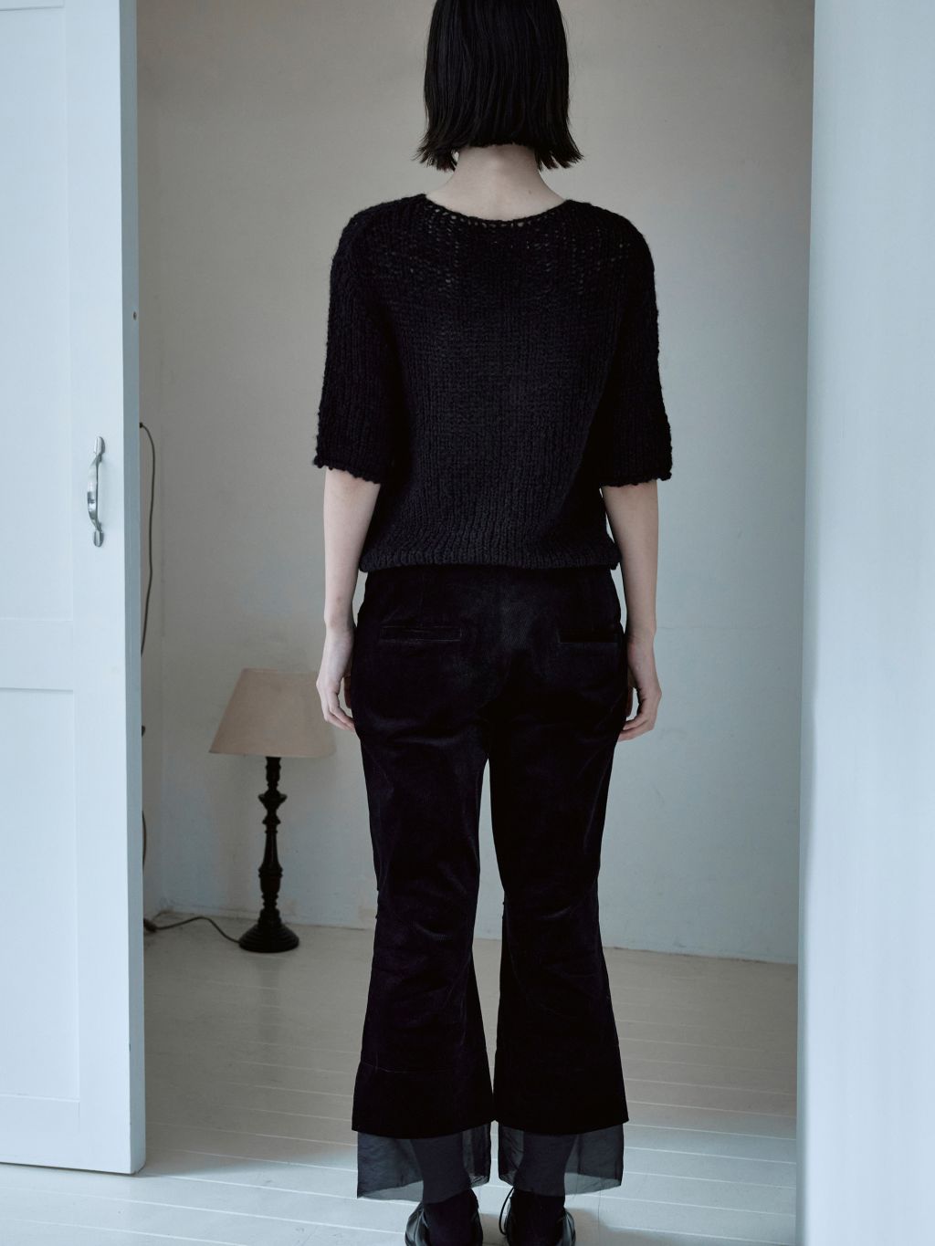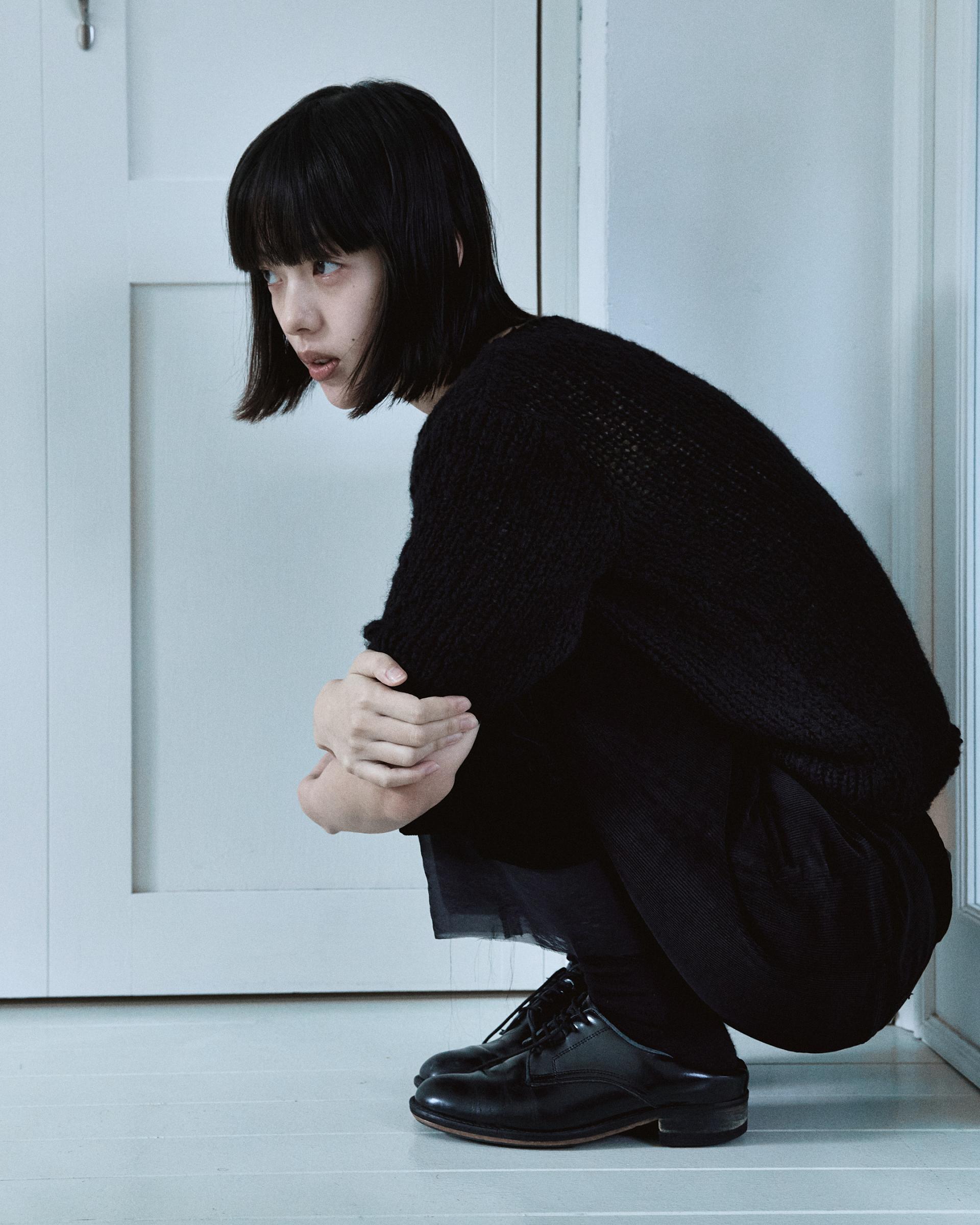 별도의 립 마감 없이 자연스러운 밑단, 소매단, 네크라인 마감이 특징이며 굵은 짜임으로 포근한 느낌을 줍니다.
