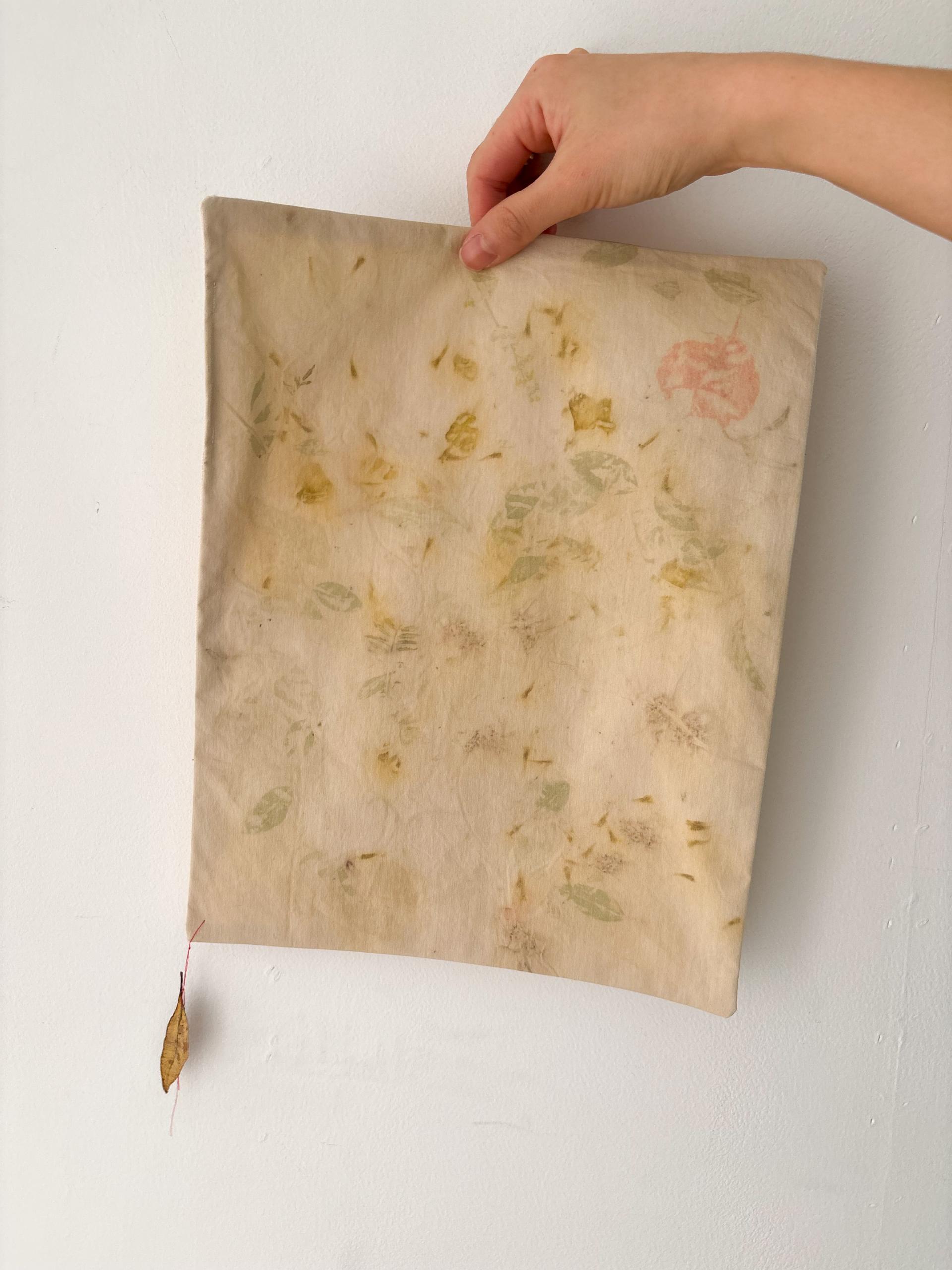 제주 숲길을 산책하며 채집한 풀꽃들로 천연 염색된 티 매트입니다.