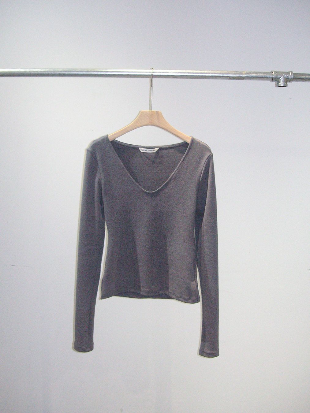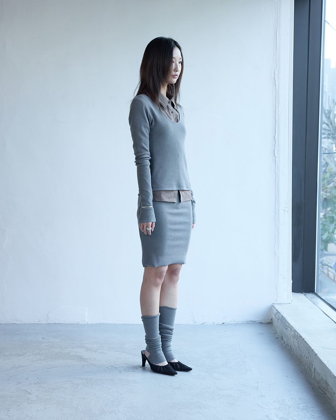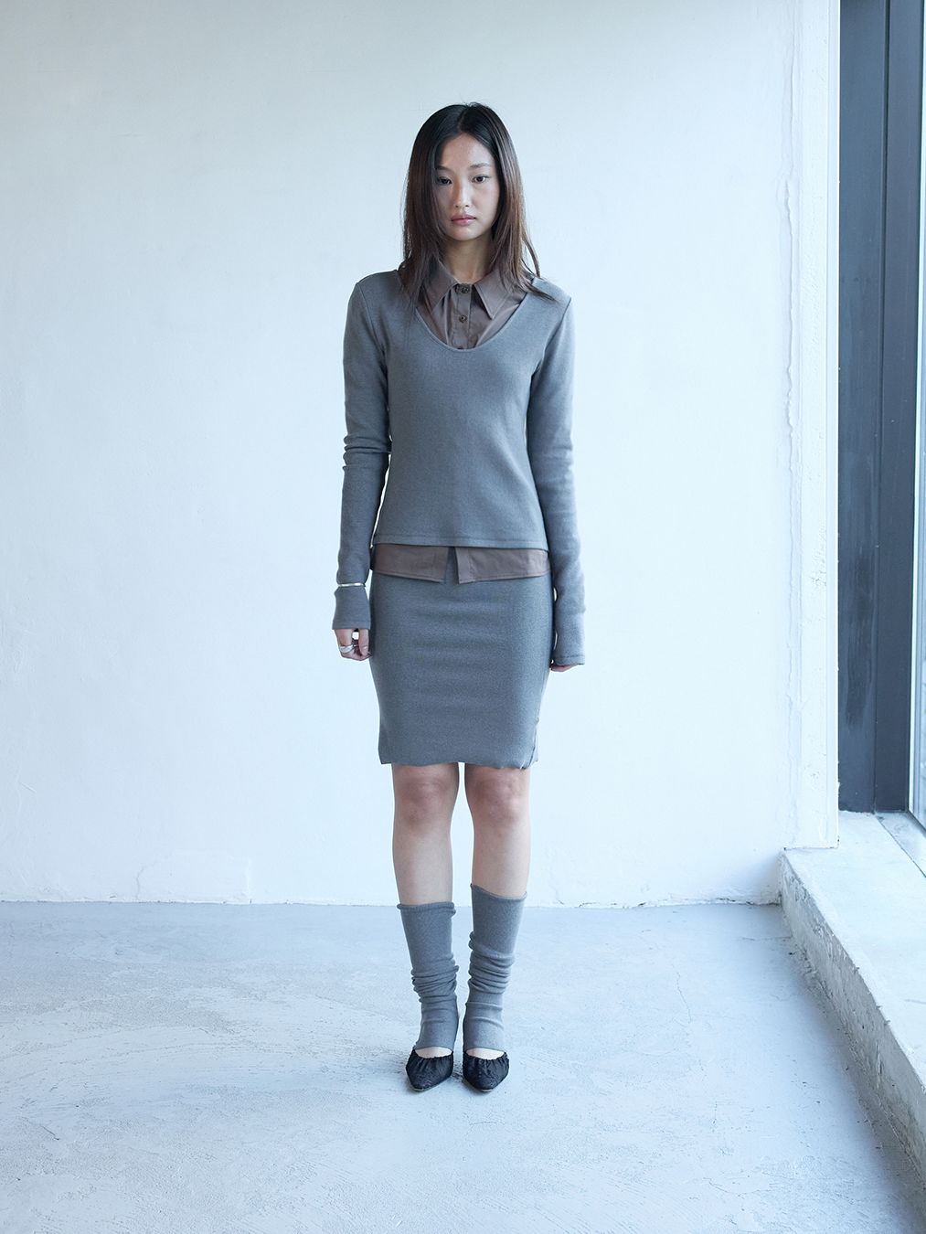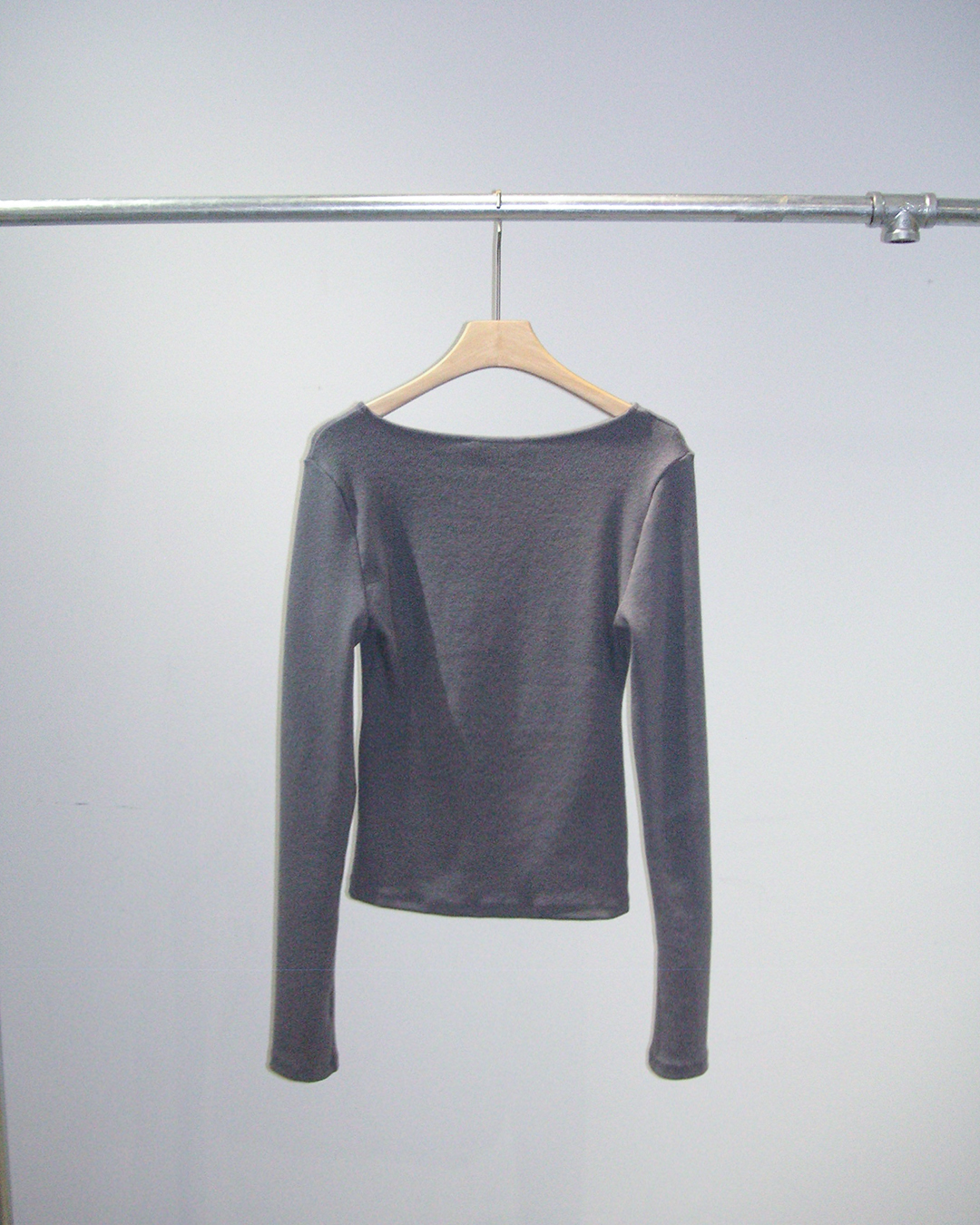 슬림한 실루엣의 긴팔 립 니트 탑
