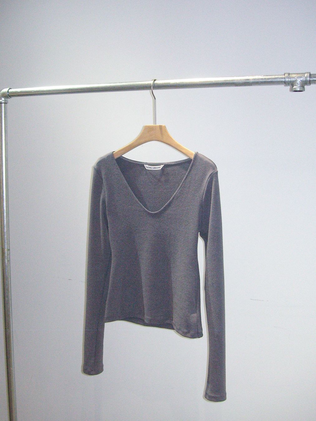 딥한 V와 U 사이 모양의 넥 라인