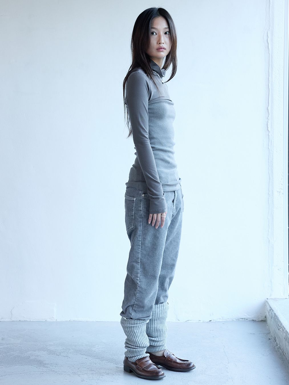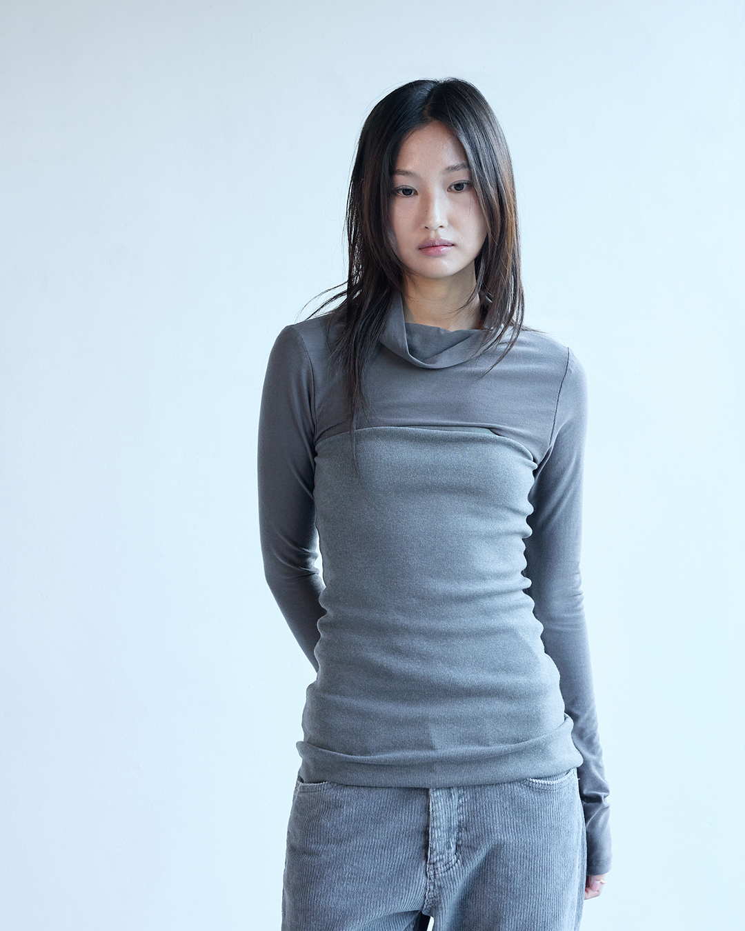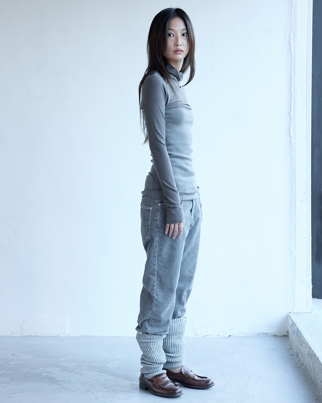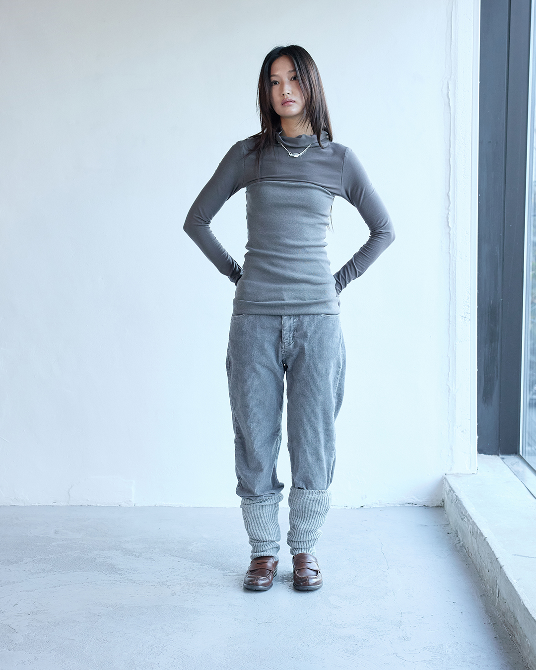 긴 편의 기장감으로 자연스럽게 주름을 잡아 연출