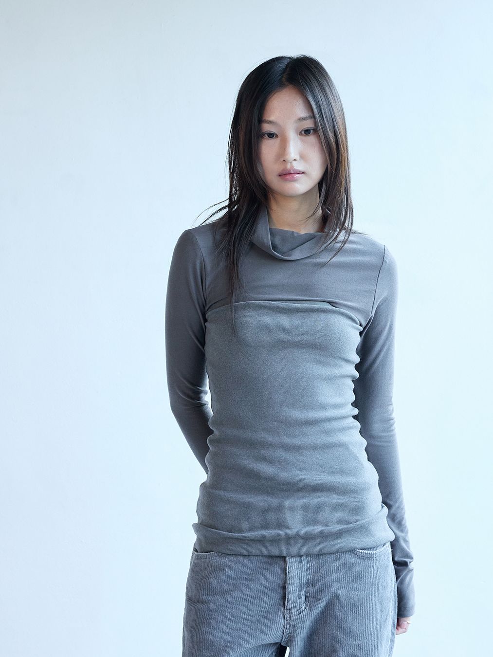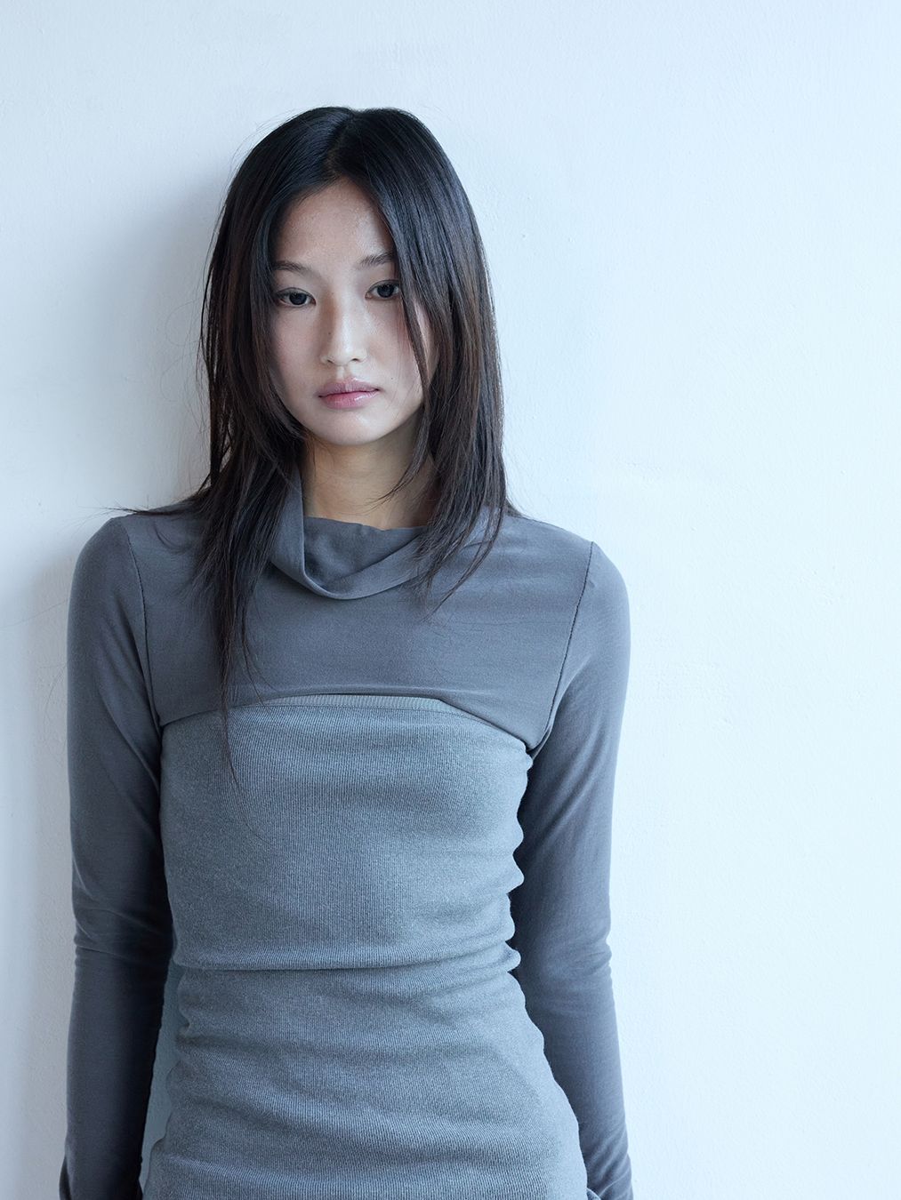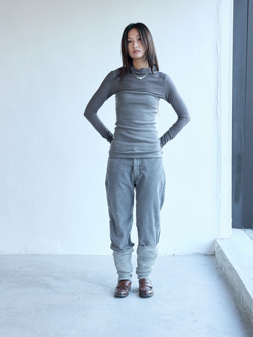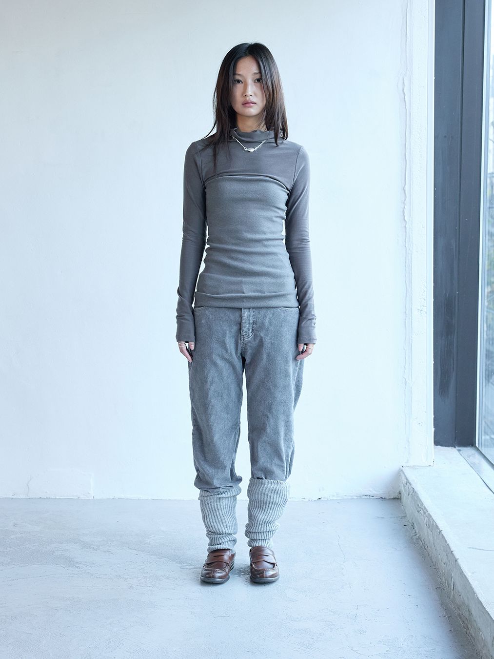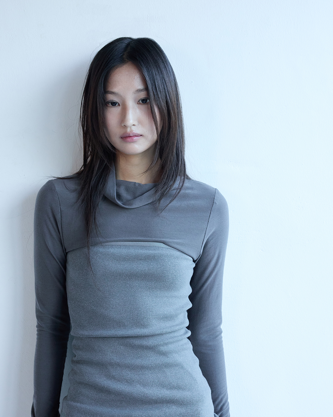 긴 편의 기장감으로 자연스럽게 주름을 잡아 연출