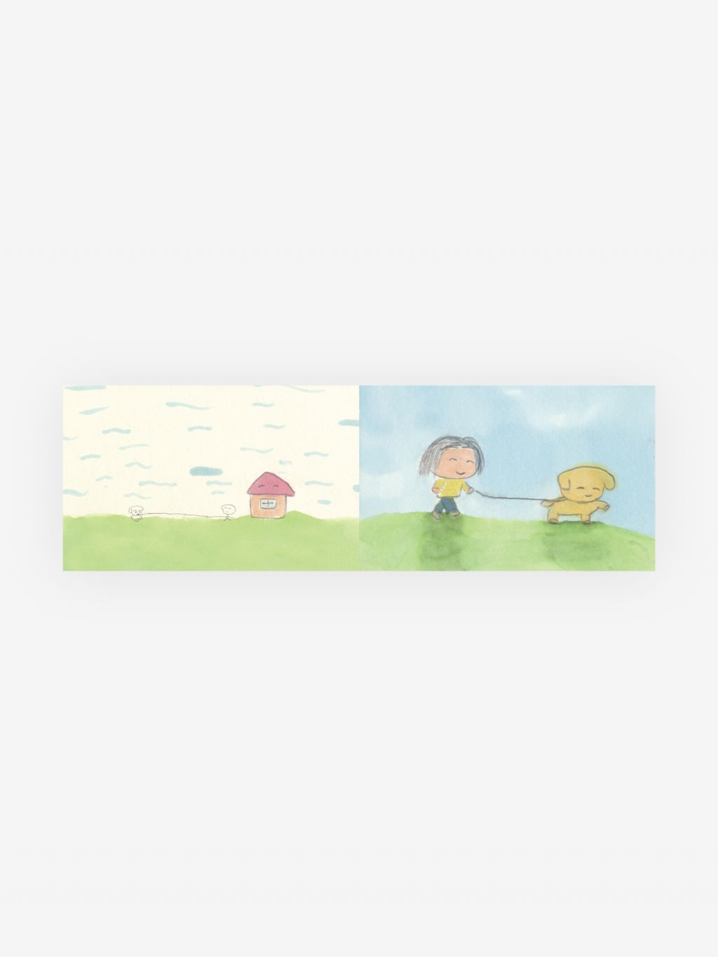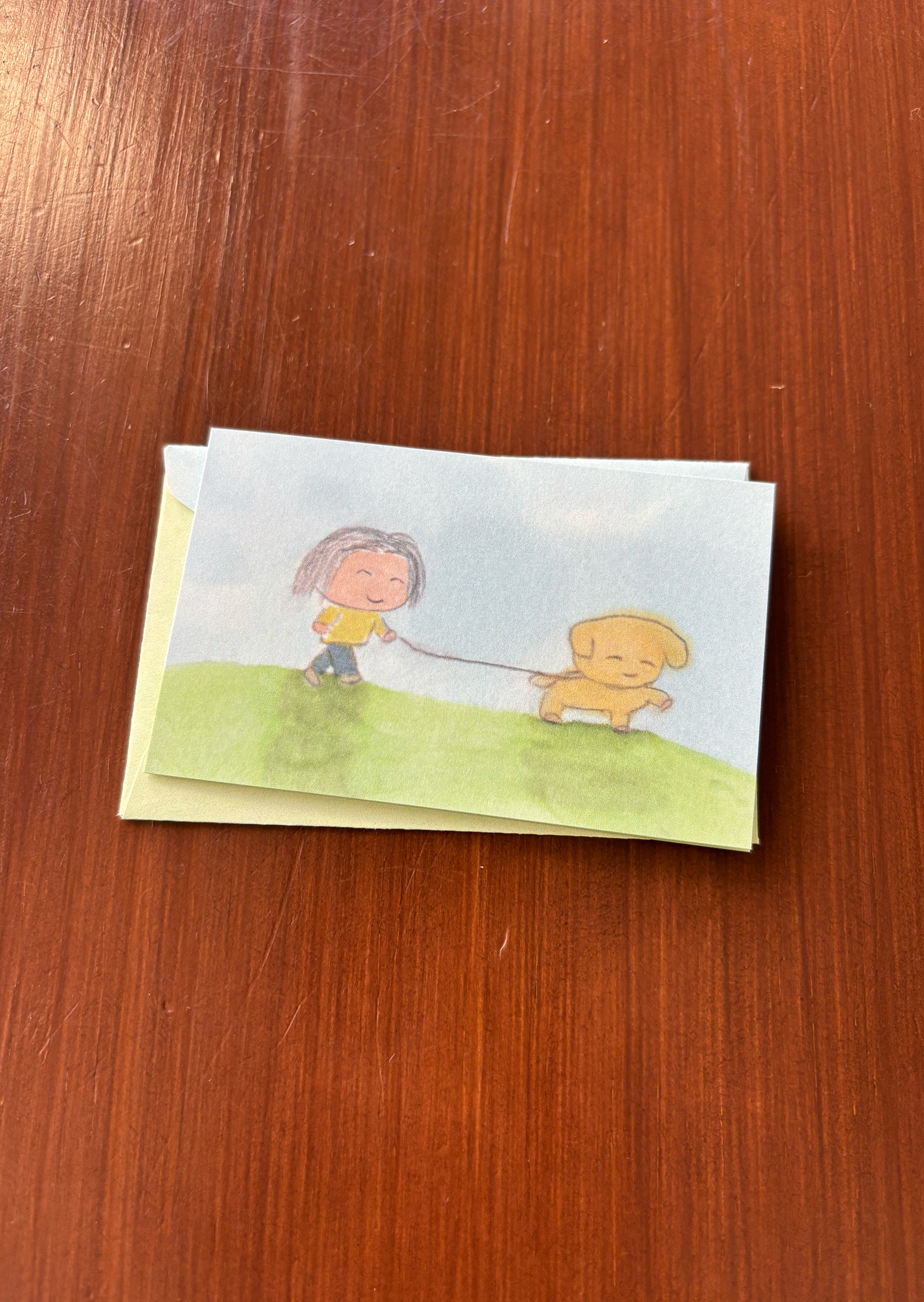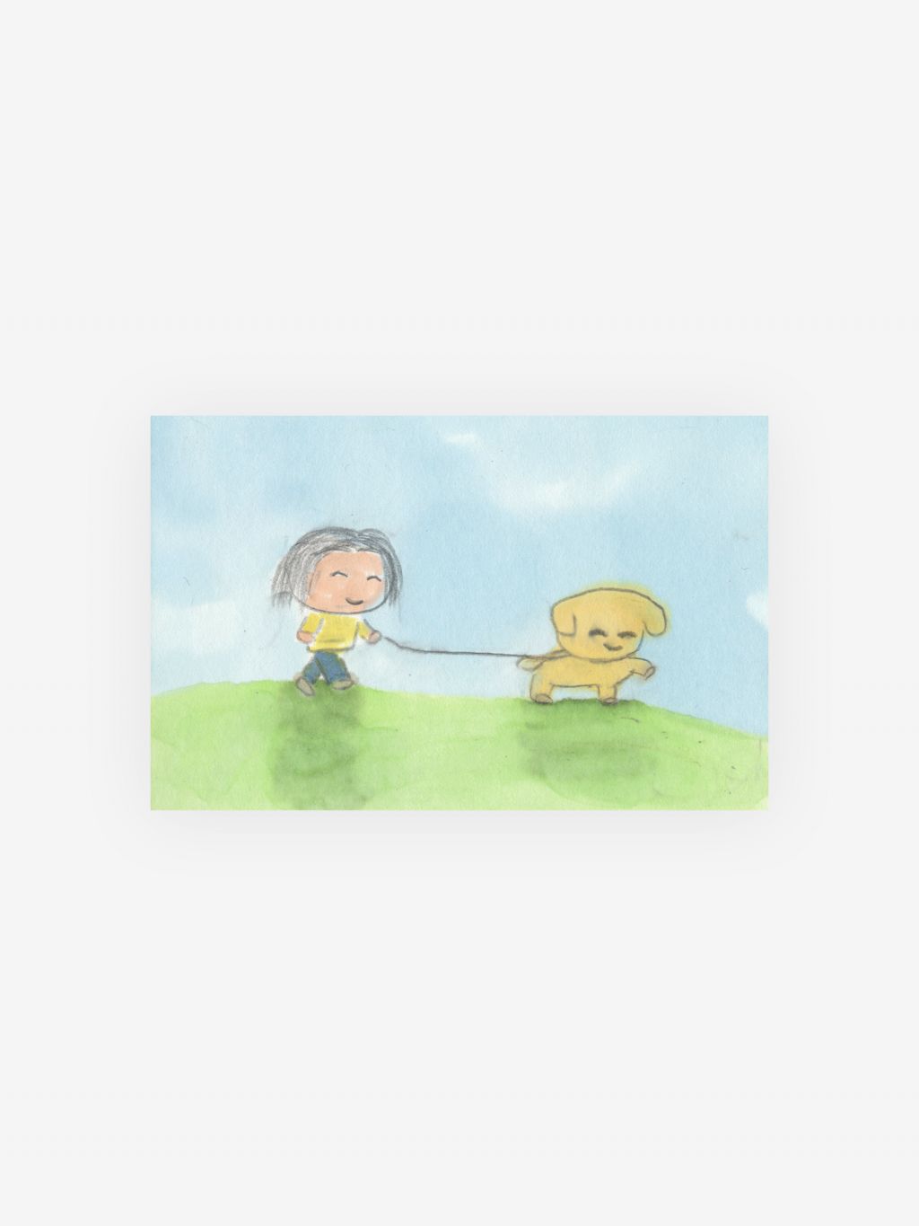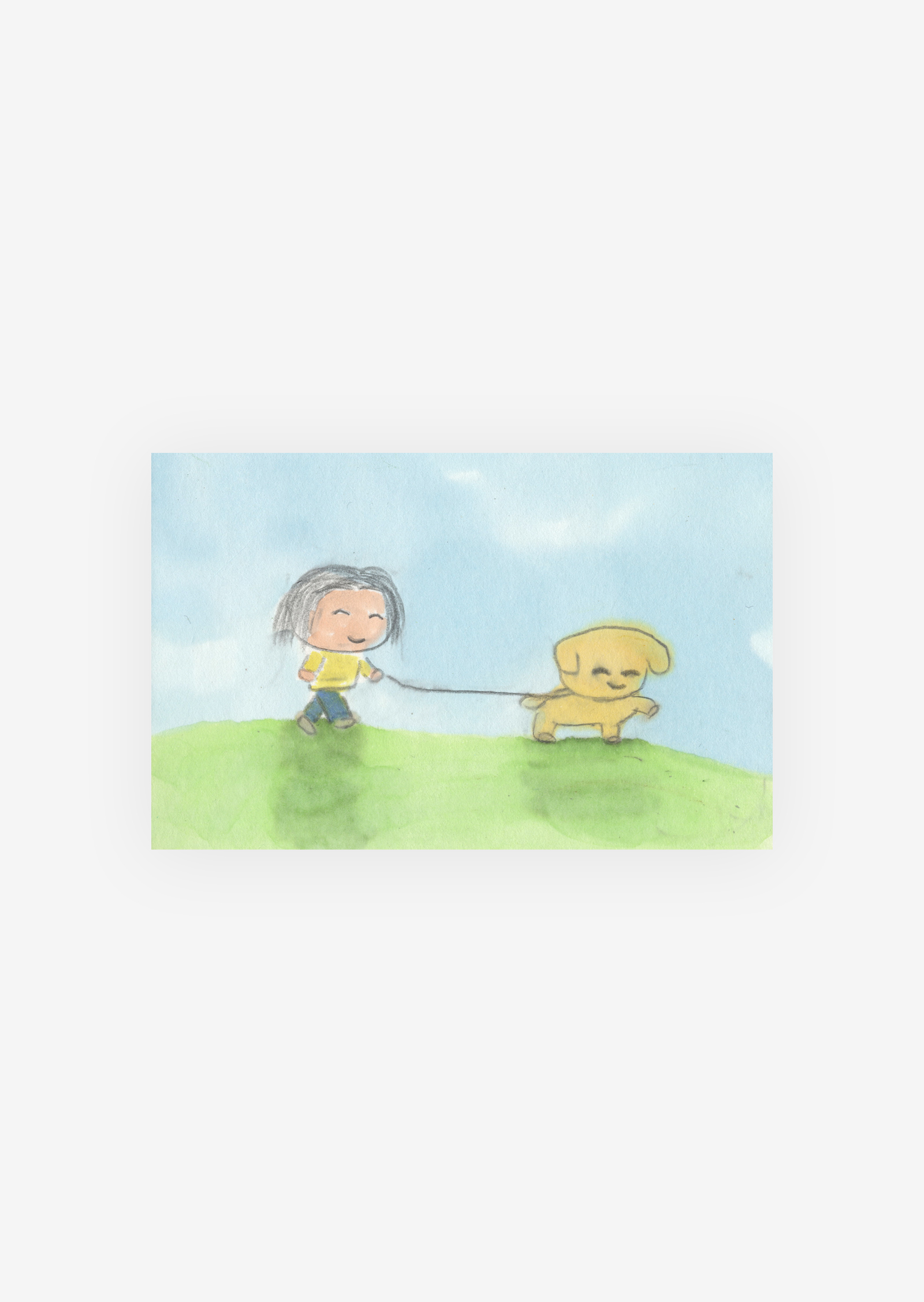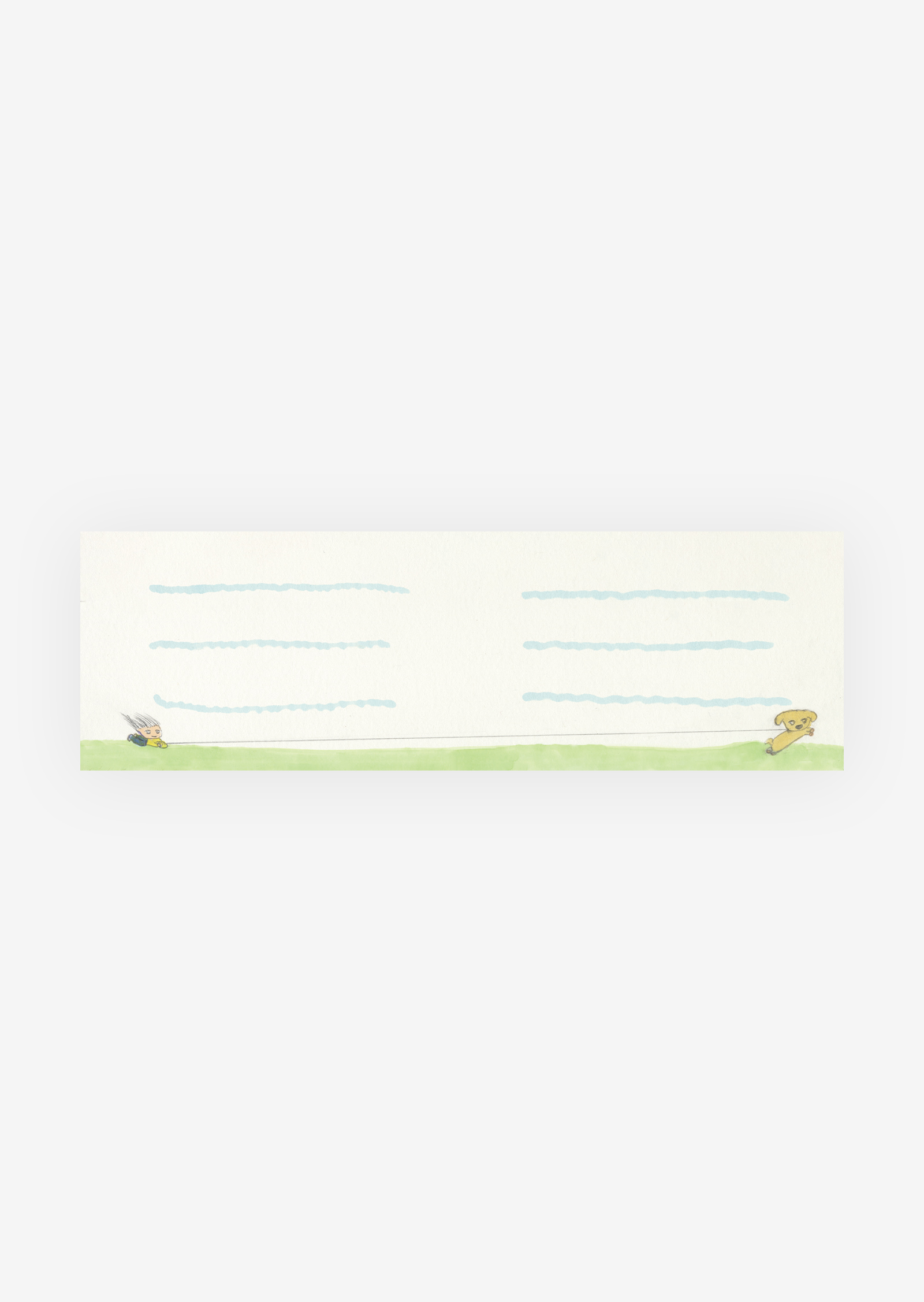 반려견과 산책하는 장면이 담긴 편지지입니다. 항상 강아지에게 끌려 산책을 나가는 친구에게 편지를 쓸 때 사용해 보세요.