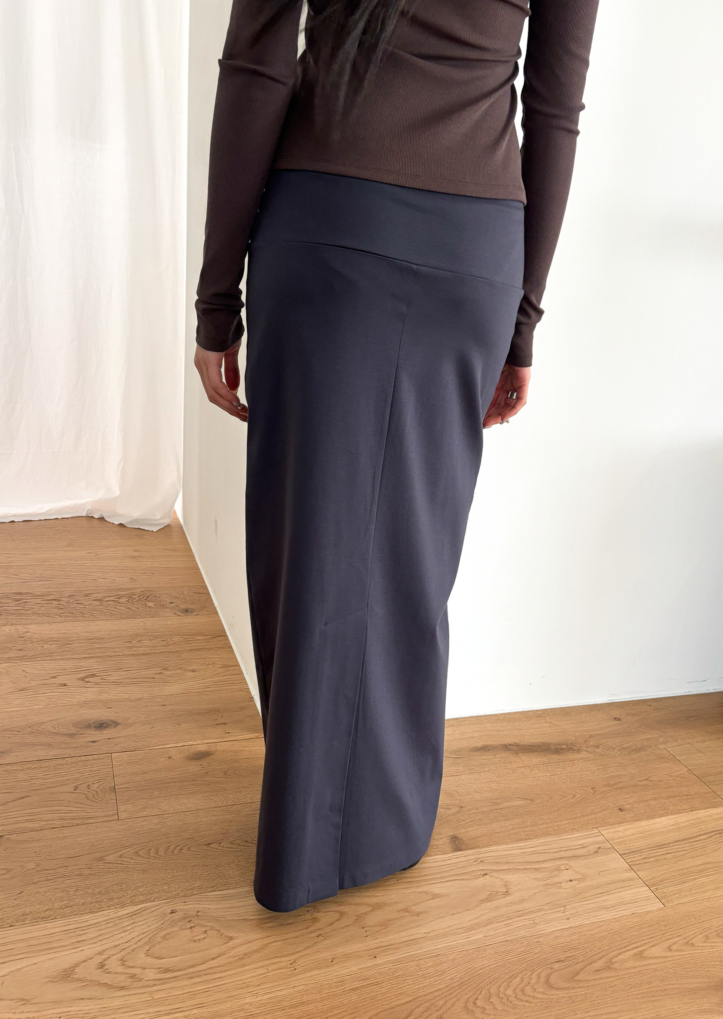 부드러운 텍스쳐와 넓은 밴딩으로 편안한 착용감을 주고, 종아리 실루엣을 조심스레 드러내는 깊이감의 슬릿은 자연스러운 움직임을 돕습니다.