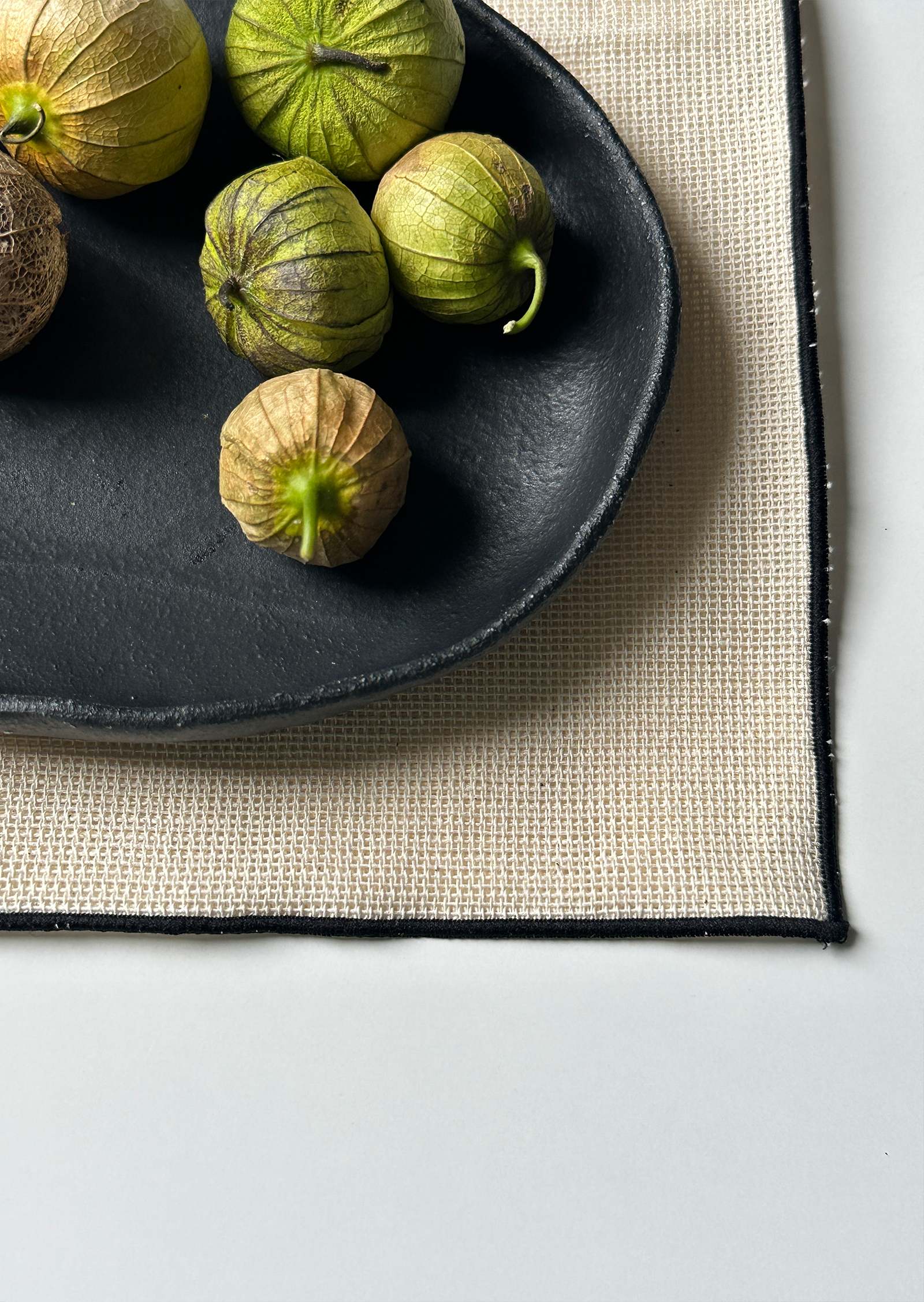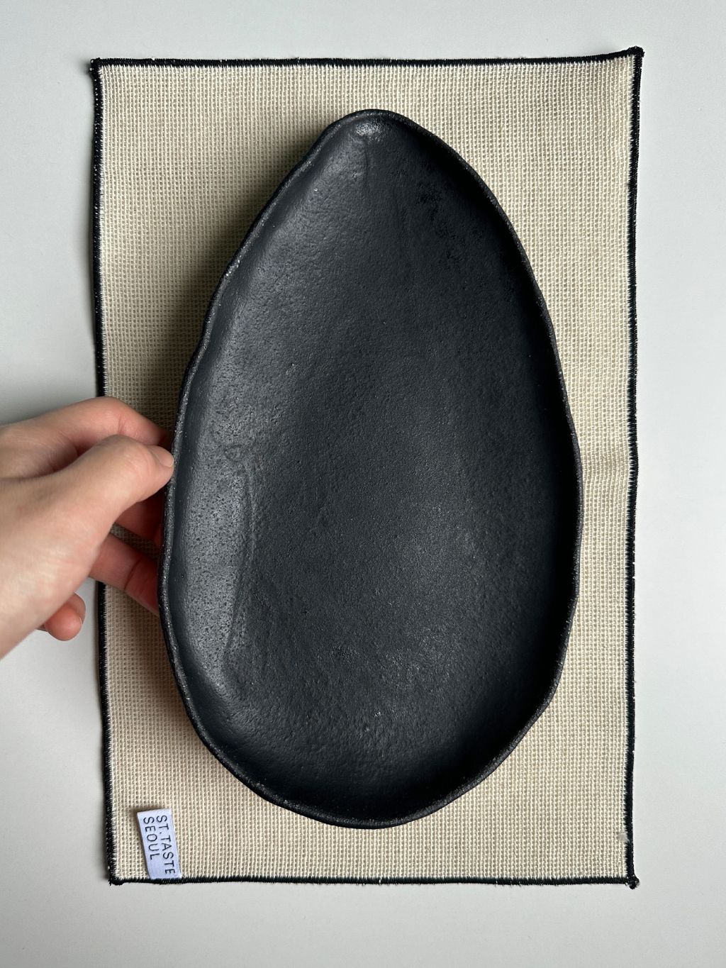 표면에서 느껴지는 은은한 질감이 매력적이며, 일본 흑토와 검은색 유약으로 제작된 이 제품은 접시 위의 음식들을 더욱 돋보이게 만들어 줍니다.