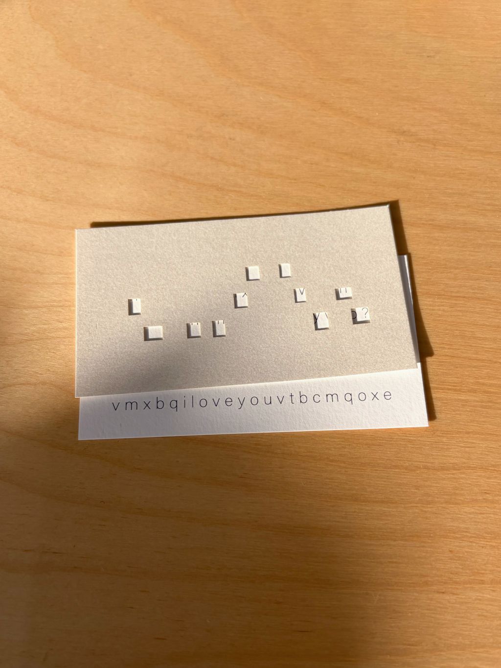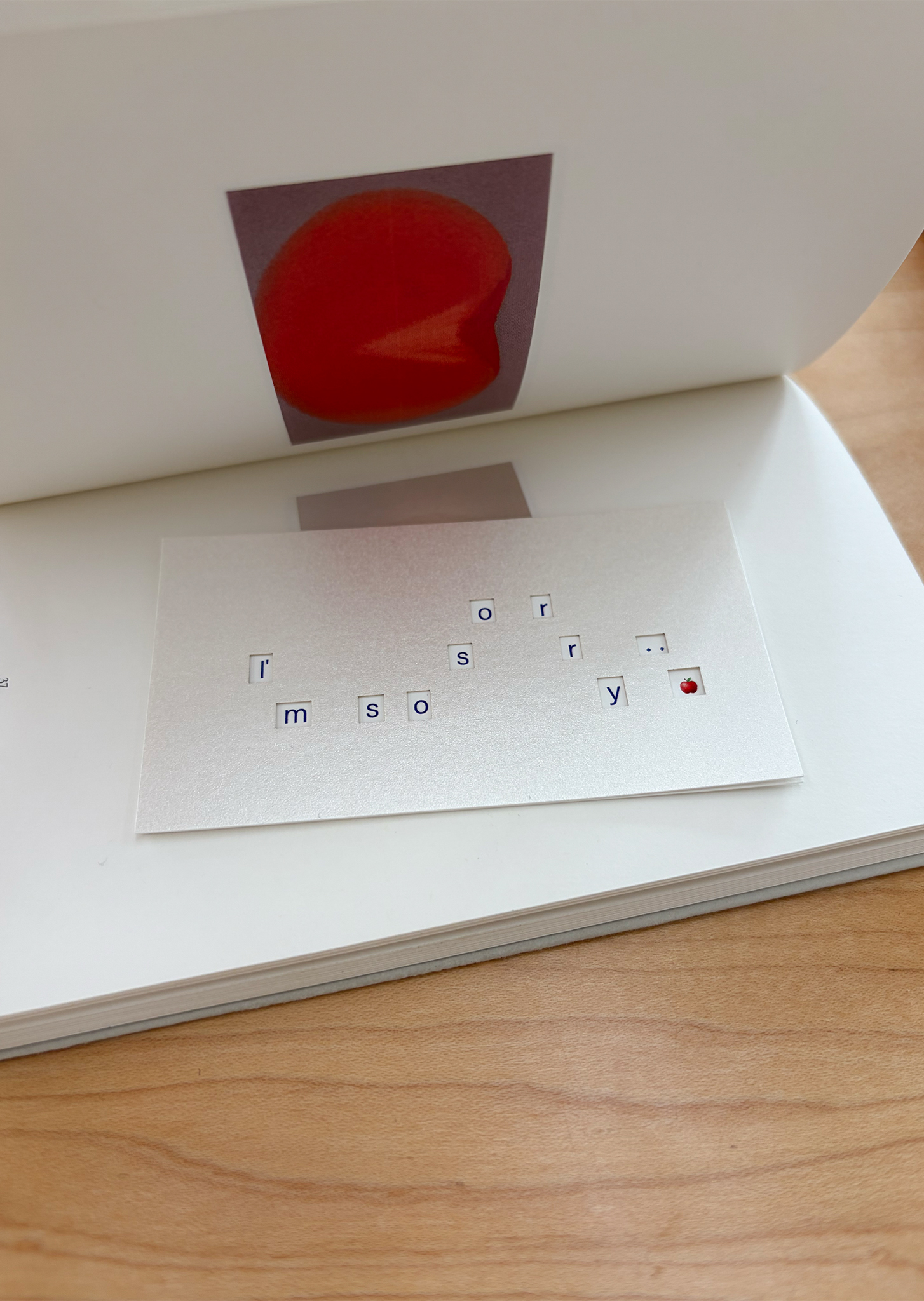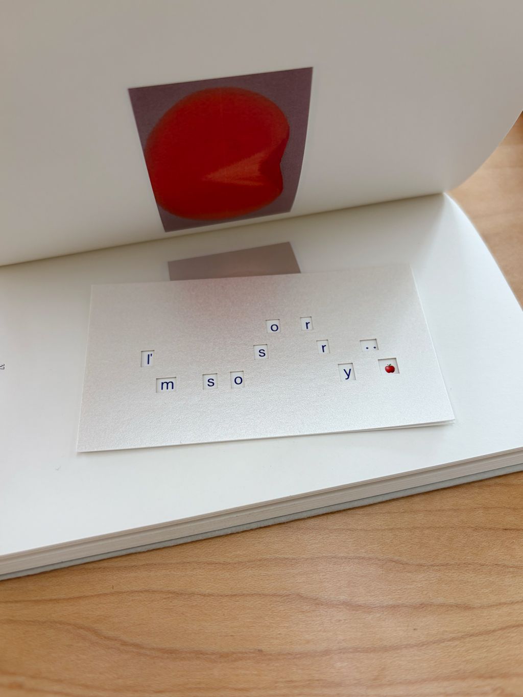 암호처럼 쓰인 알파벳 카드 위에 카드를 겹치면 I'm so sorry 글자가 나타납니다.