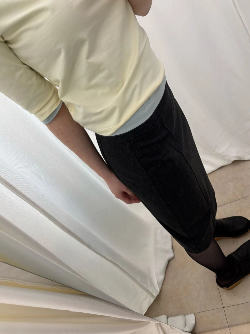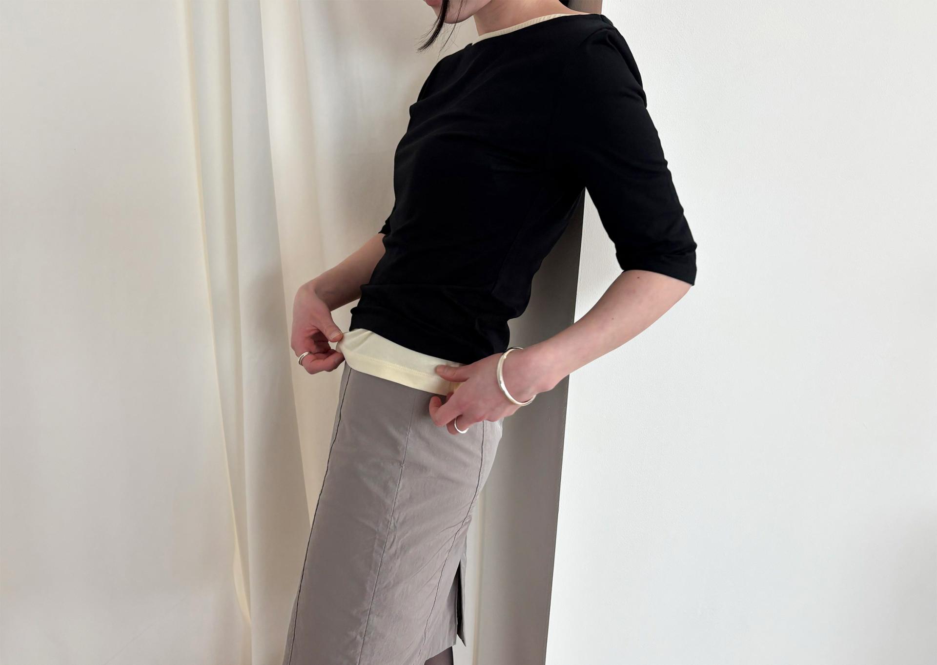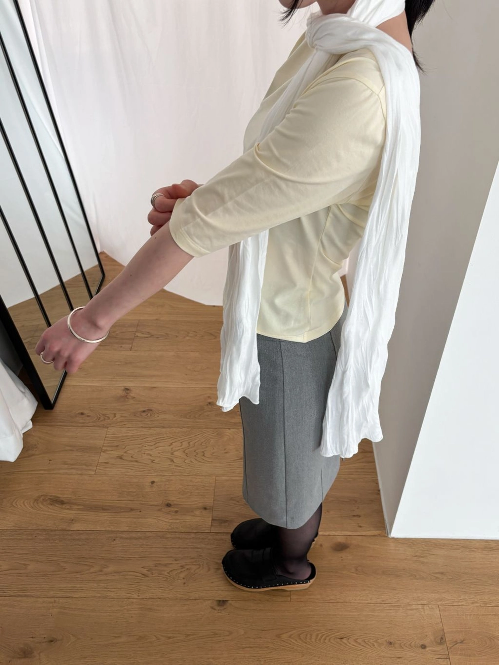 바디에 과하게 붙지 않아 보디 라인을 자연스레 따르는 듯해 부담 없이 착용됩니다.