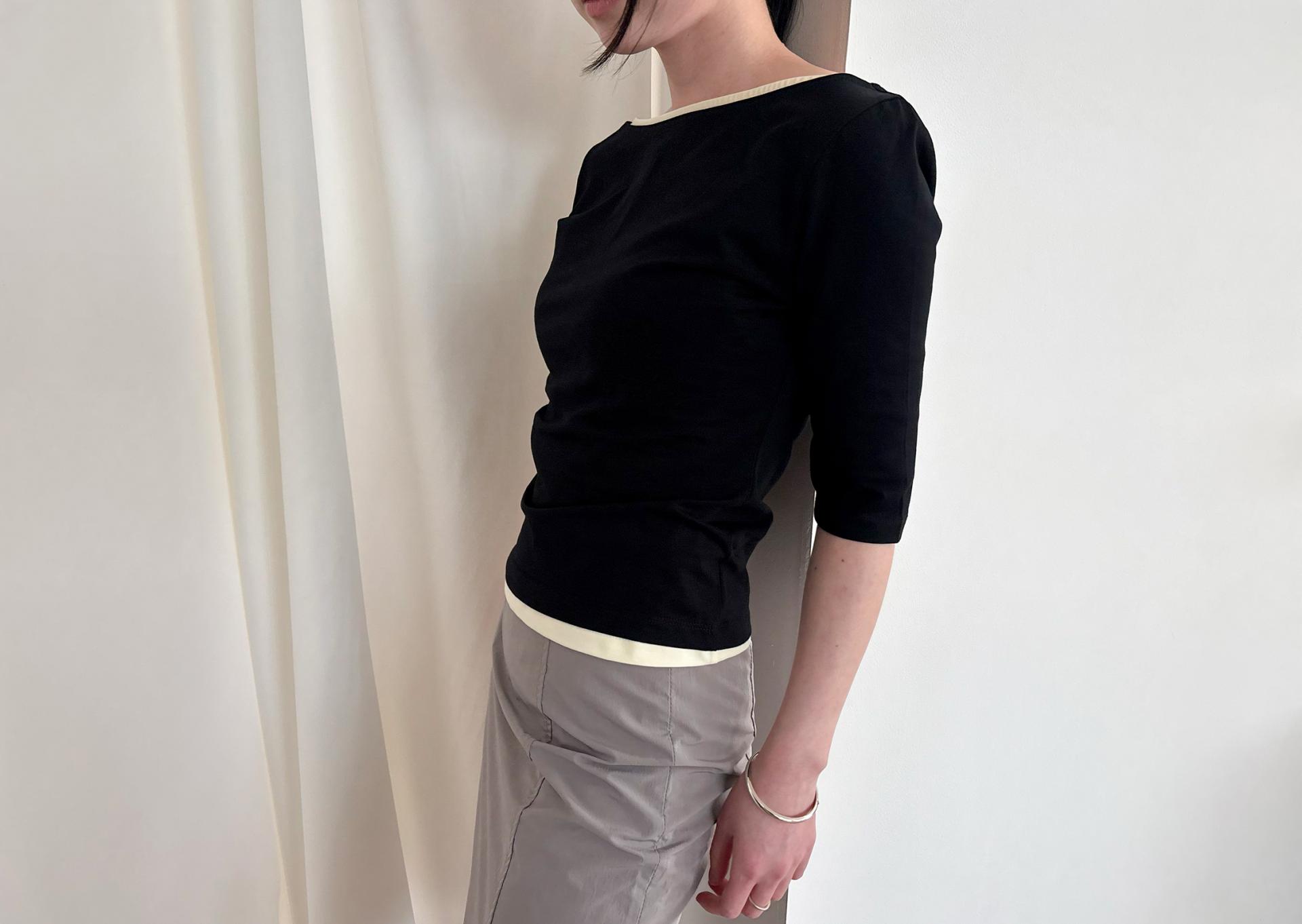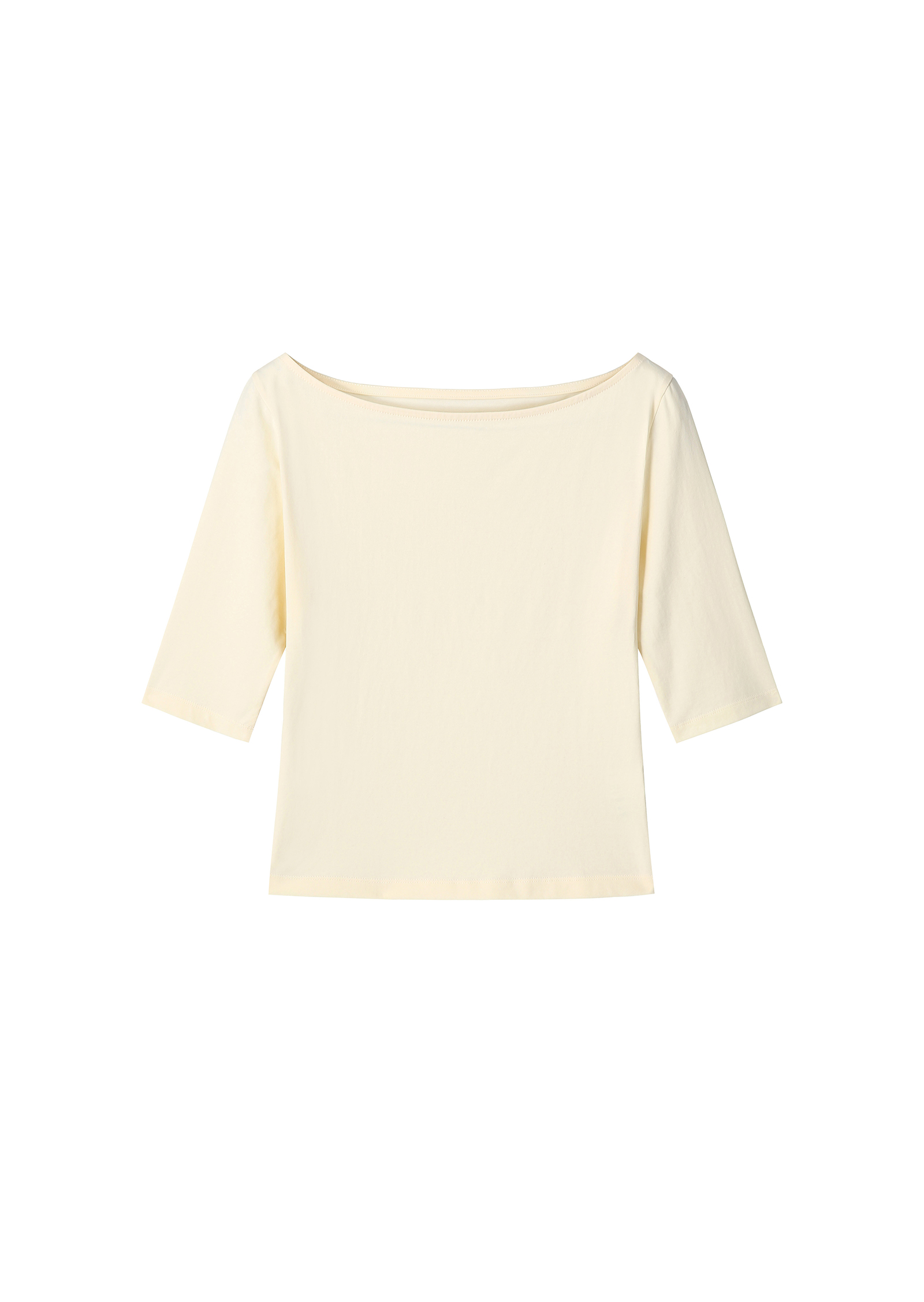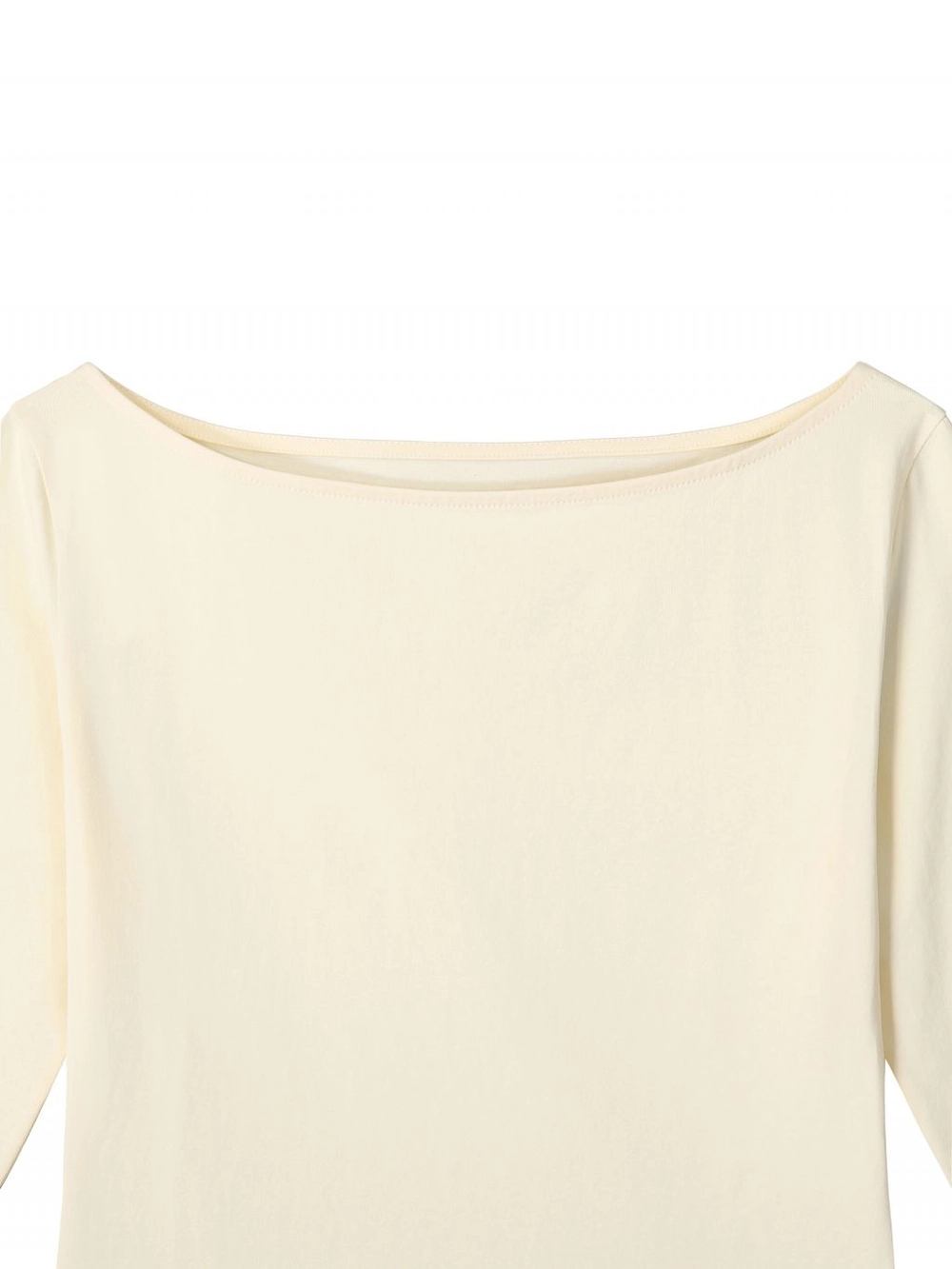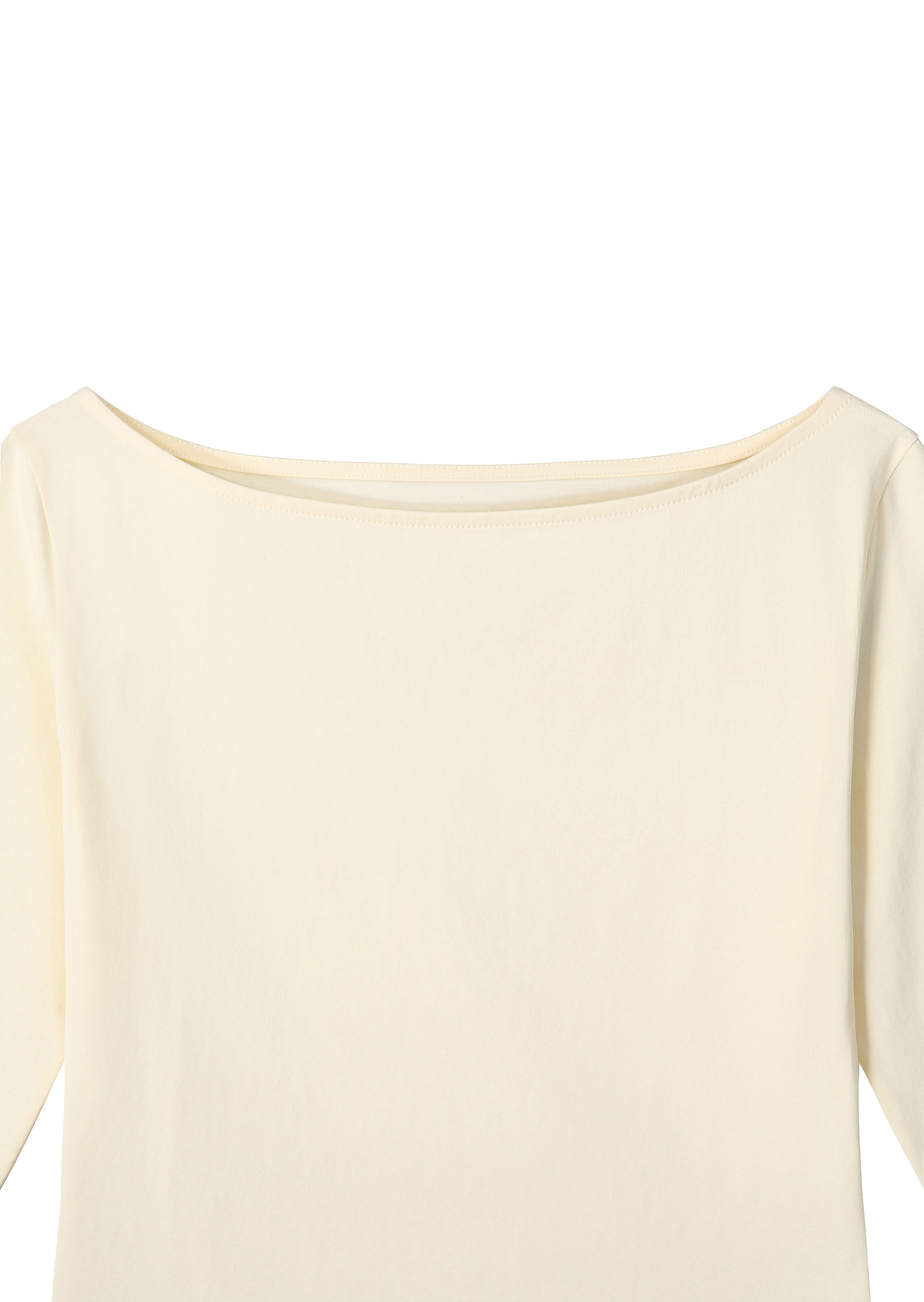 군더더기 없는 보트넥 라인은 자연스레 쇄골을 노출해 내추럴한 포인트가 됩니다.