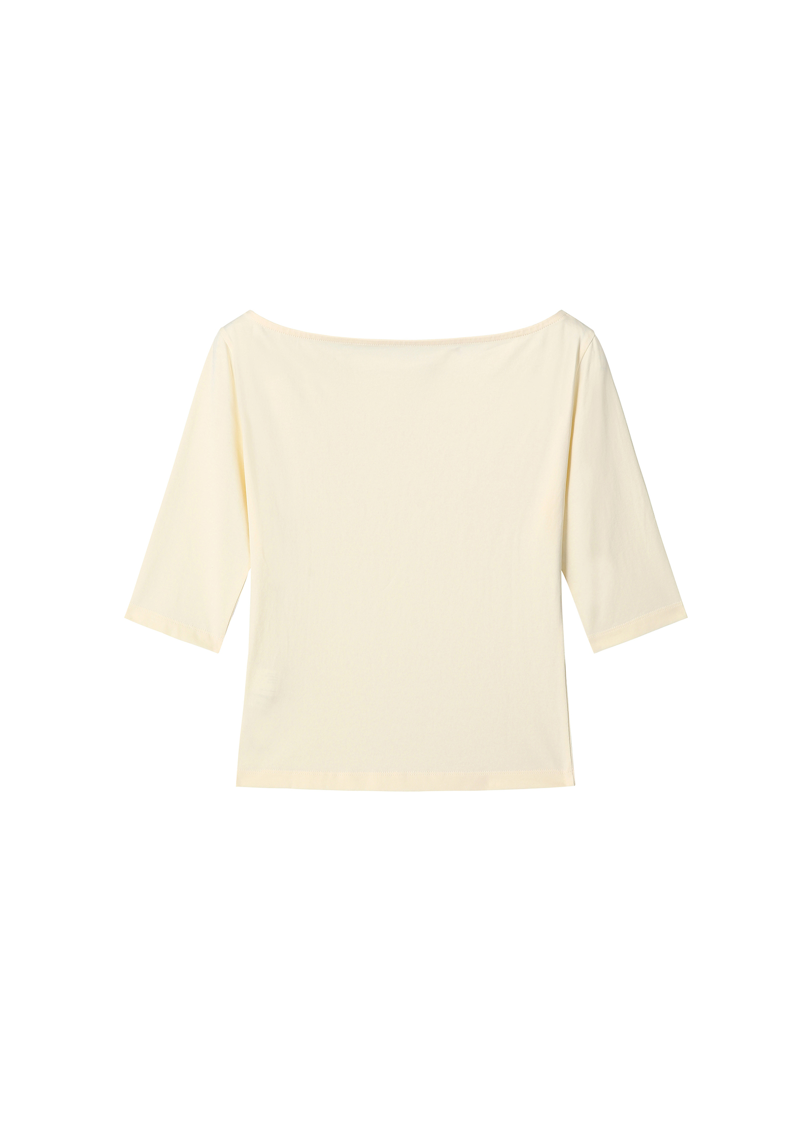 촉촉한 텍스처와 물을 한 방울 섞은 듯한 맑은 컬러감의 보트넥 탑.